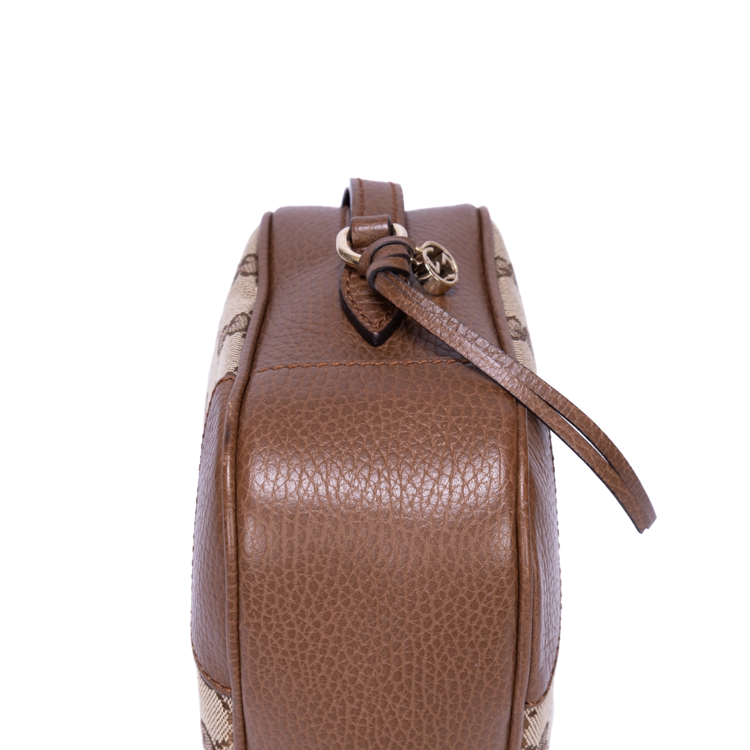 A vintage Gucci brown/beige calf leather GG Canvas Bree Camera bag with a certificate of authenticity, Approximately 16cm height, 21cm width.