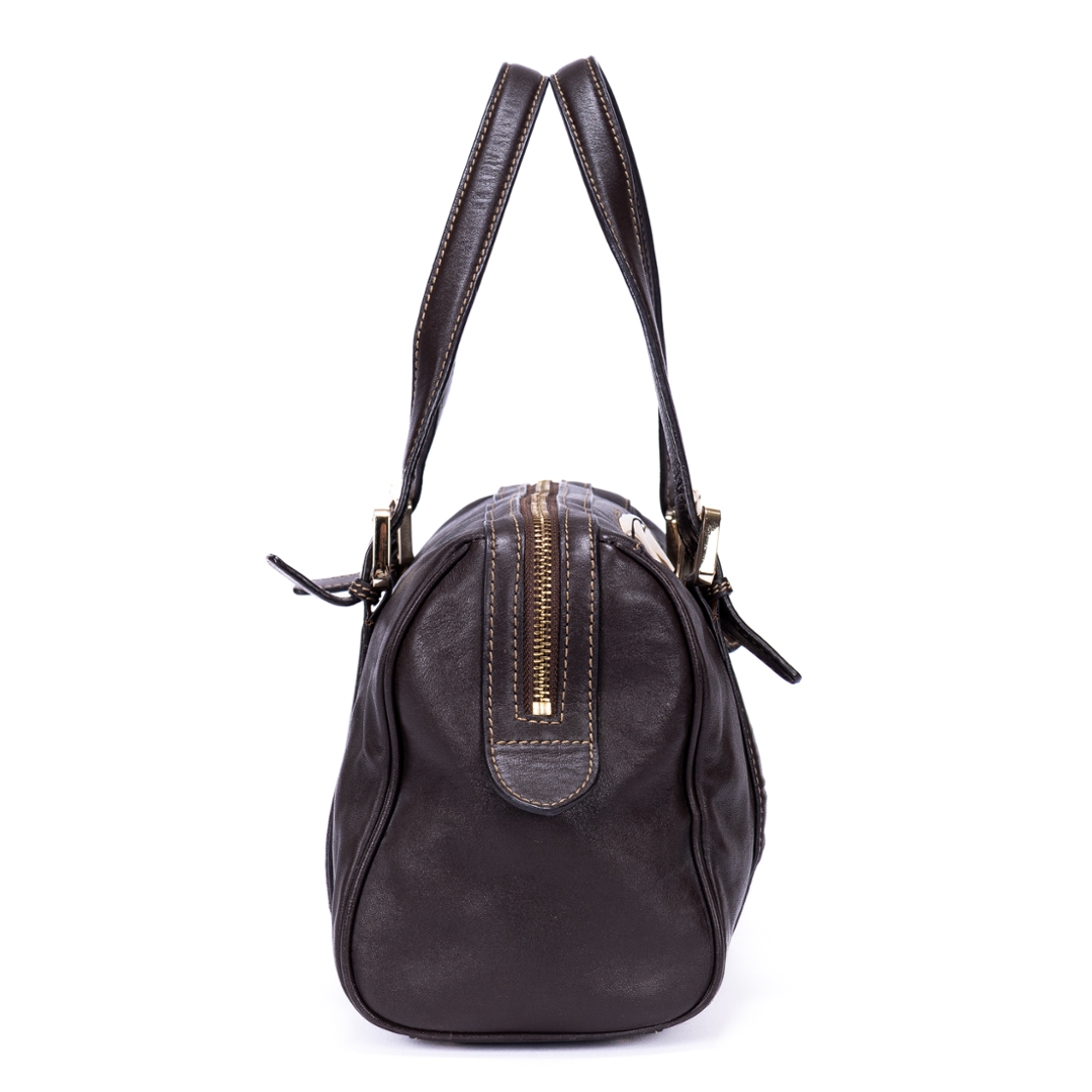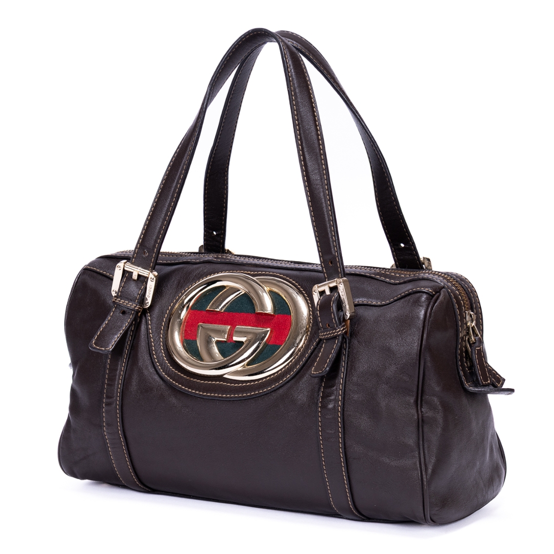 A vintage Gucci dark brown calf leather GG Interlocking Tote bag with a certificate of authenticity, Approximately 18cm height, 32cm width.