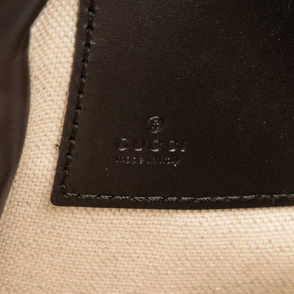 A vintage Gucci black coated canvas GG Supreme Tiger Print bag with a certificate of authenticity, Approximately 22cm height, 28cm width.
