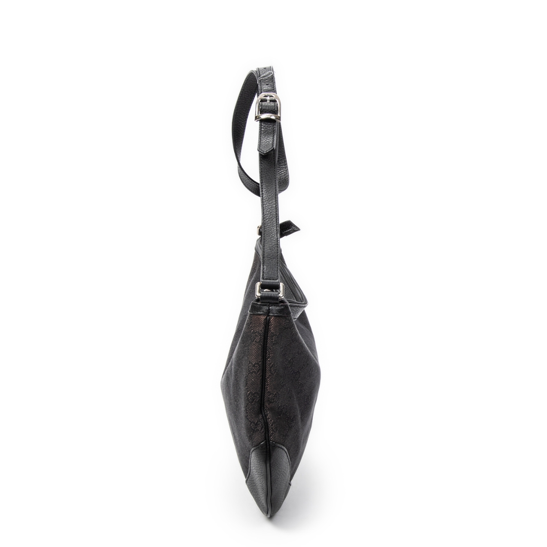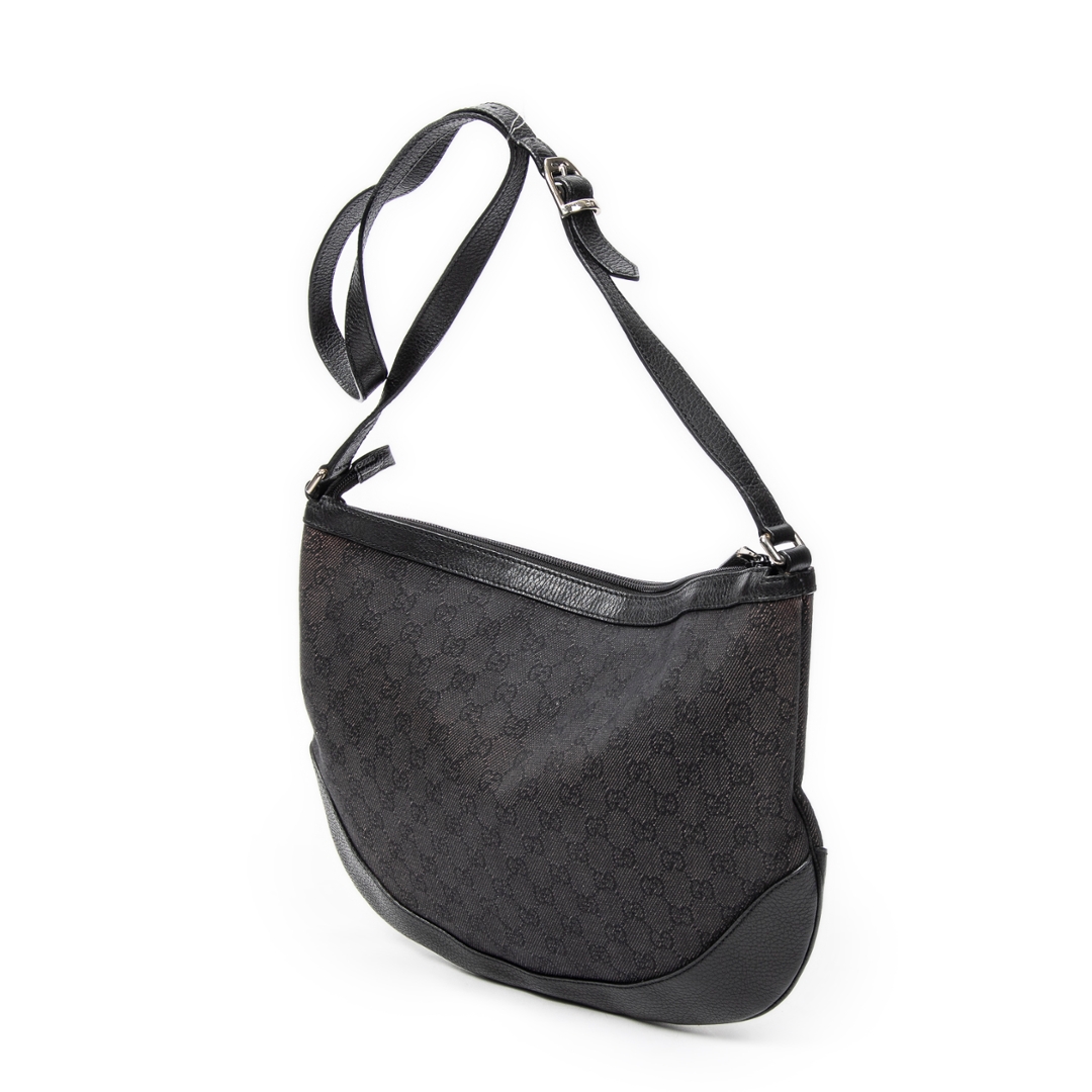 A vintage Gucci black canvas Half Moon Messenger bag with a certificate of authenticity, Approximately 30m height, 40cm width.