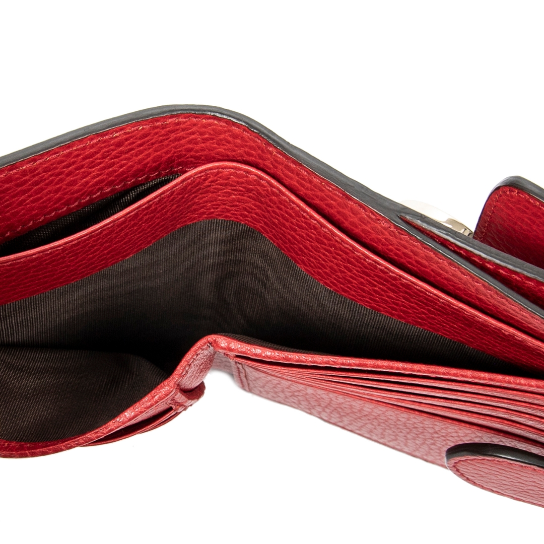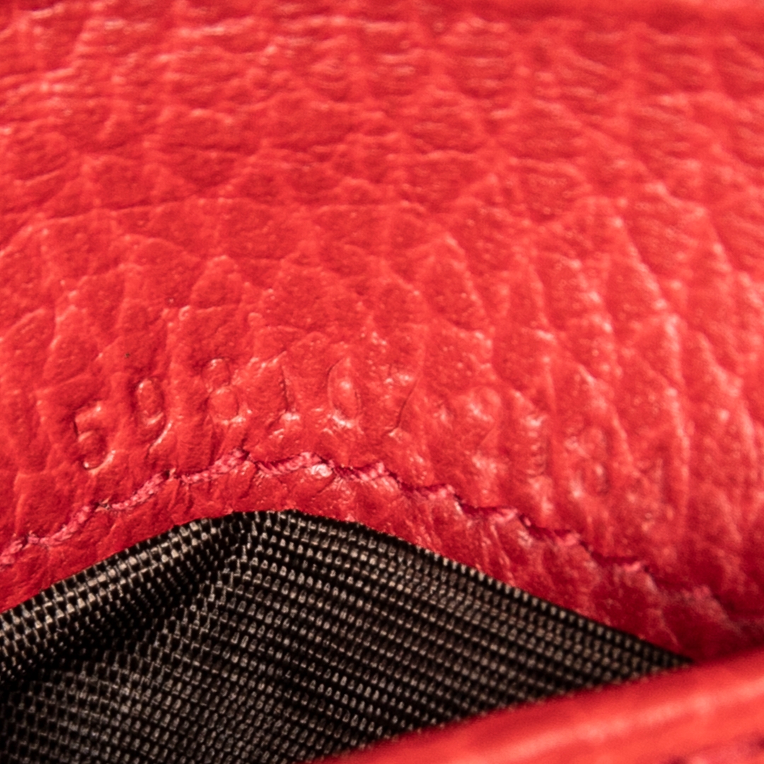 A vintage Gucci red calf leather Interlocking G Compact Wallet with a certificate of authenticity, Approximately 11cm height, 11cm width.