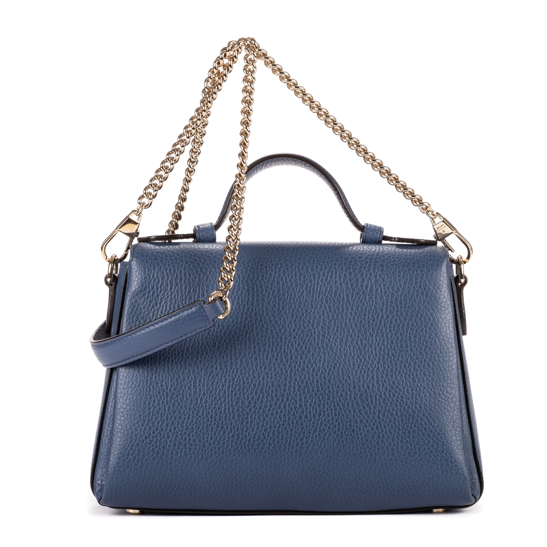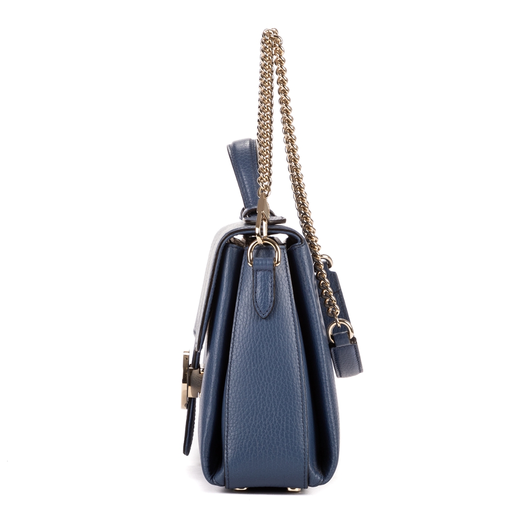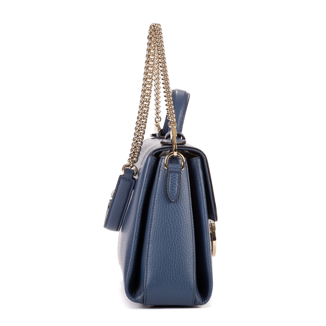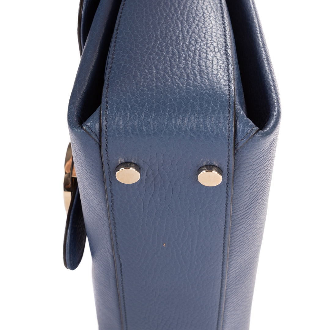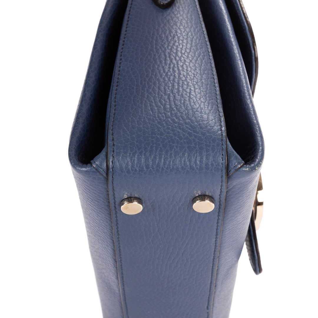 A vintage Gucci blue calf leather Interlocking G Top Handle bag with a certificate of authenticity, Approximately 19cm height, 26cm width.