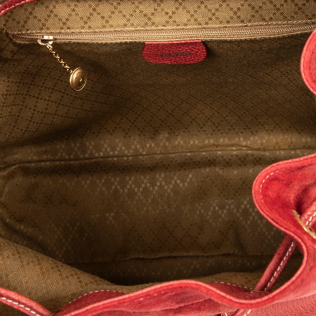 A vintage Gucci red calf leather Large Bamboo Backpack bag with a certificate of authenticity, Approximately 30cm height, 30cm width.