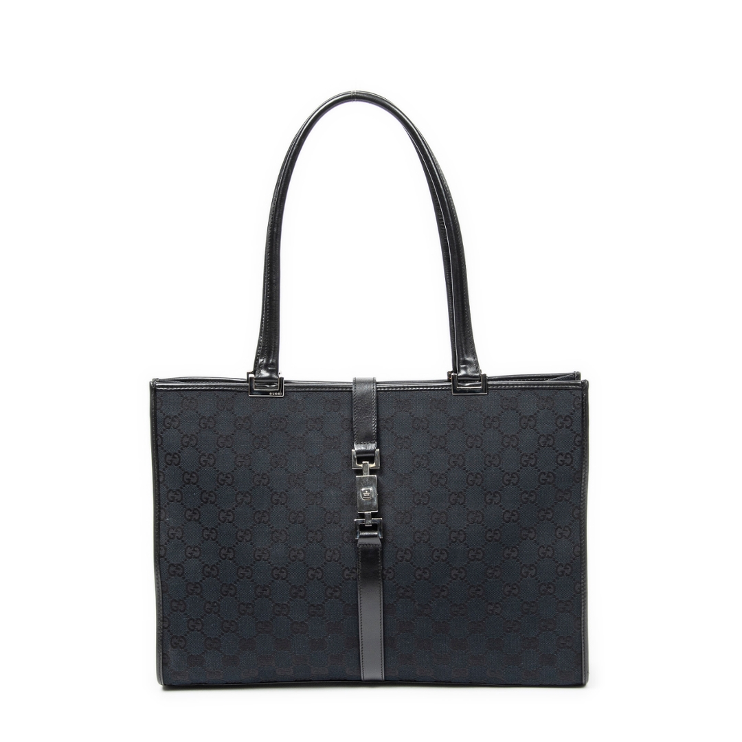 A vintage Gucci black canvas Large Square Tote bag with a certificate of authenticity. Approximately 27cm height, 38cm width.