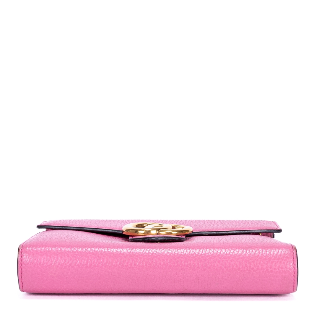 A vintage Gucci pink calf leather Marmont Wallet On Chain bag with a certificate of authenticity. Approximately 15cm height, 20cm width.