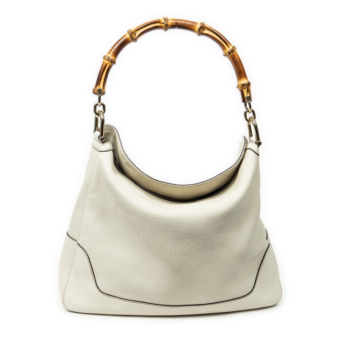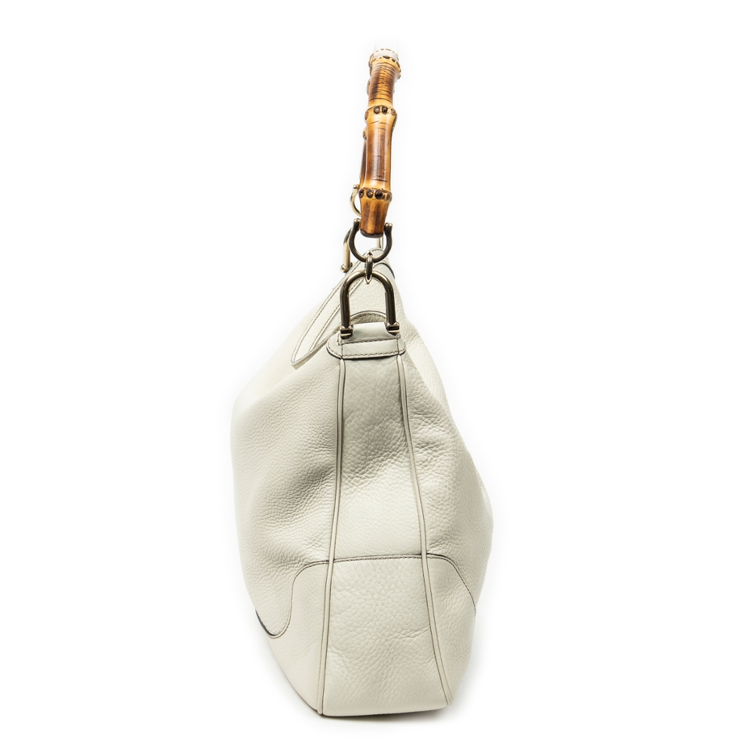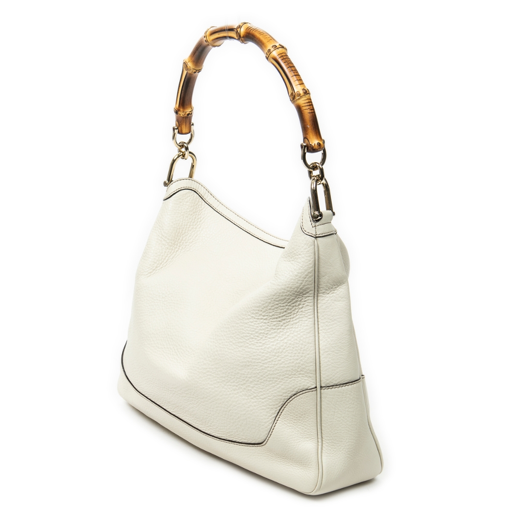 A vintage Gucci ivory calf leather Medium Diana Bamboo Hobo bag with a certificate of authenticity. Approximately 32cm height, 38cm width.