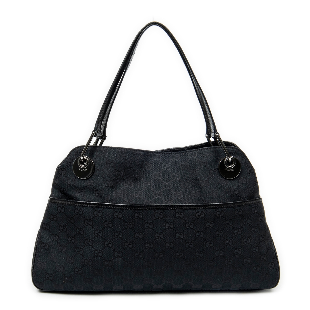 A vintage Gucci black canvas Medium Eclipse Tote bag with a certificate of authenticity. Approximately 24cm height, 39cm width.