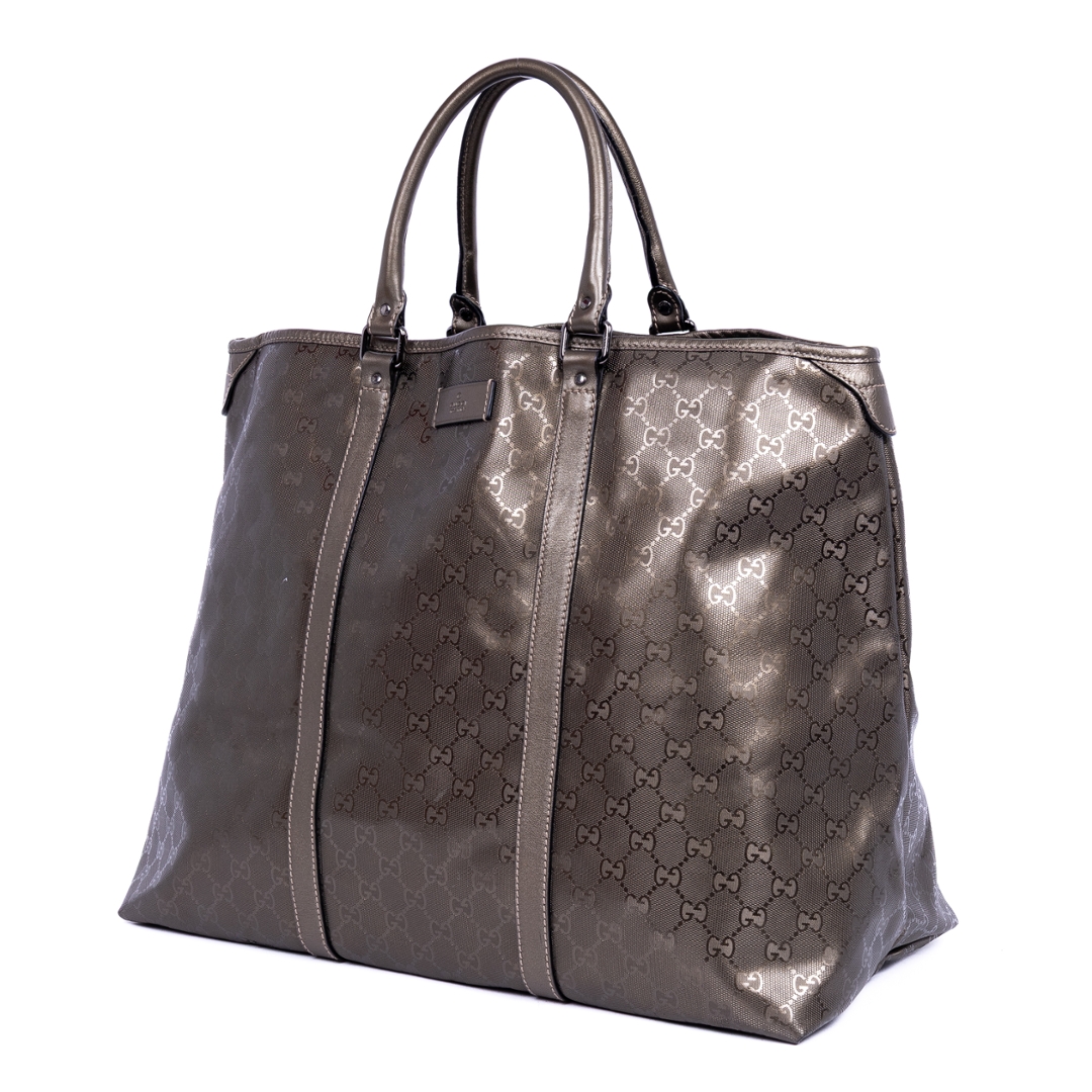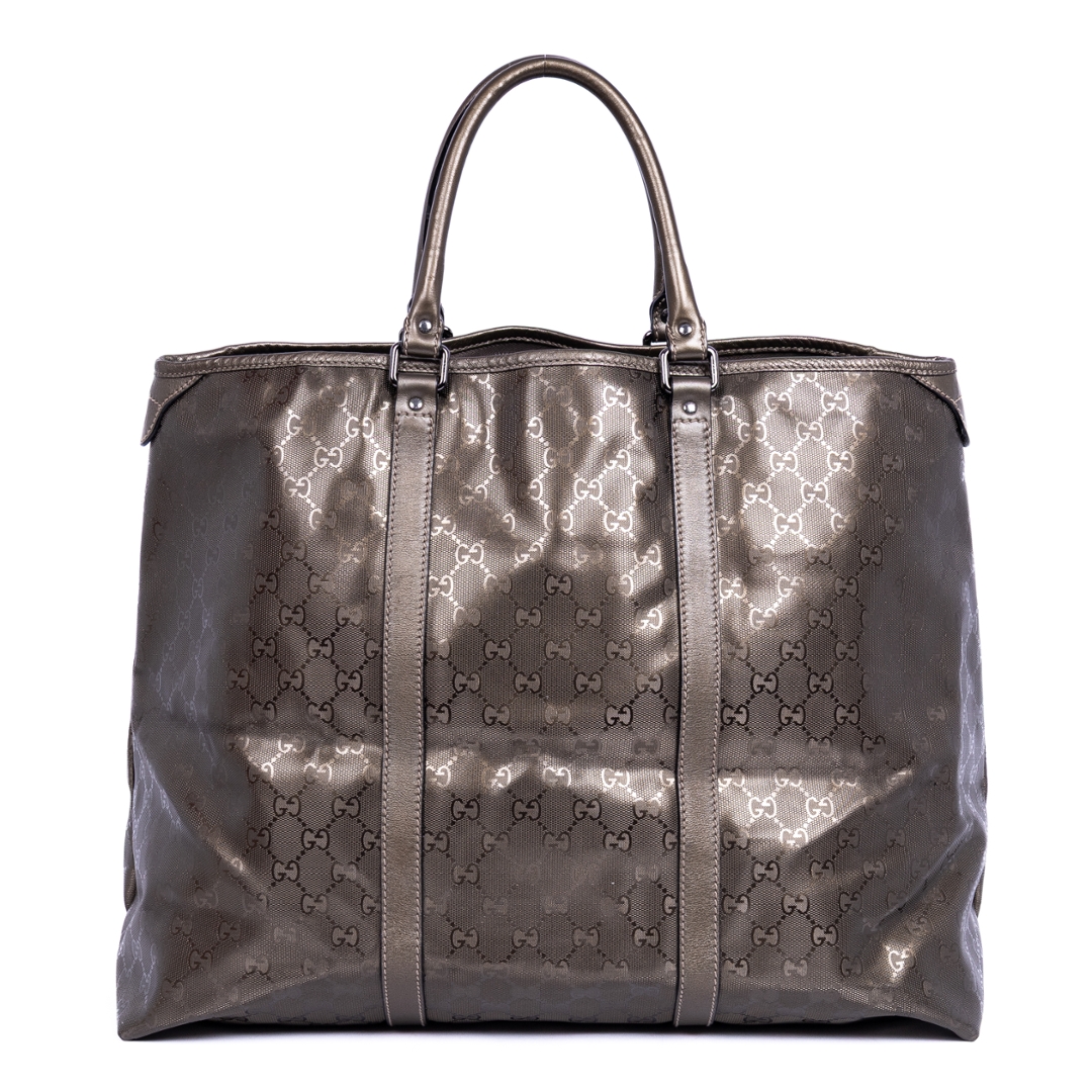 A vintage Gucci gold coated canvas Medium Joy Tote bag with a certificate of authenticity. Approximately 30cm height, 43cm width.