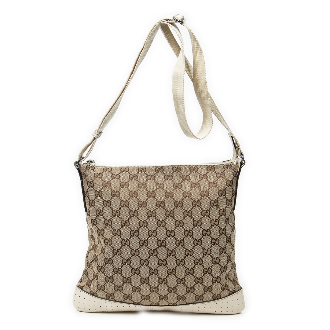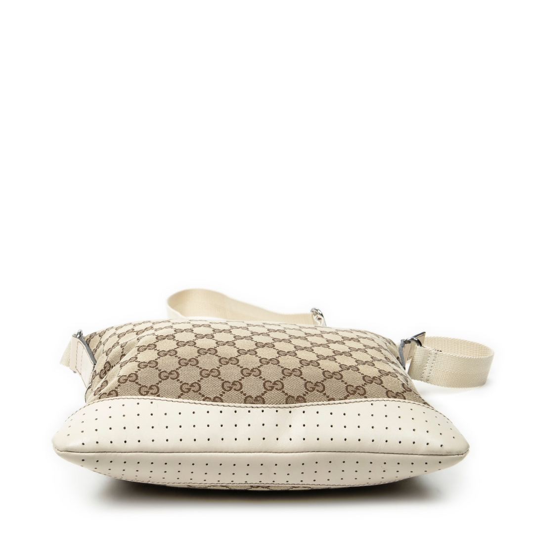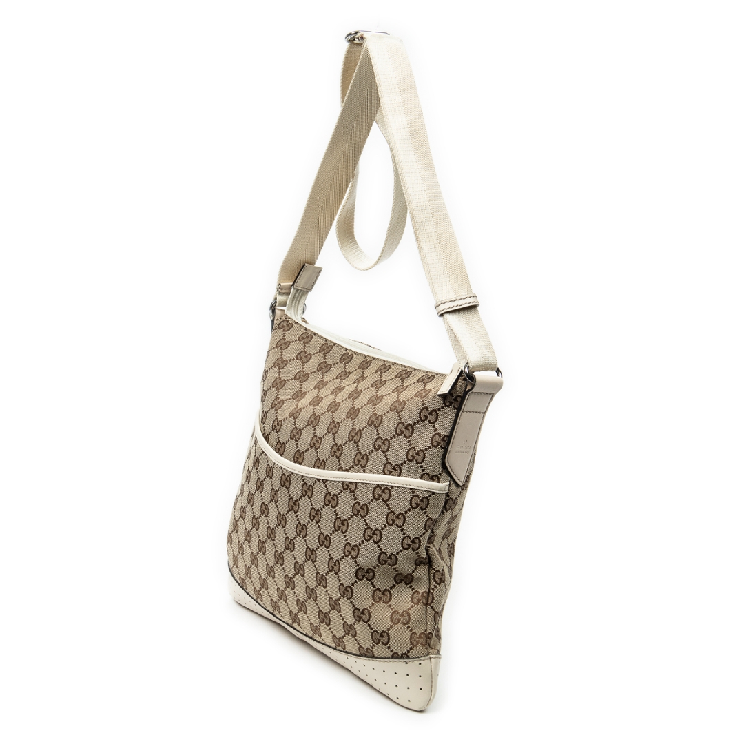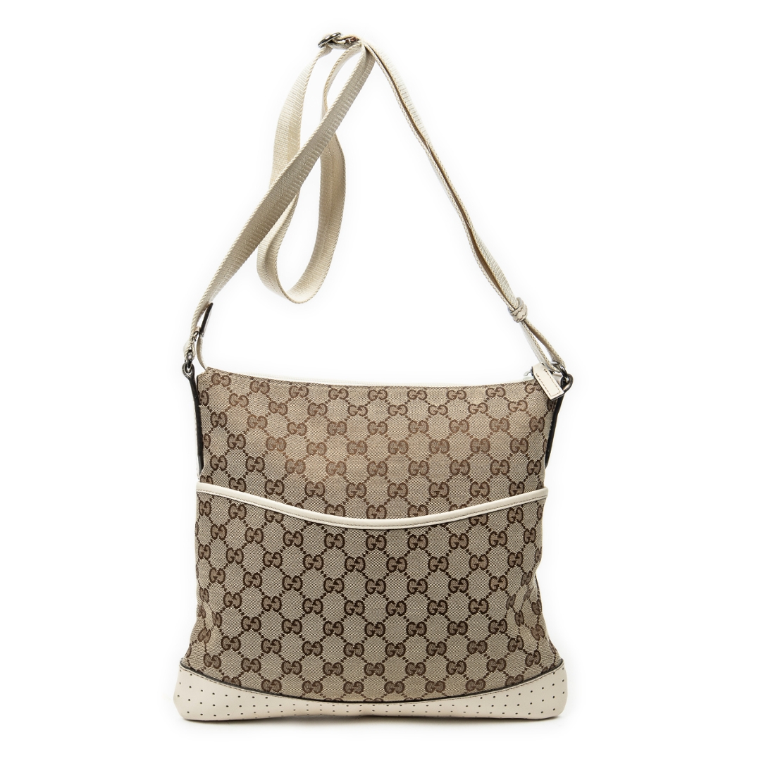 A vintage Gucci beige/ivory canvas Medium Messenger bag with a certificate of authenticity. Approximately 28cm height, 31cm width.