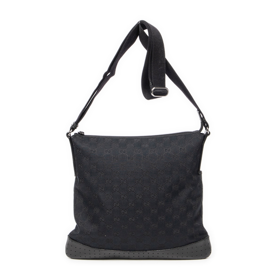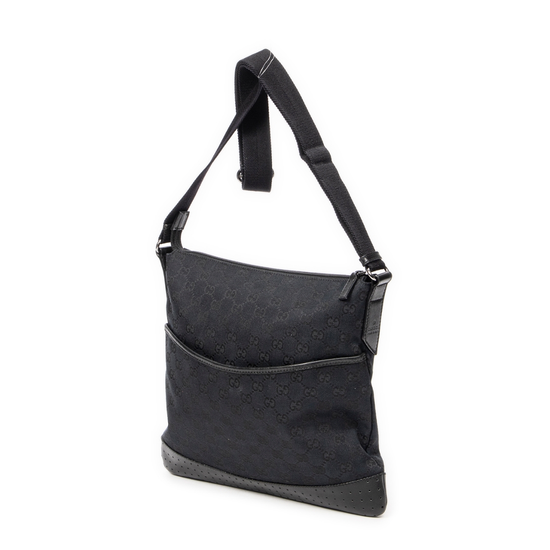 A vintage Gucci black canvas Medium Messenger bag with a certificate of authenticity. Approximately 28cm height, 31cm width.
