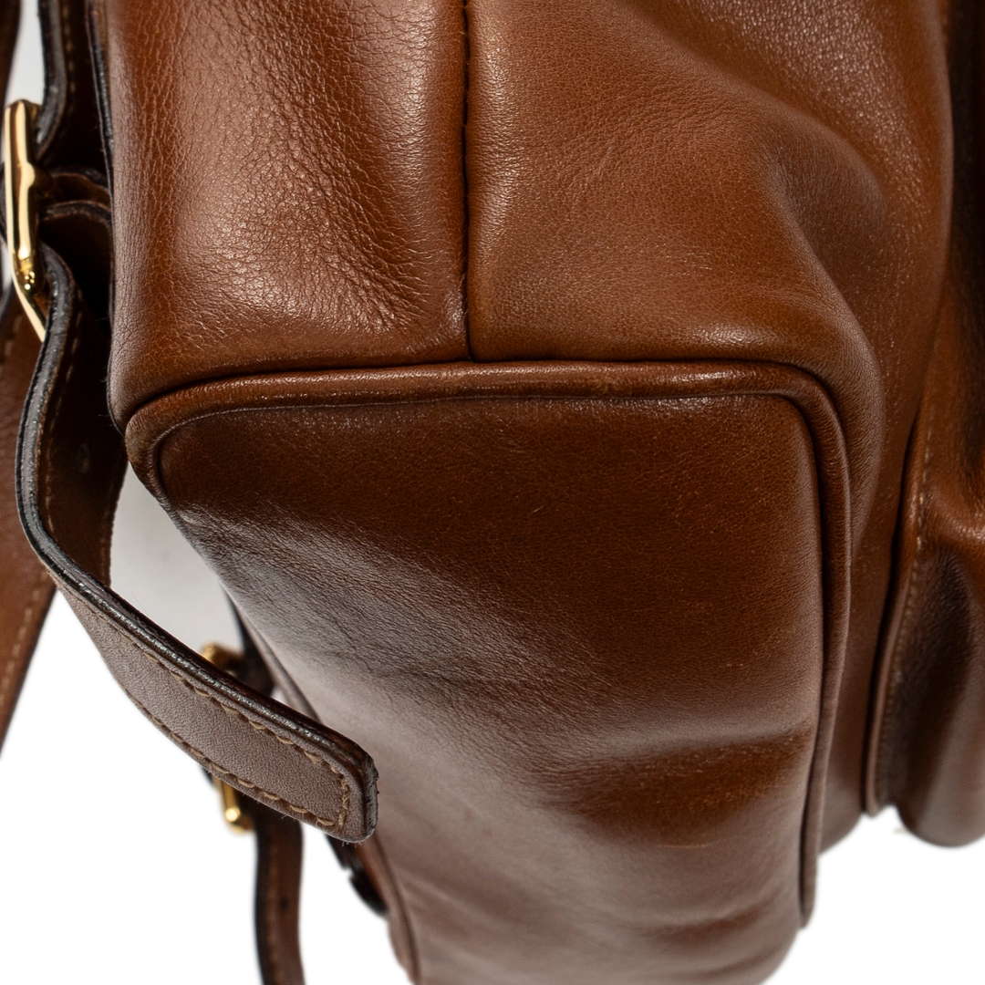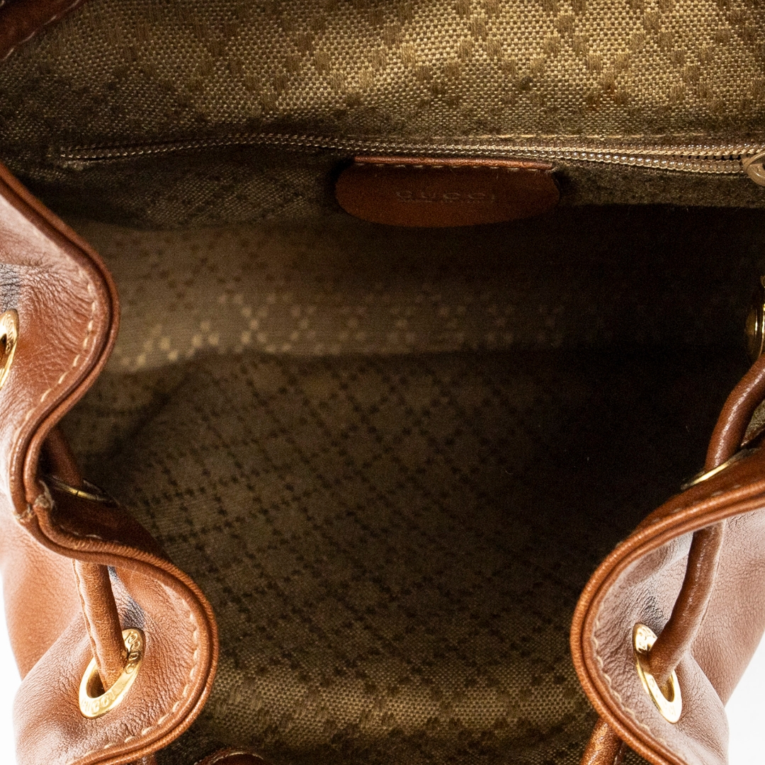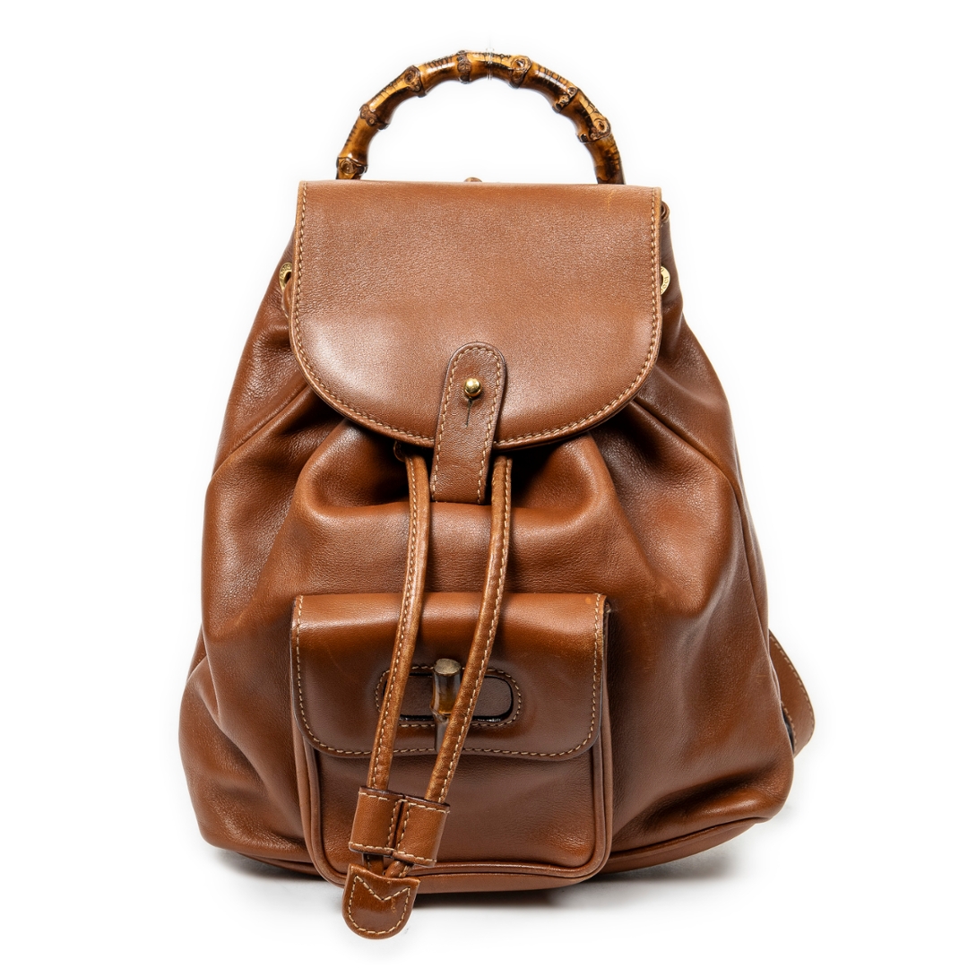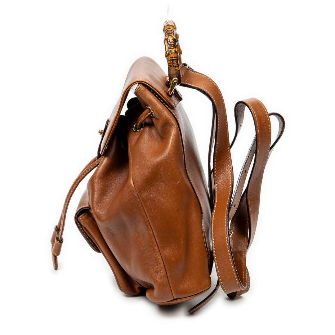 A vintage Gucci brown calf leather Mini Bamboo Backpack with a certificate of authenticity, Approximately 24cm height, 21cm width.