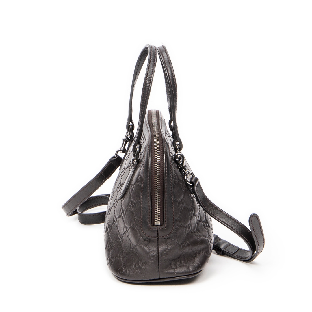 A vintage Gucci dark brown calf leather Mini Dome Crossbody bag with a certificate of authenticity, Approximately 18cm height, 24cm width.
