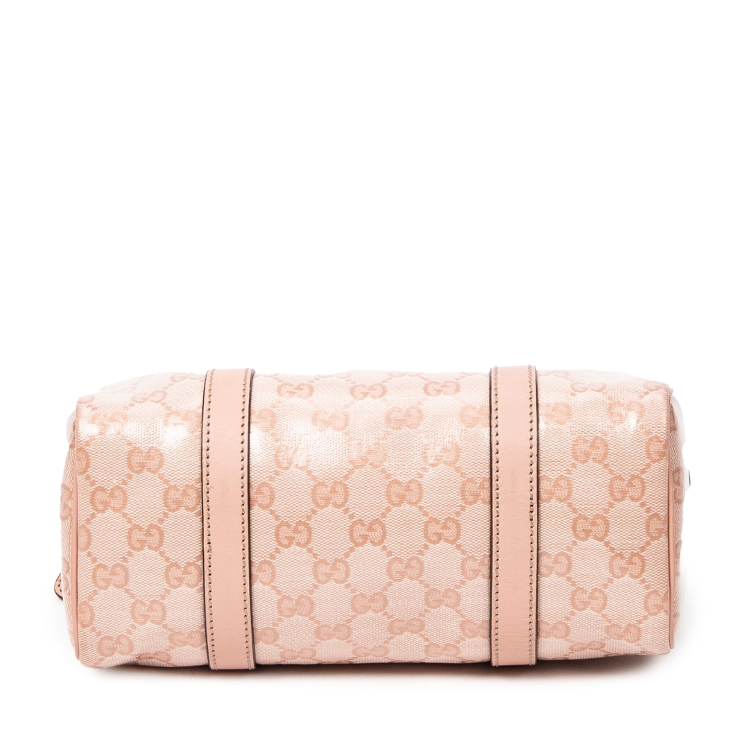 A vintage Gucci pink coated canvas Mini Joy Boston bag with a certificate of authenticity, Approximately 13cm height, 24cm width.