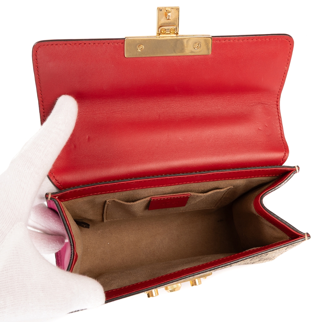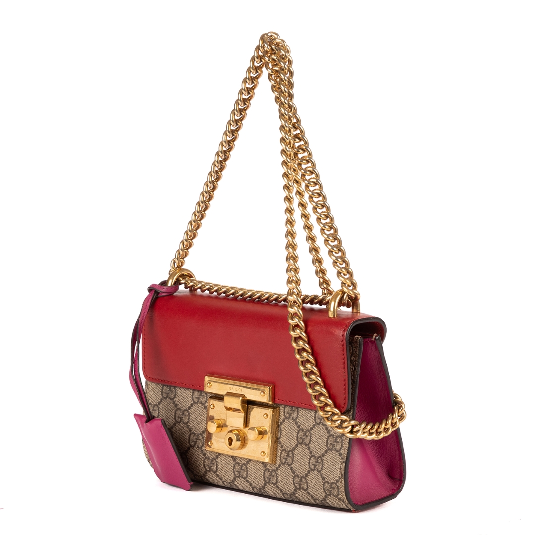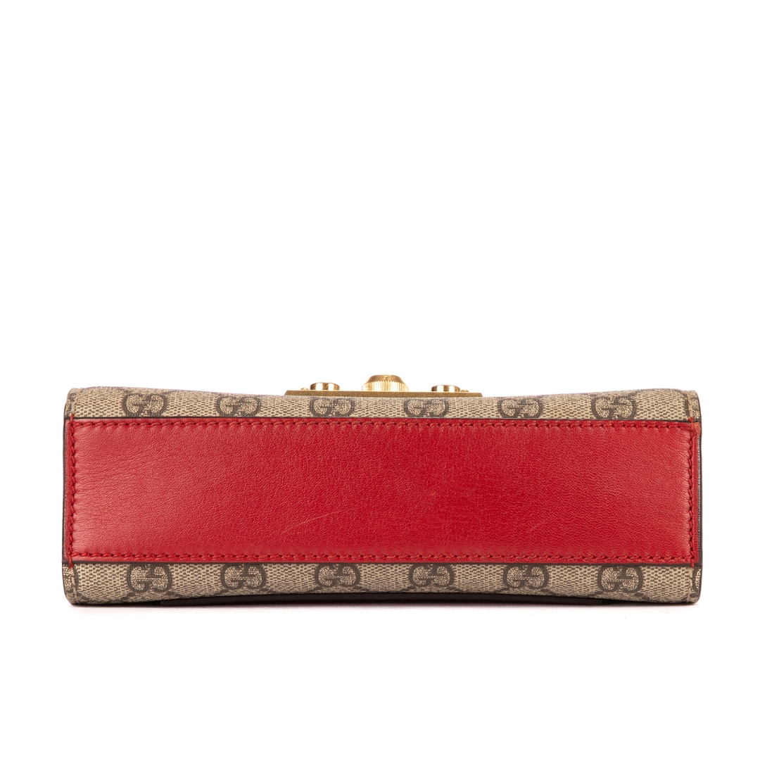 A vintage Gucci beige/red calf leather Padlock bag with a certificate of authenticity, Approximately 12cm height, 19cm width.