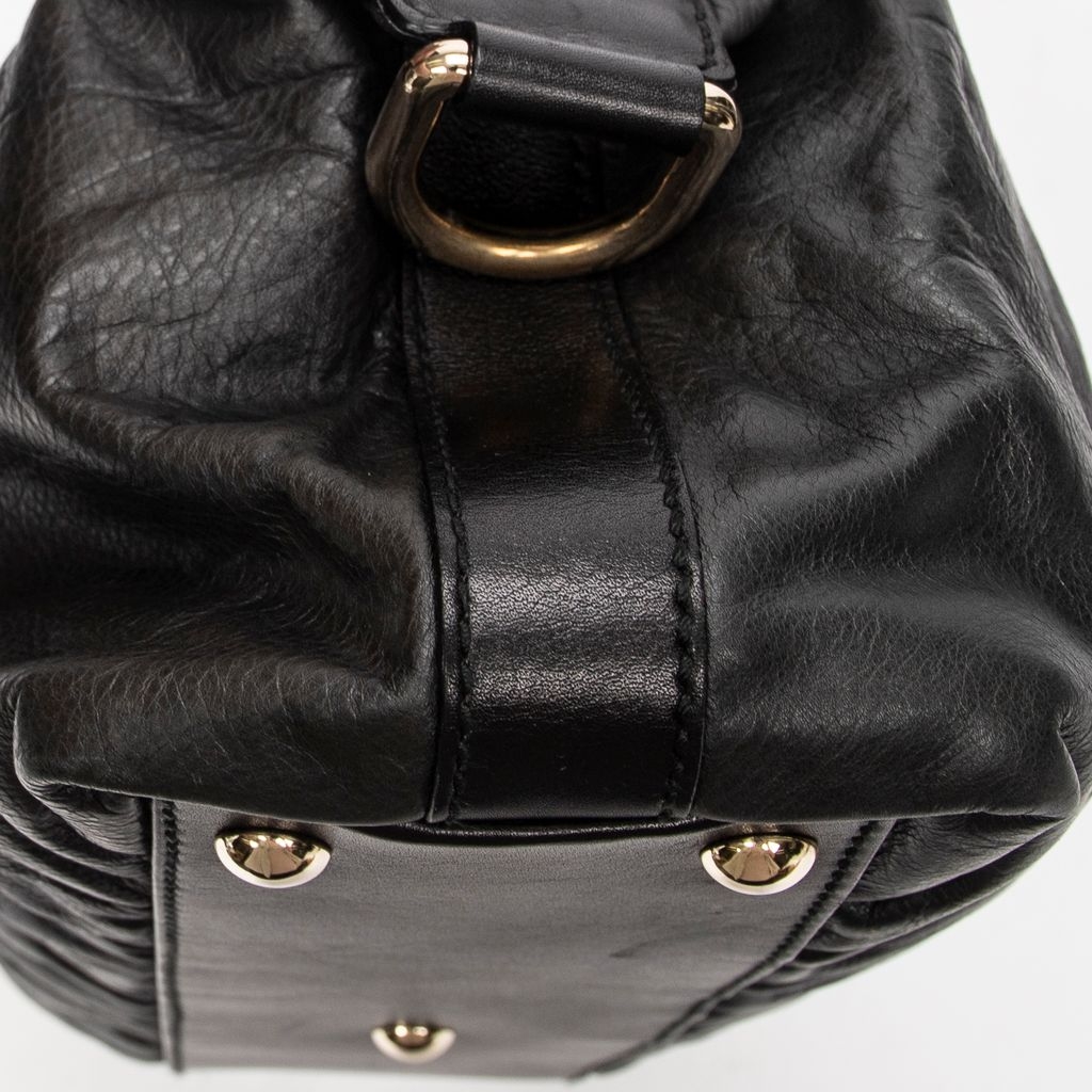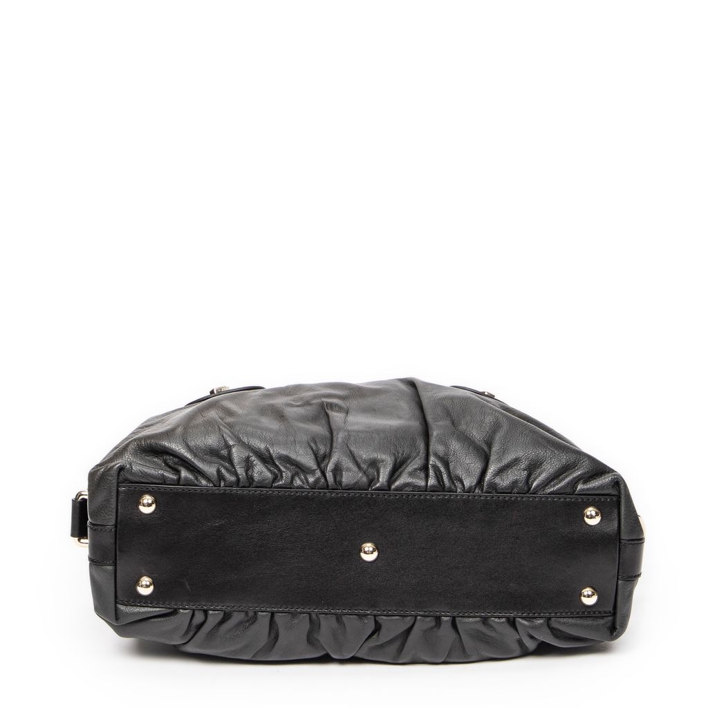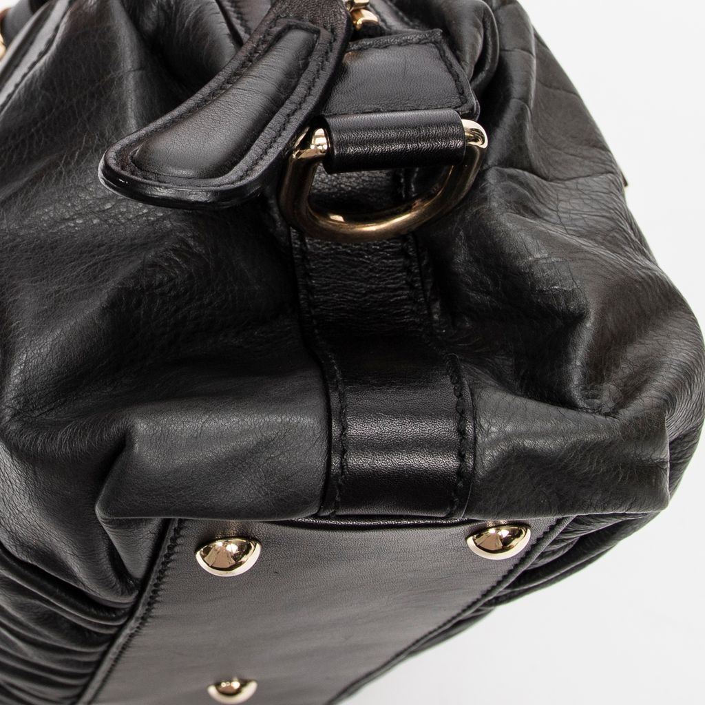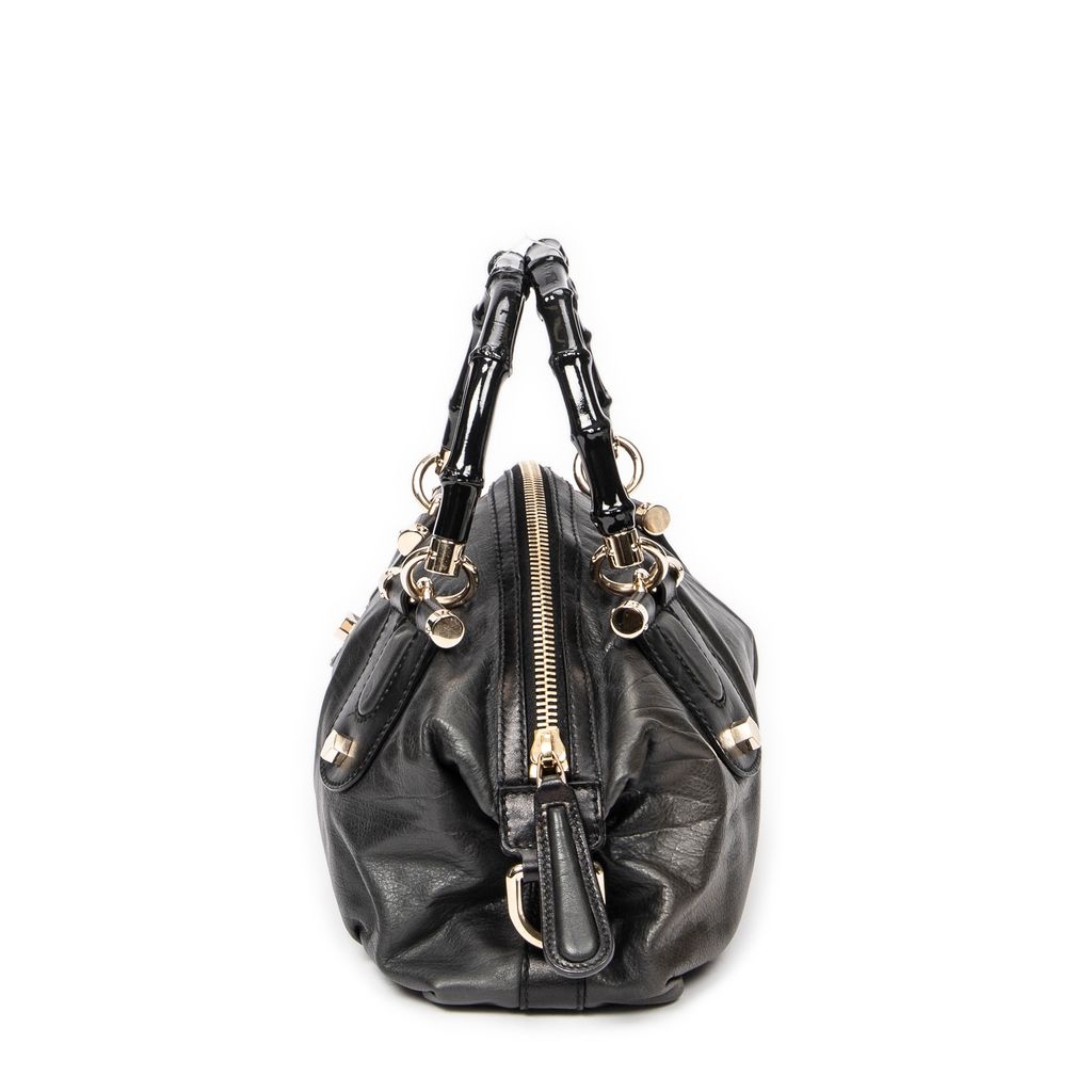 A vintage Gucci dark grey/black calf leather Pop Bamboo Top Handle bag with a certificate of authenticity, Approximately 15cm height, 31cm width.