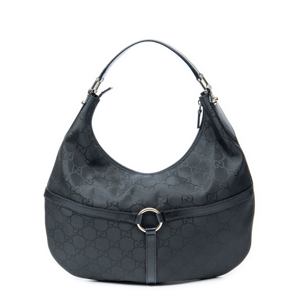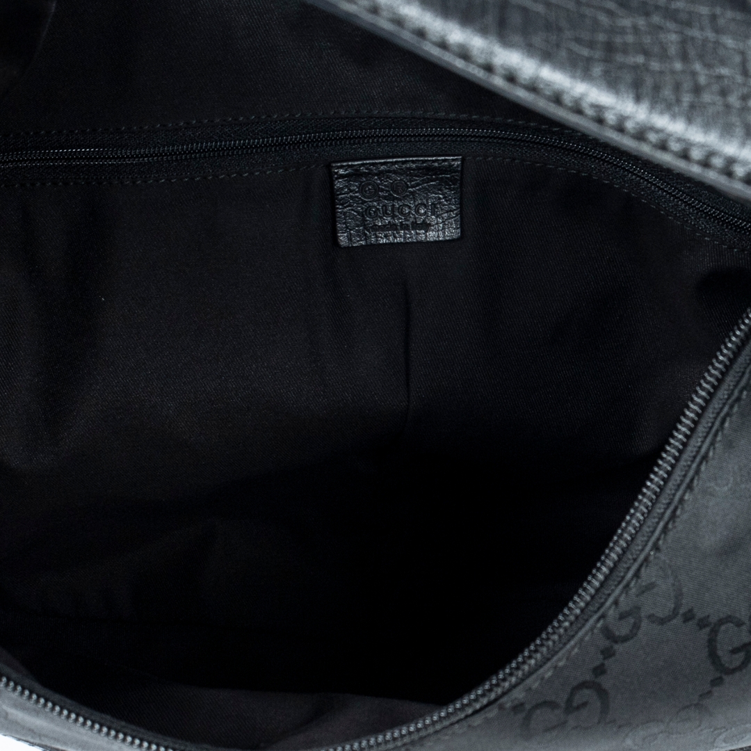 A vintage Gucci black canvas Reins Hobo bag with a certificate of authenticity, Approximately 23cm height, 32cm width.