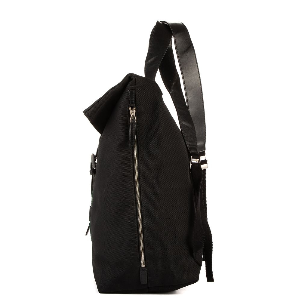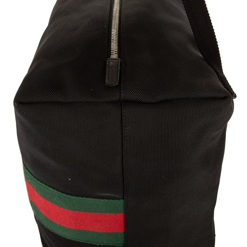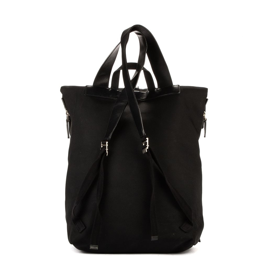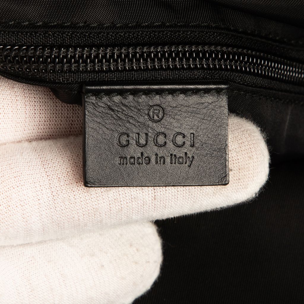 A vintage Gucci black canvas Sherry Line Backpack bag with a certificate of authenticity, Approximately 45cm height, 30cm width.
