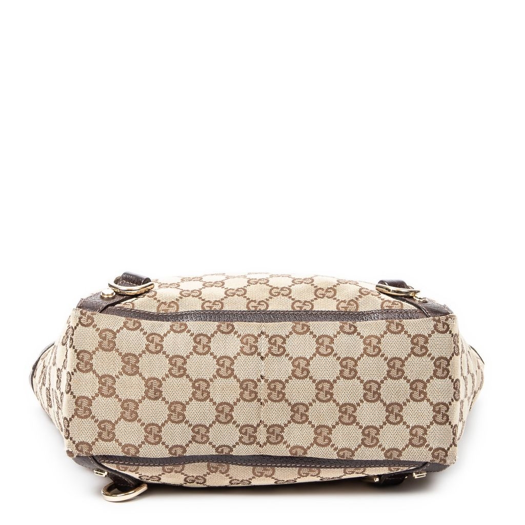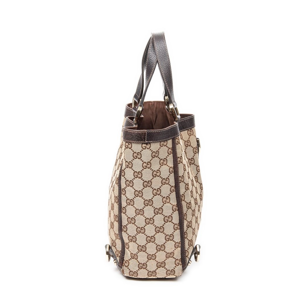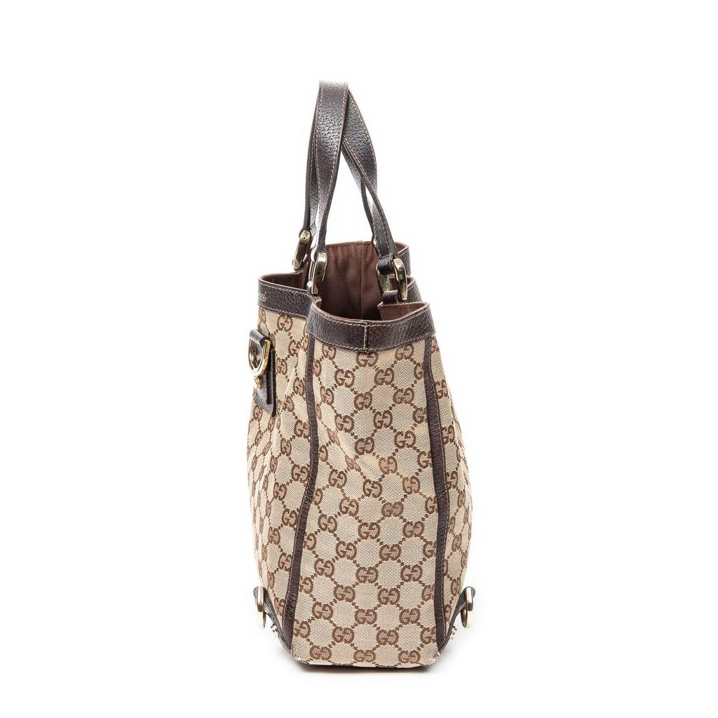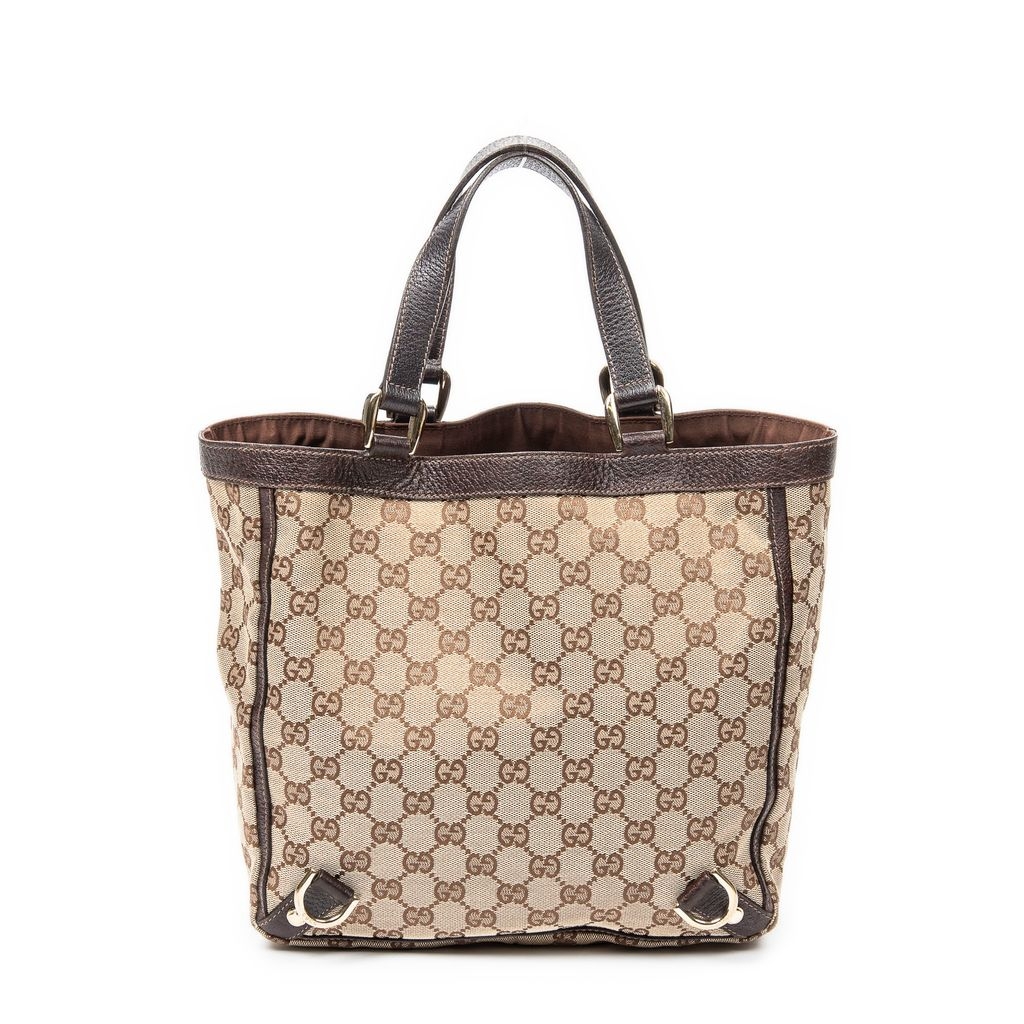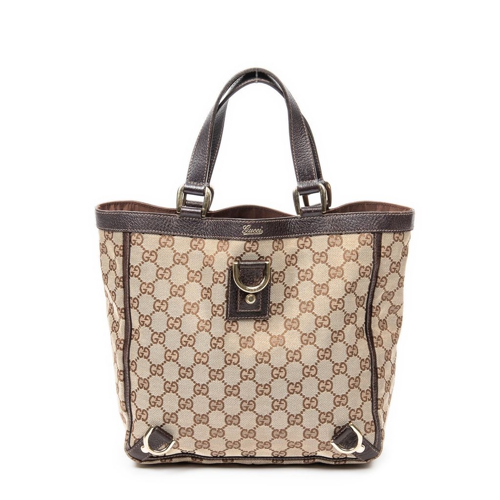 A vintage Gucci beige/brown canvas Small Abbey D-Ring Tote bag with a certificate of authenticity, Approximately 26cm height, 27cm width.