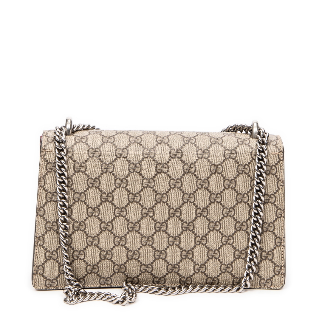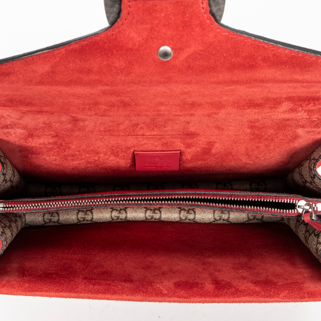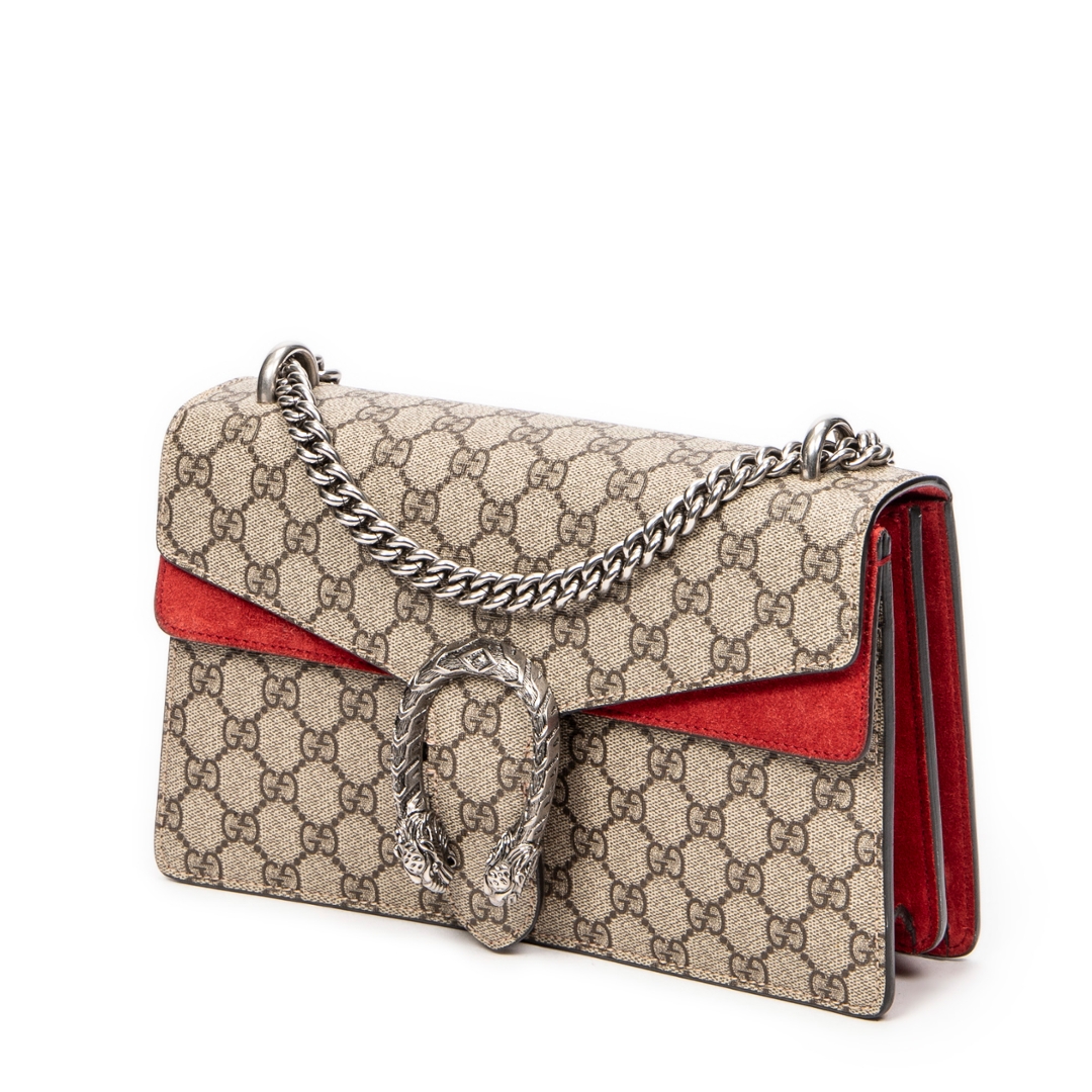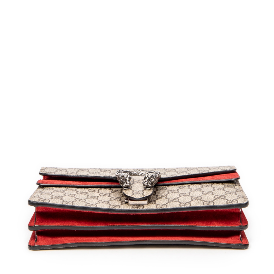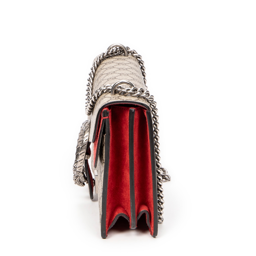 A vintage Gucci beige/red coated canvas Small Dionysus Chain Crossbody bag with a certificate of authenticity, Approximately 16cm height, 27cm width.