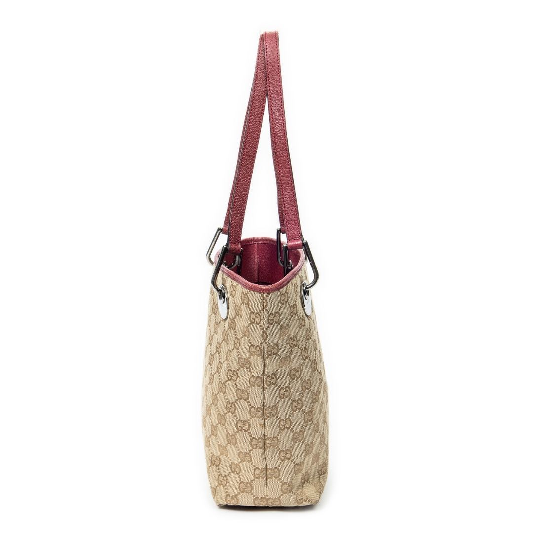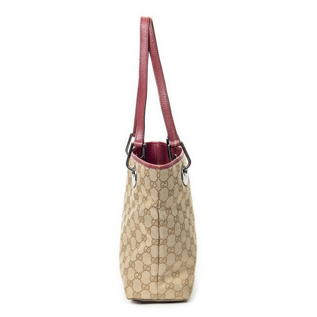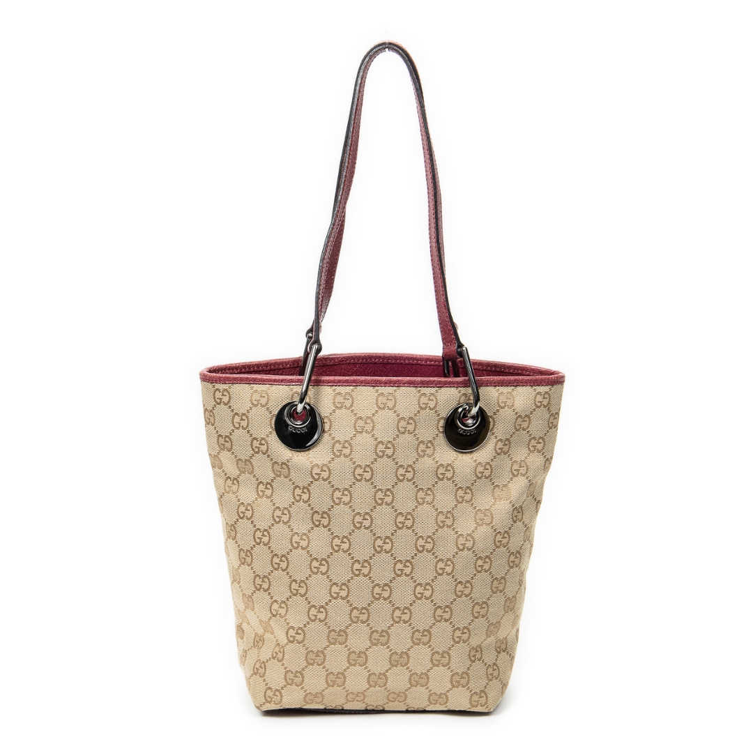 A vintage Gucci beige/red canvas Small Eclipse Shopping bag with a certificate of authenticity, Approximately 24cm height, 17cm width.