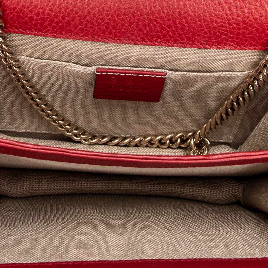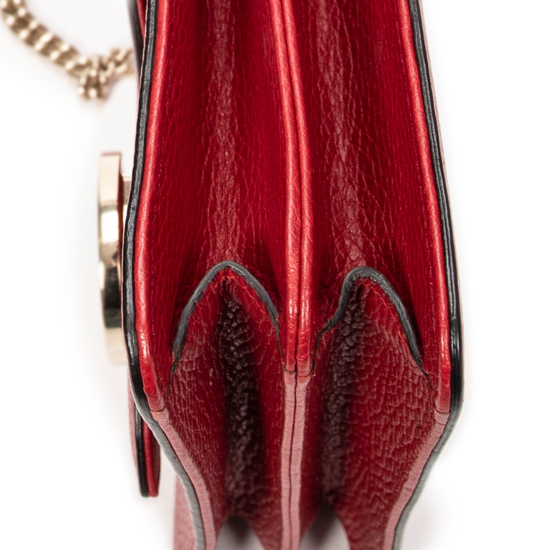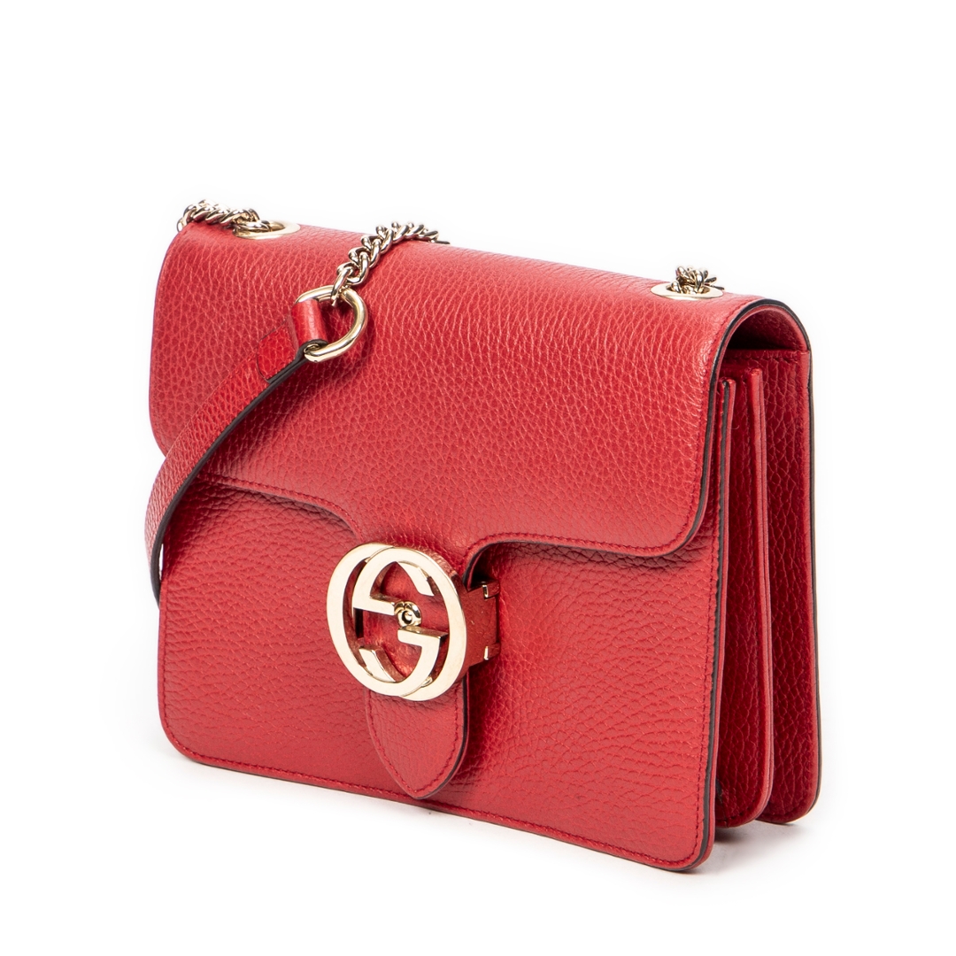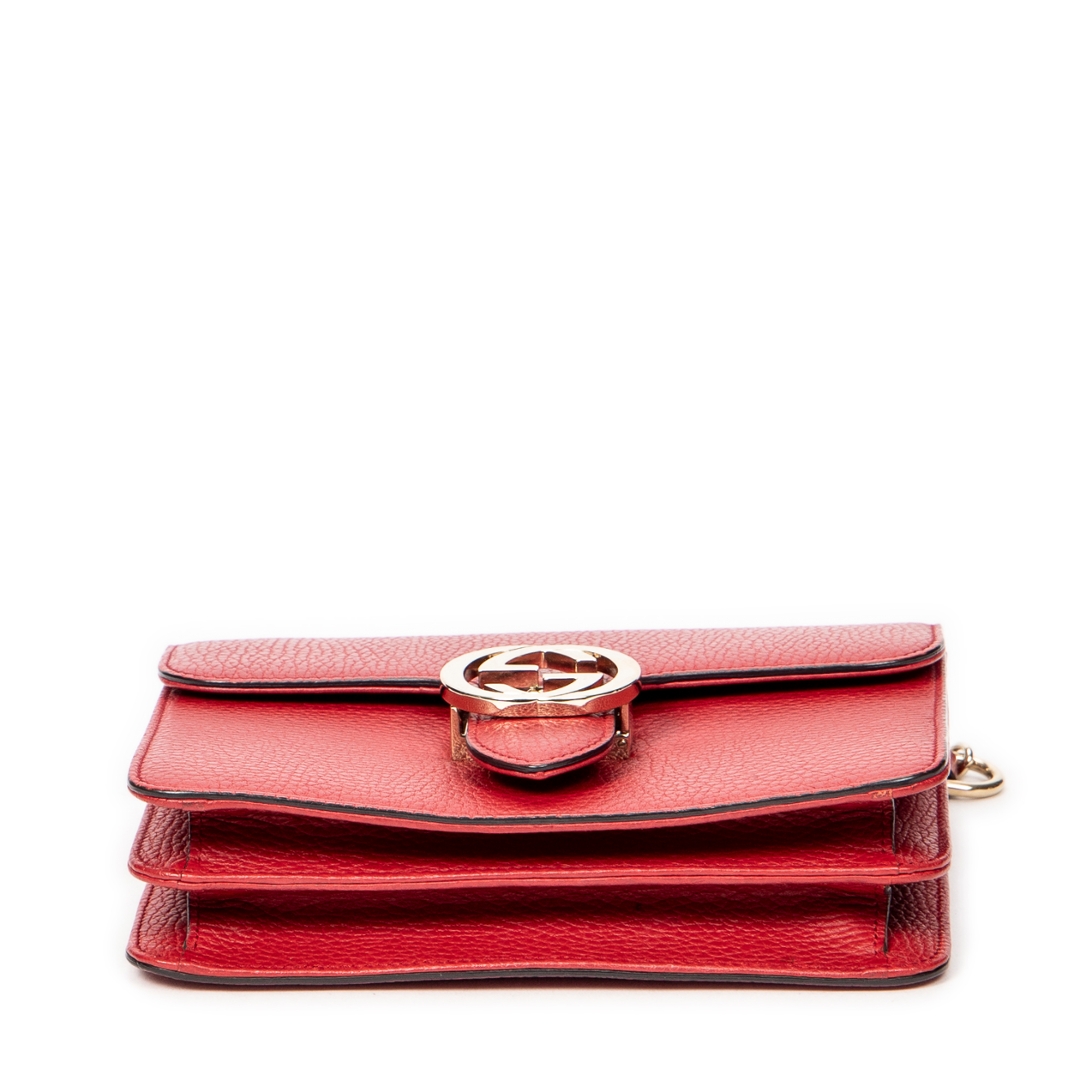 A vintage Gucci red calf leather Small Interlocking GG Chain Crossbody bag with a certificate of authenticity, Approximately 16cm height, 20cm width.