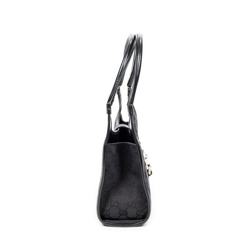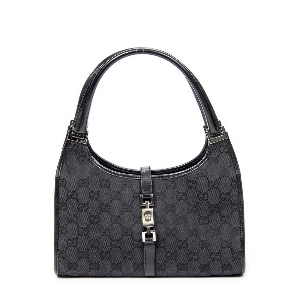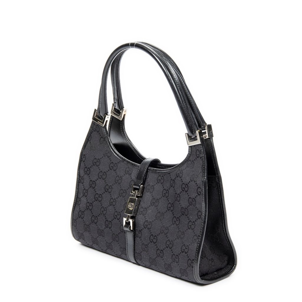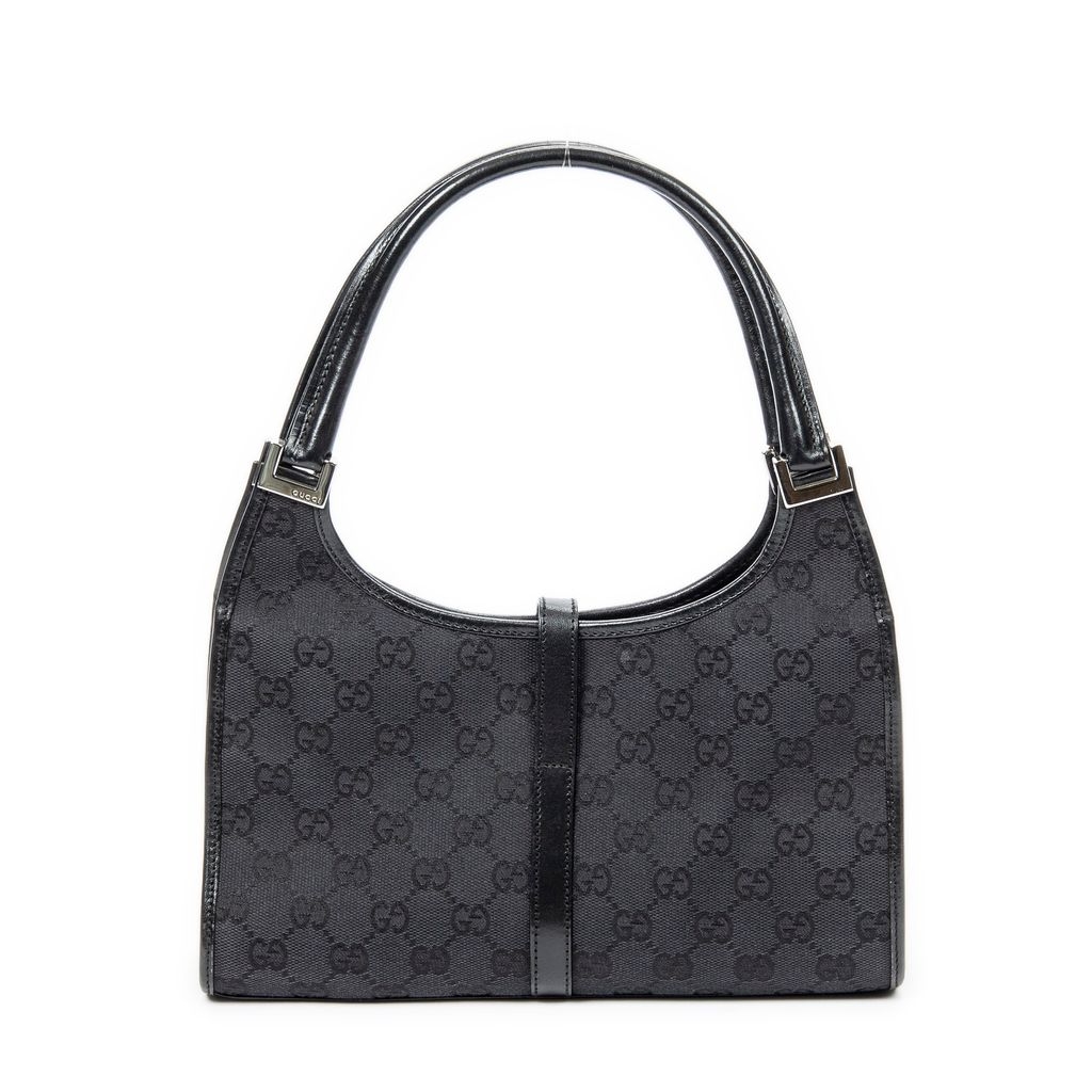 A vintage Gucci black canvas Small Jackie bag with a certificate of authenticity, Approximately 20cm height, 26cm width.