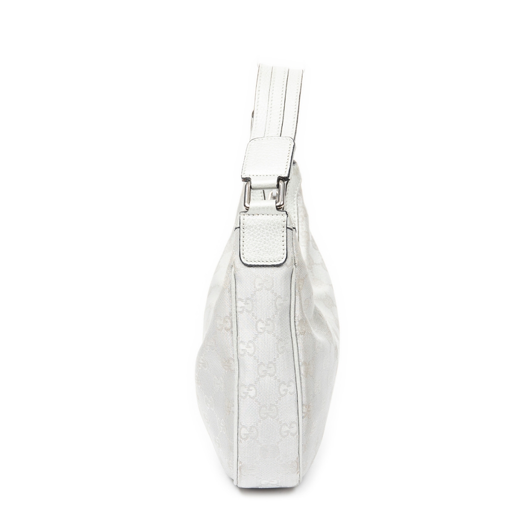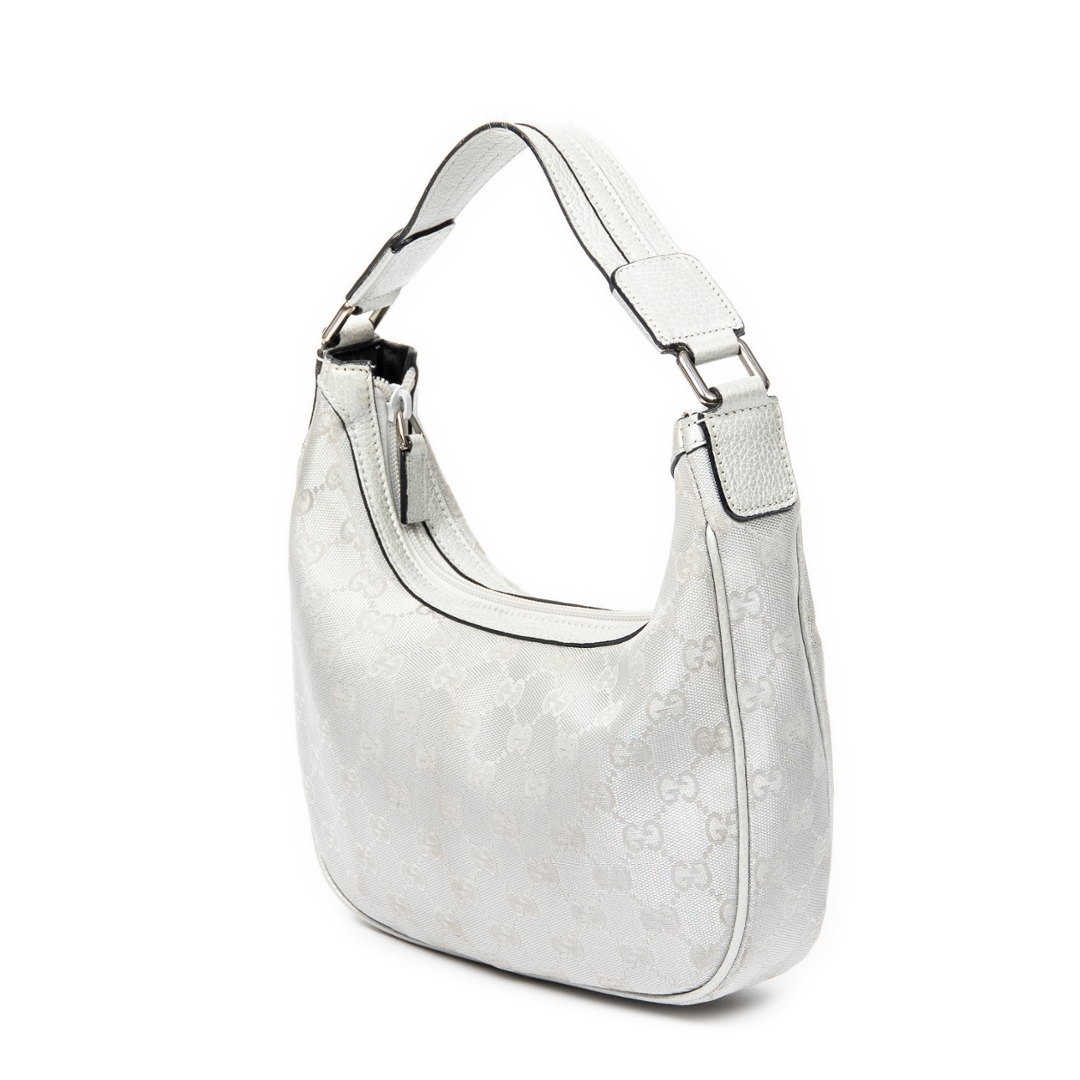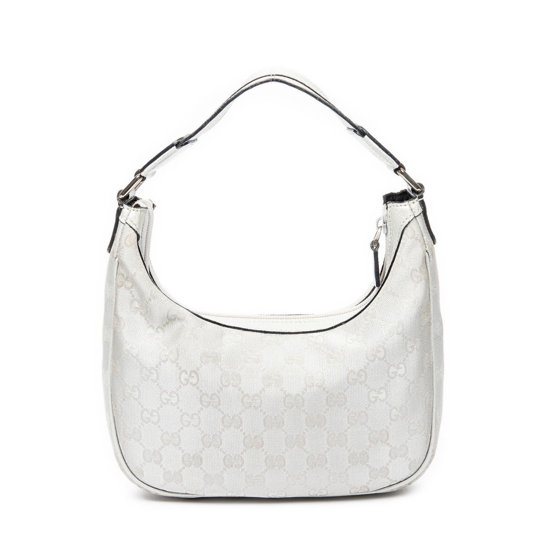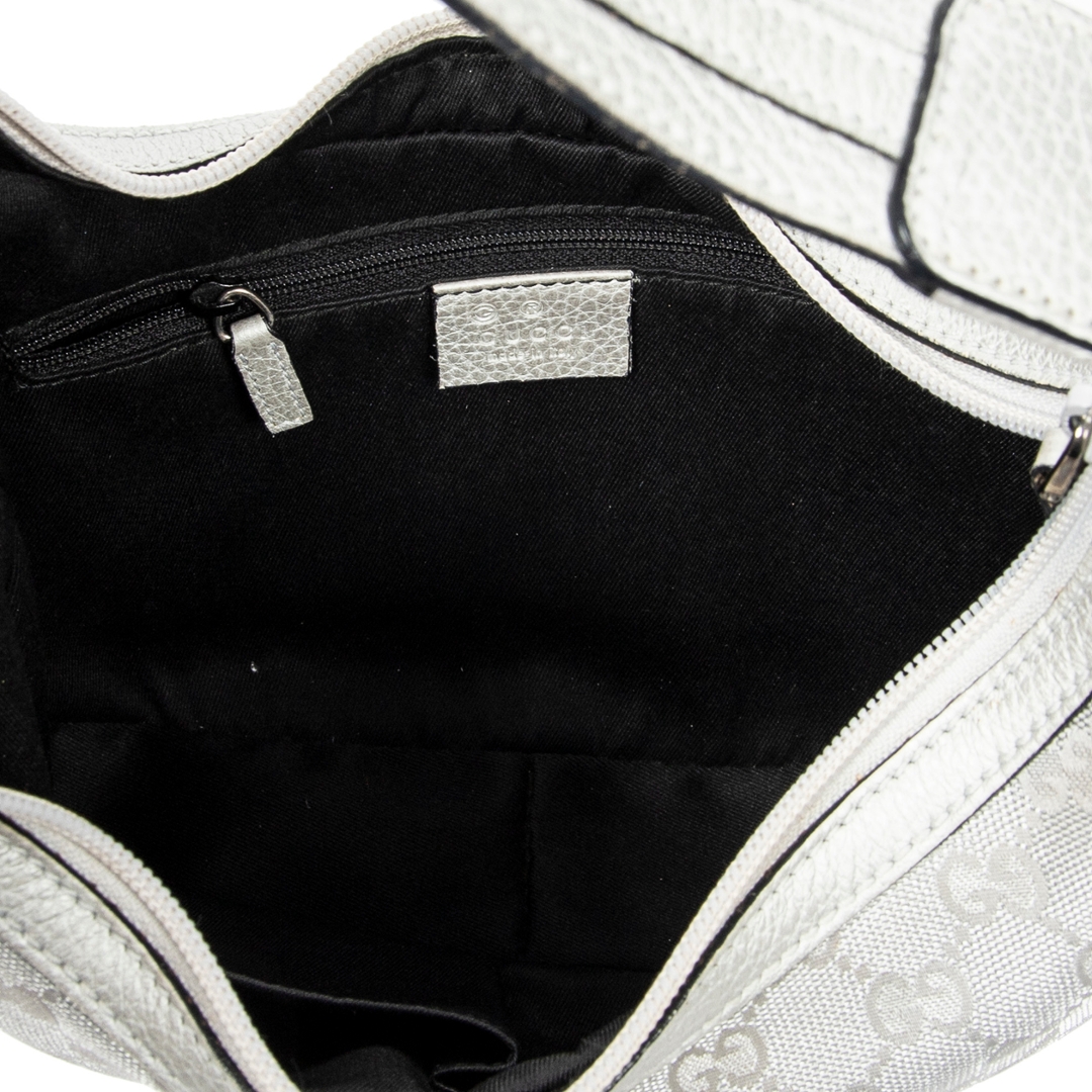 A vintage Gucci silver canvas Small Zip Hobo bag with a certificate of authenticity, Approximately 20cm height, 23cm width.