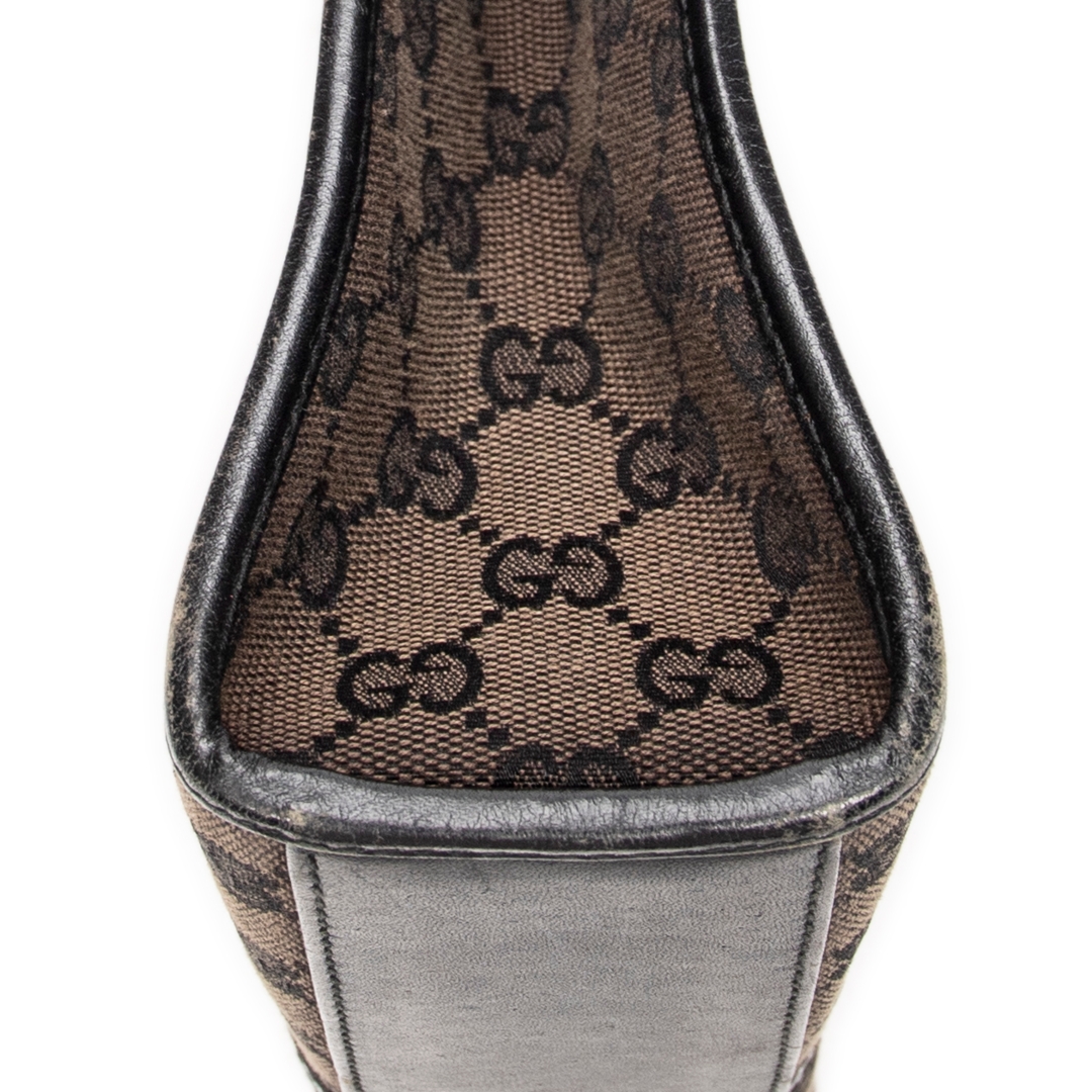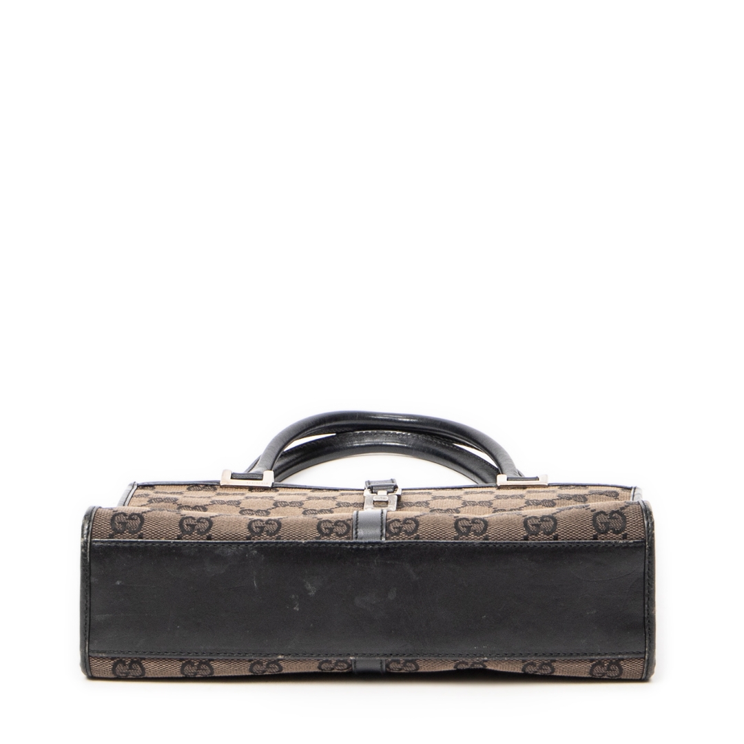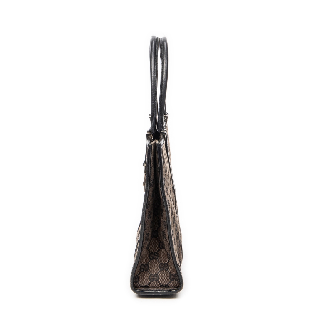 A vintage Gucci brown/black canvas Square Jackie Tote bag with a certificate of authenticity, Approximately 23cm height, 25cm width.