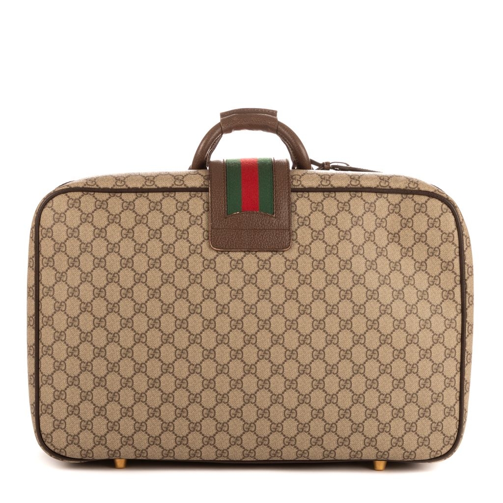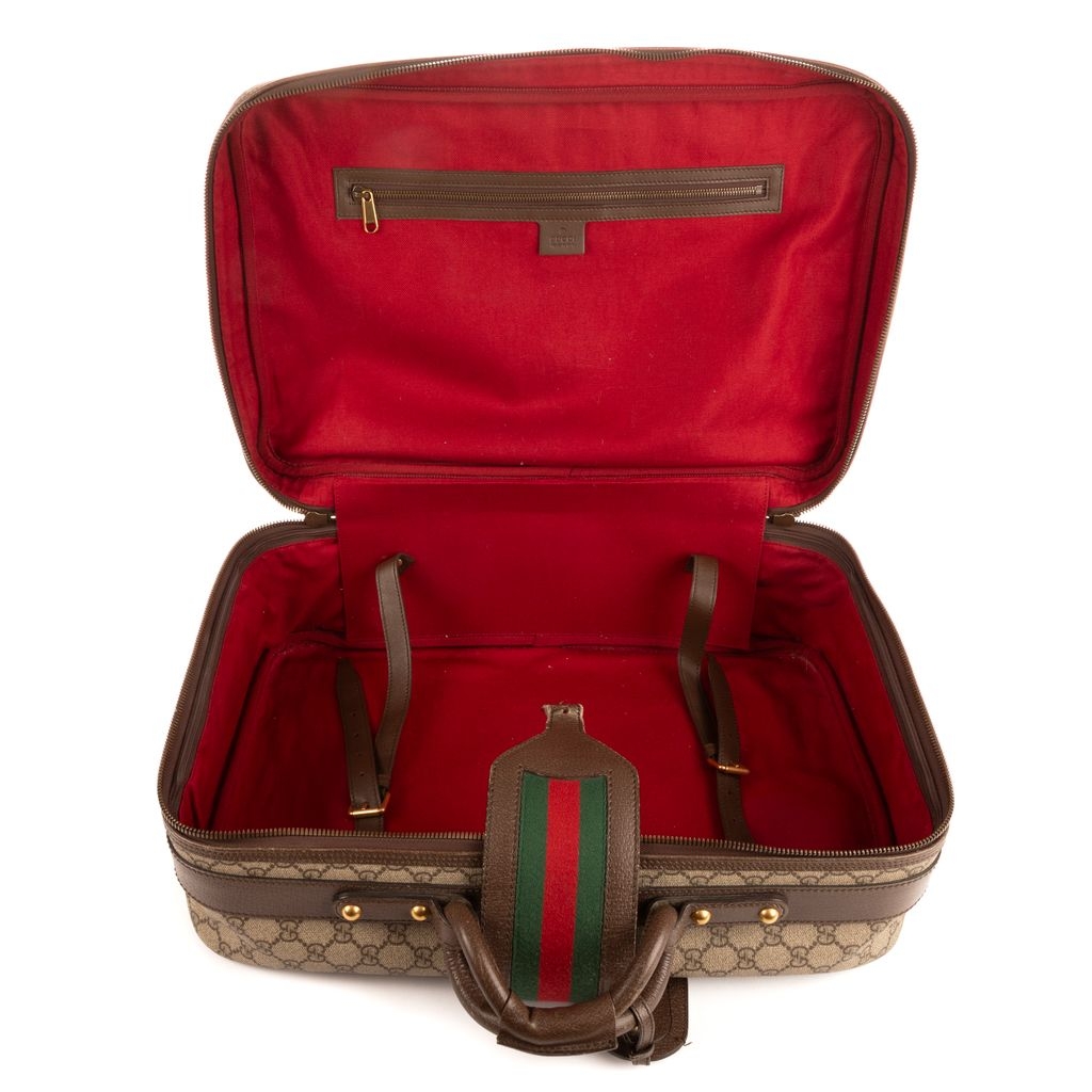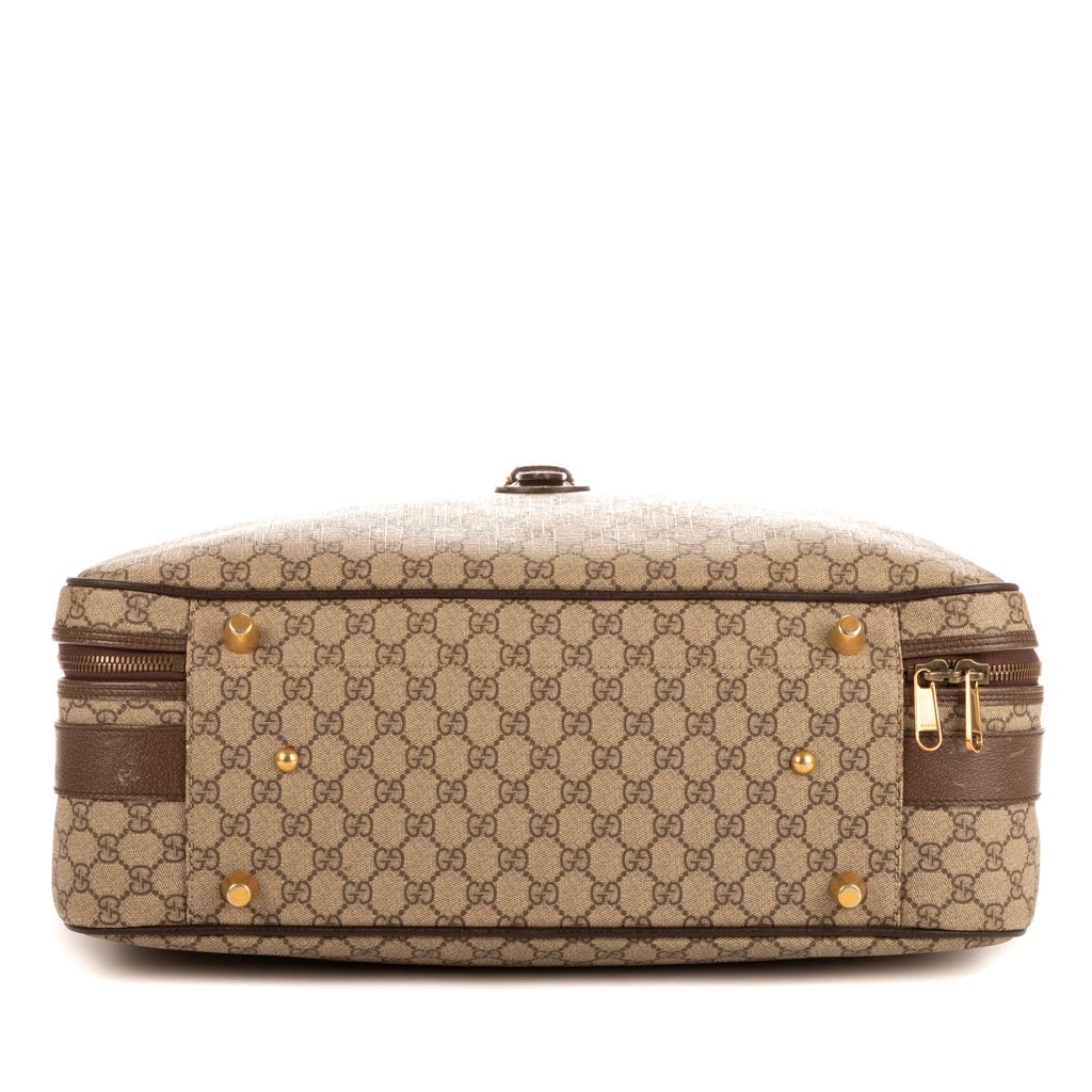 A vintage Gucci beige coated canvas Suitcase with a certificate of authenticity, Approximately 30cm height, 48cm width.