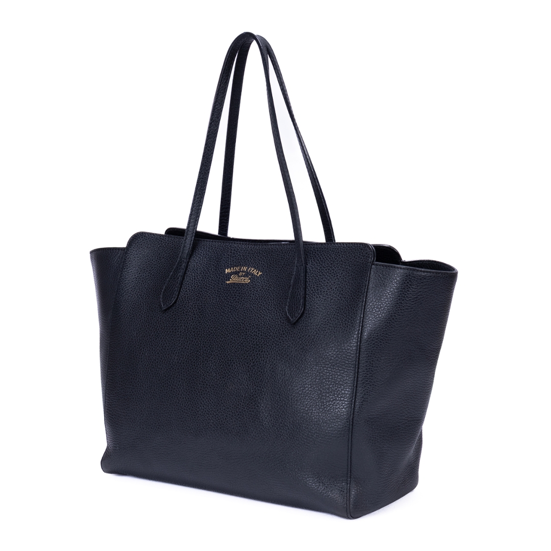A vintage Gucci black calf leather Swing Shopper bag with a certificate of authenticity. Approximately 28cm height, 34cm width.