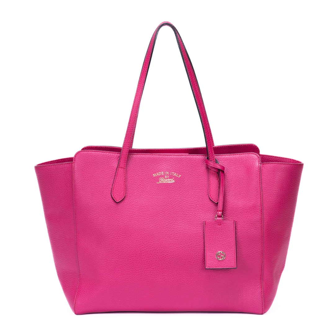 A vintage Gucci fuchsia calf leather Swing Shopper Tote bag with a certificate of authenticity. Approximately 28cm height, 34cm width.