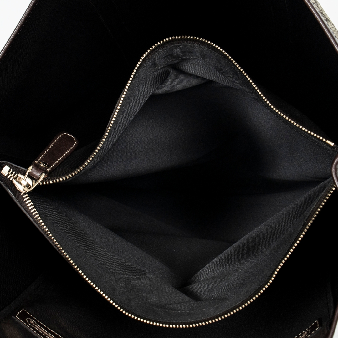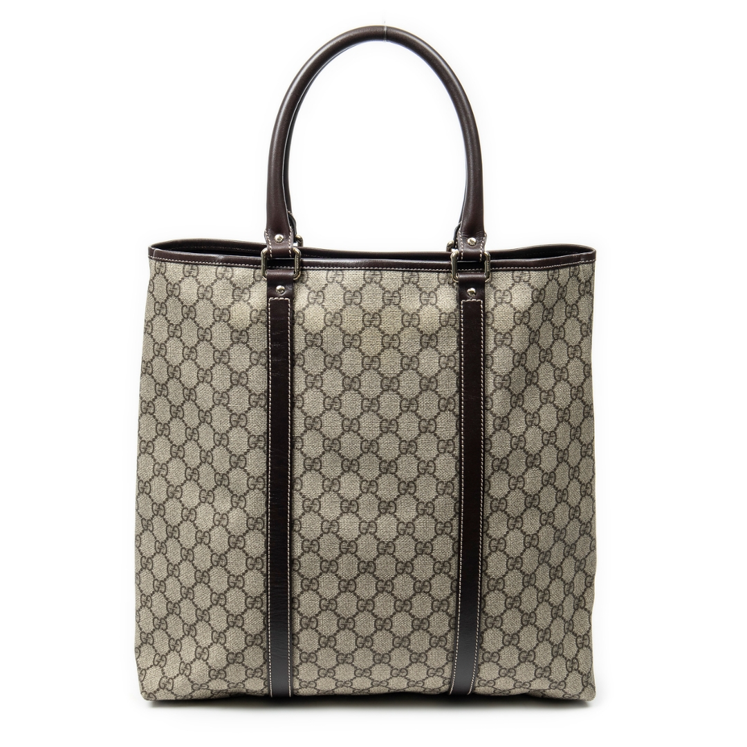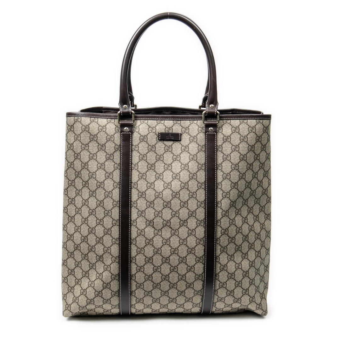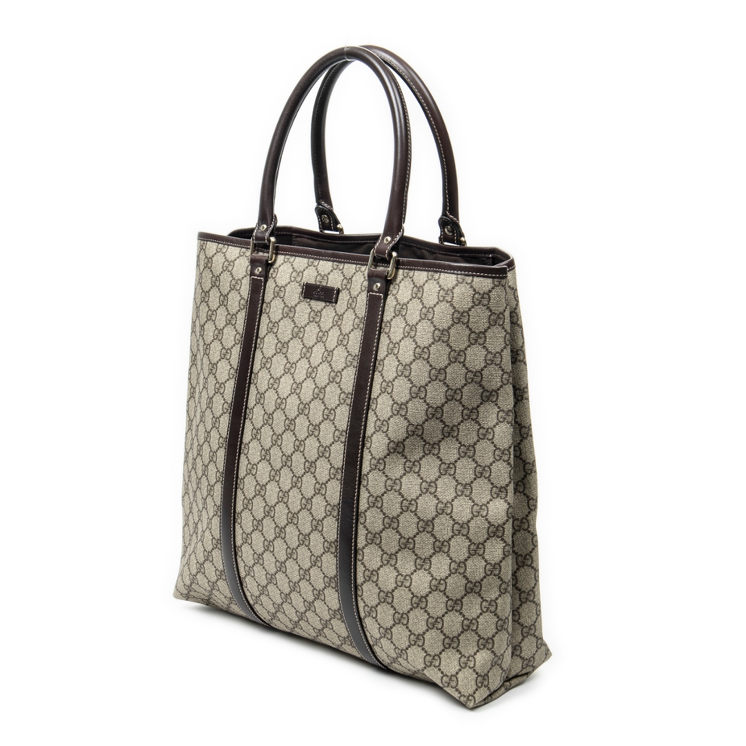 A vintage Gucci beige/dark brown coated canvas Vertical Joy Tote bag with a certificate of authenticity, Approximately 42cm height, 40cm width.