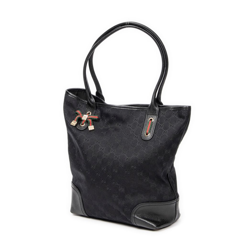 A vintage Gucci black canvas Vertical Princy Tote bag with a certificate of authenticity, Approximately 31cm height, 24cm width.