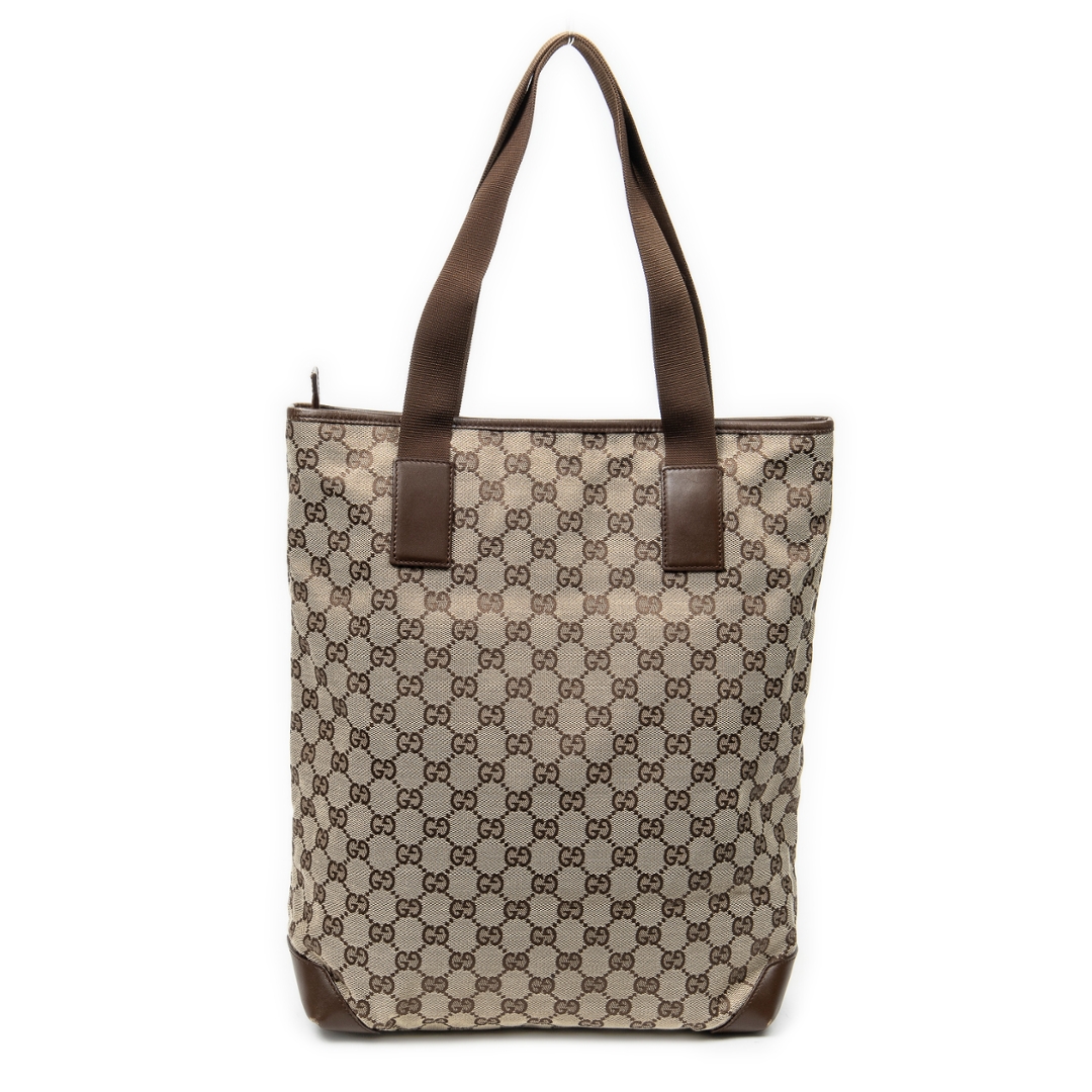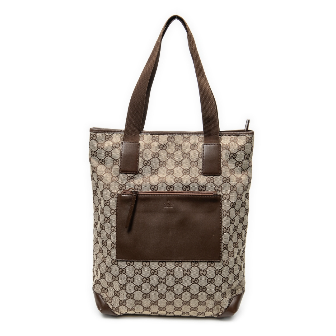 A vintage Gucci beige/brown canvas Vertical Zip Tote bag with a certificate of authenticity, Approximately 33cm height, 26cm width.
