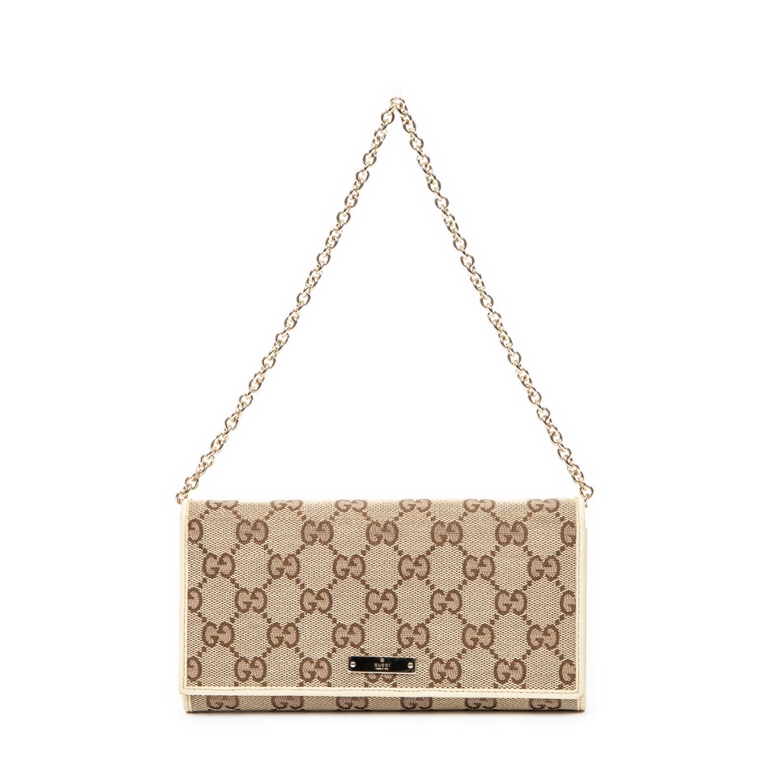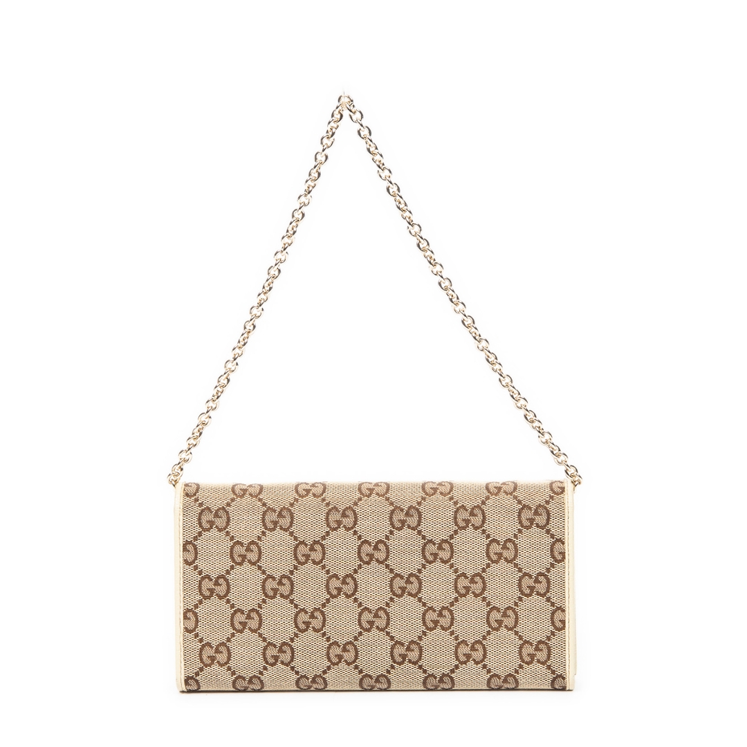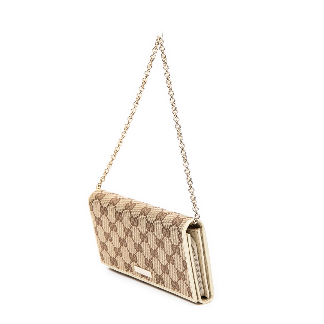 A vintage Gucci beige canvas Wallet On Chain bag with a certificate of authenticity, Approximately 10cm height, 19cm width.