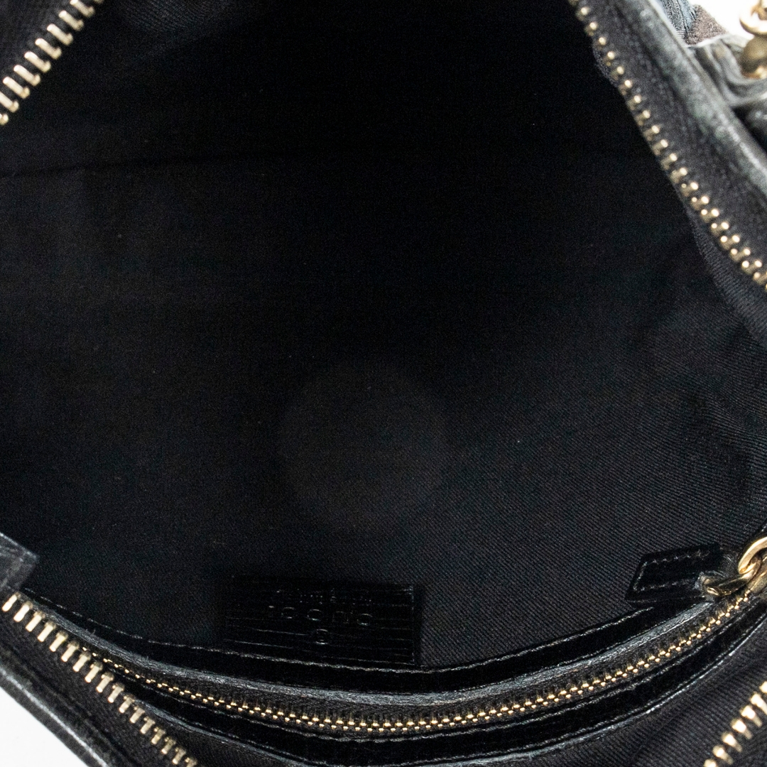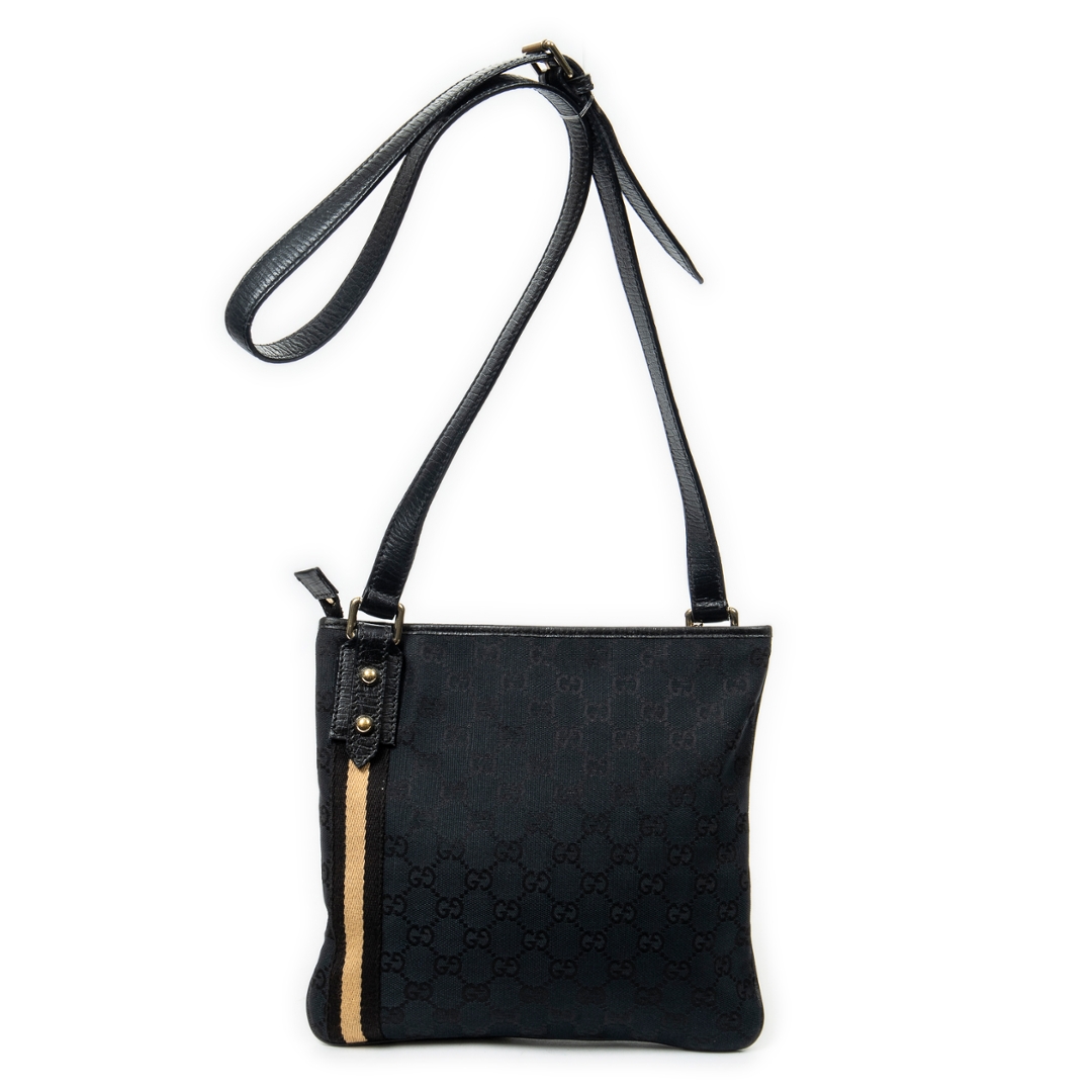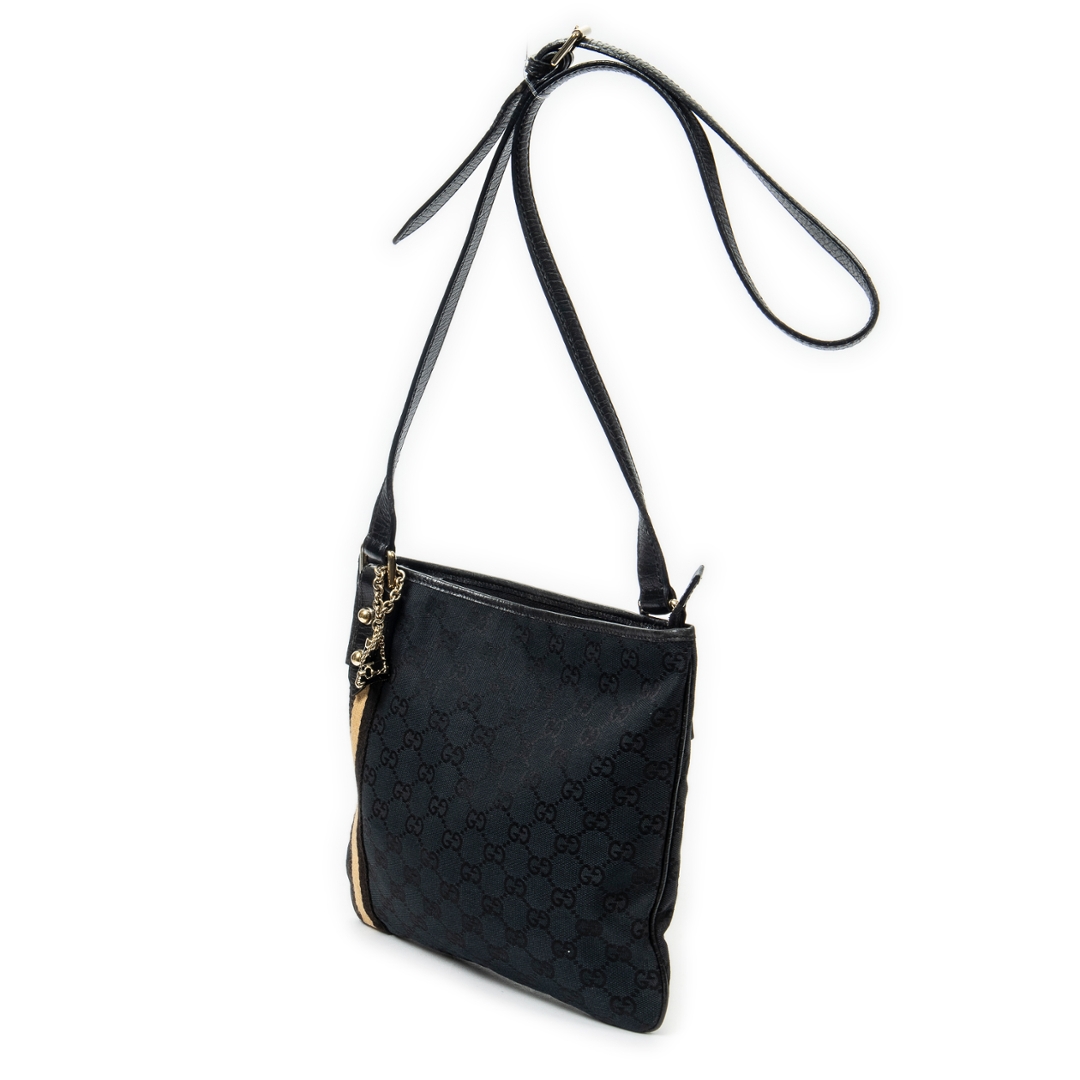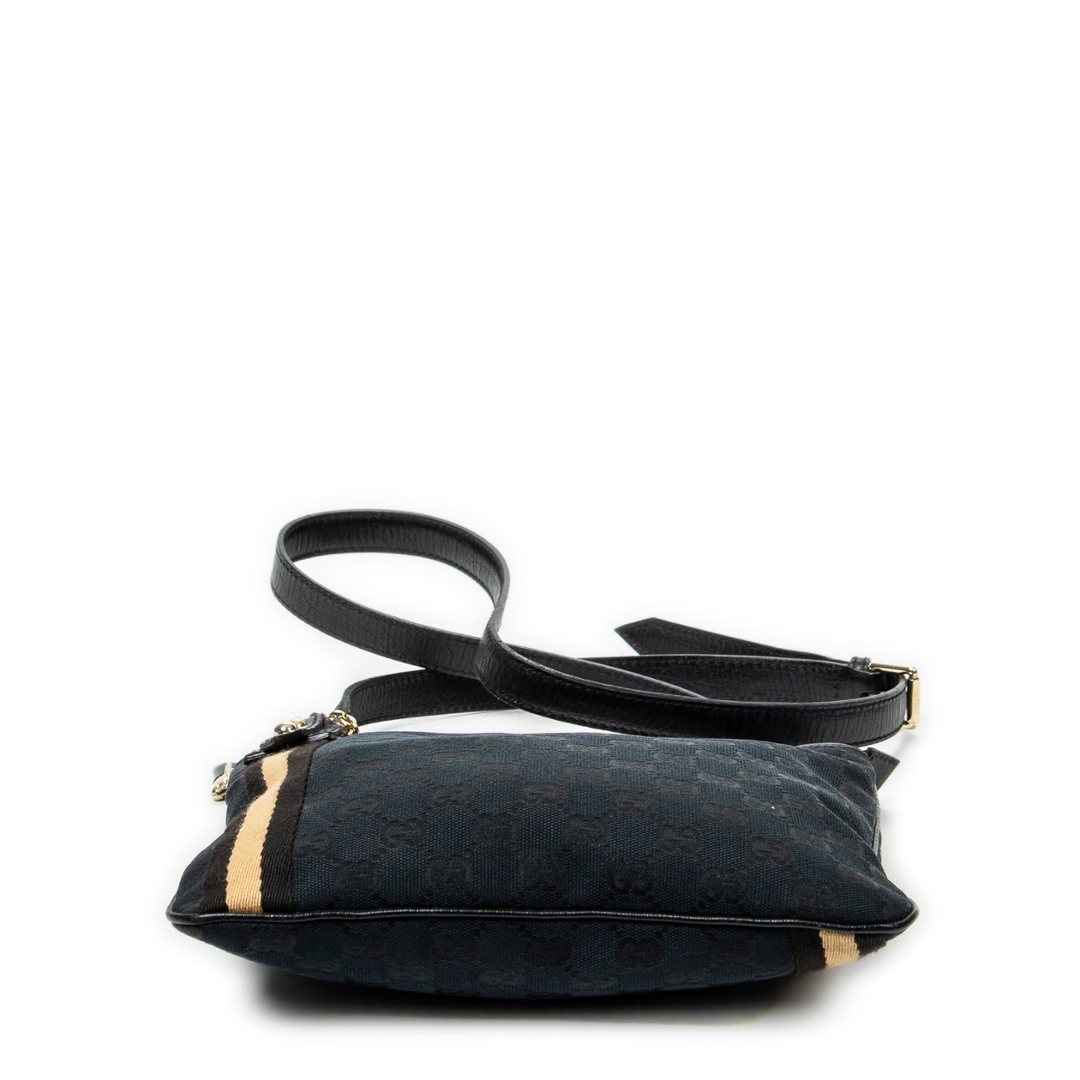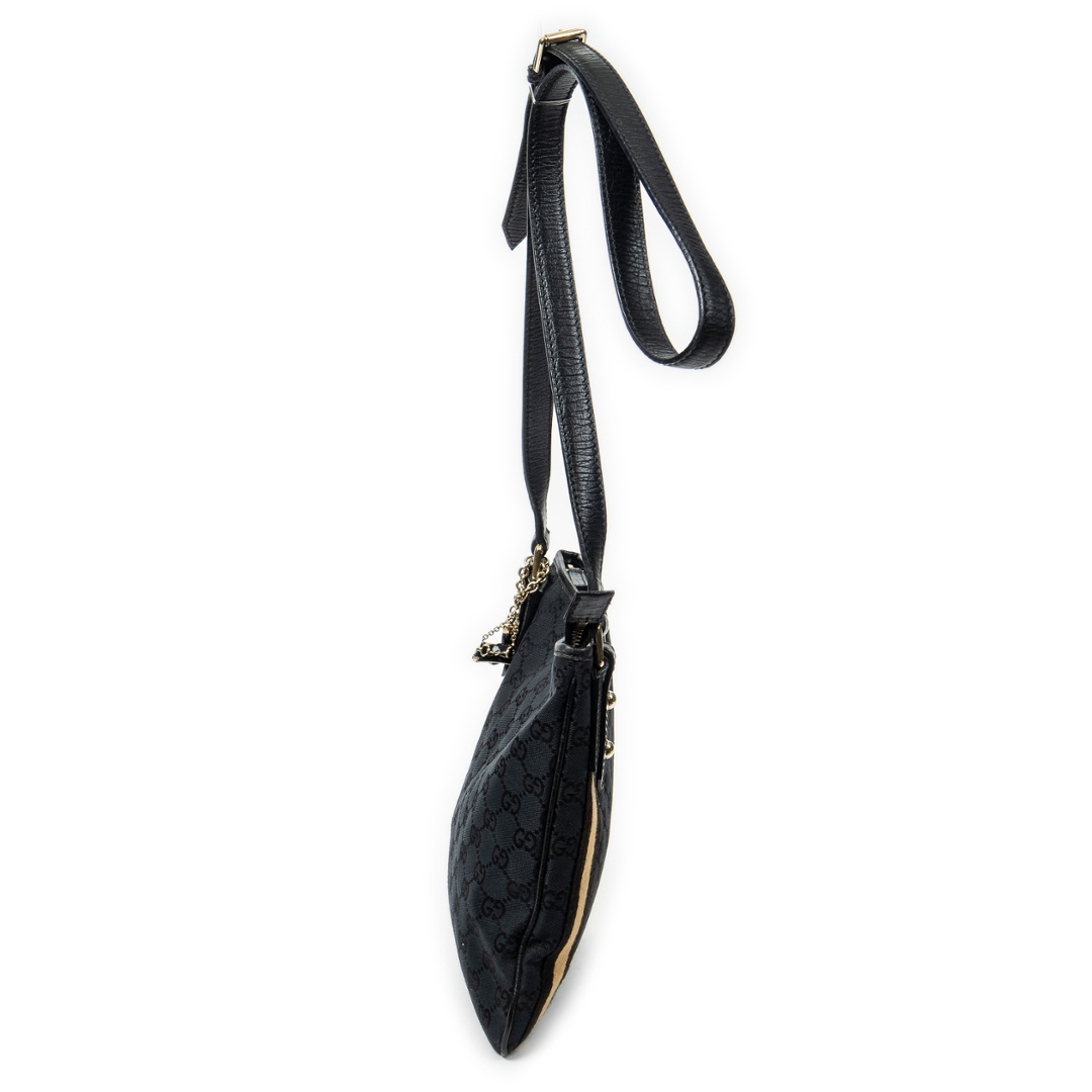 A vintage Gucci black canvas Web Jolicoeur Crossbody bag with a certificate of authenticity, Approximately 24cm height, 26cm width.