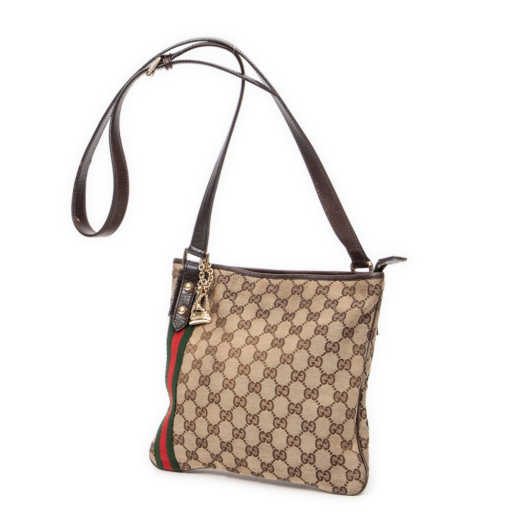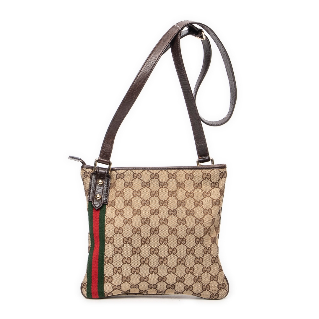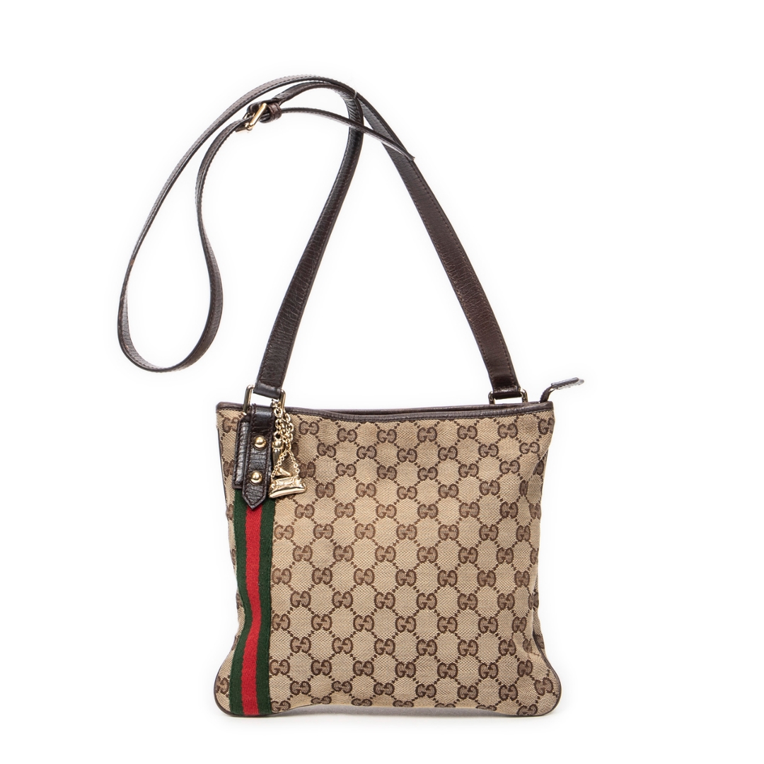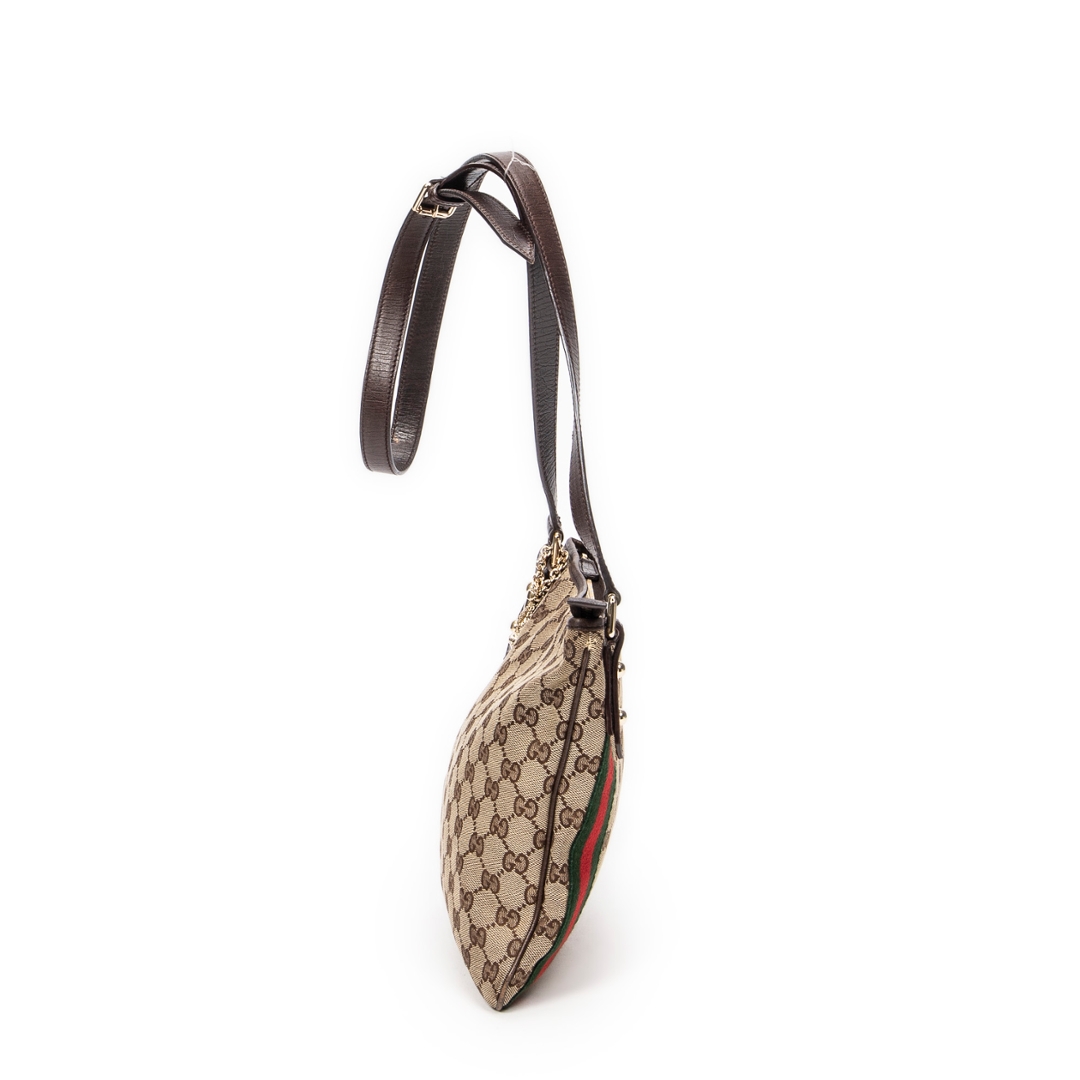 A vintage Gucci brown/beige canvas Web Jolicoeur Crossbody bag with a certificate of authenticity. Approximately 24cm height, 26cm width.