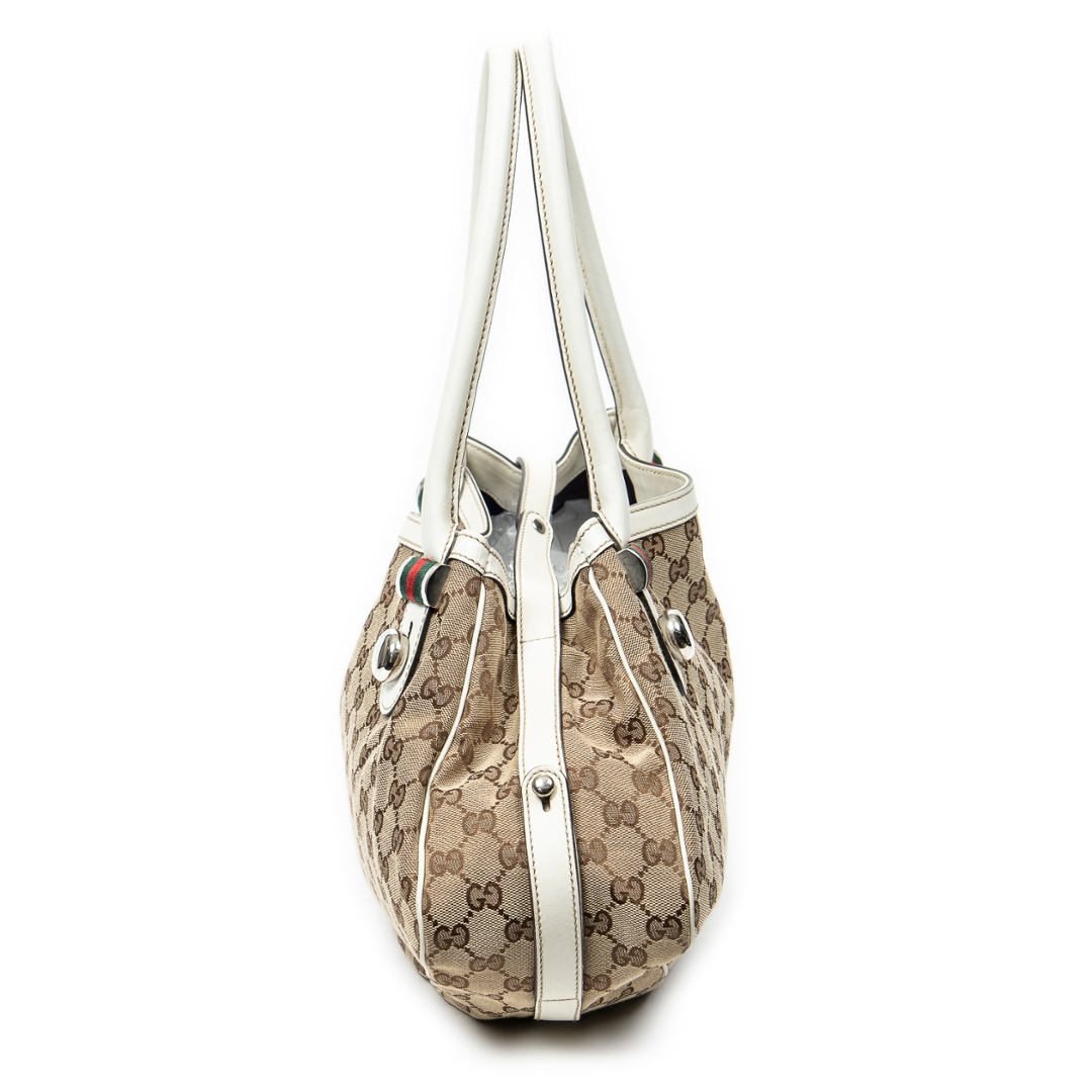 A vintage Gucci beige/ivory canvas Web Match Ball Tote bag with a certificate of authenticity, Approximately 24cm height, 41cm width.
