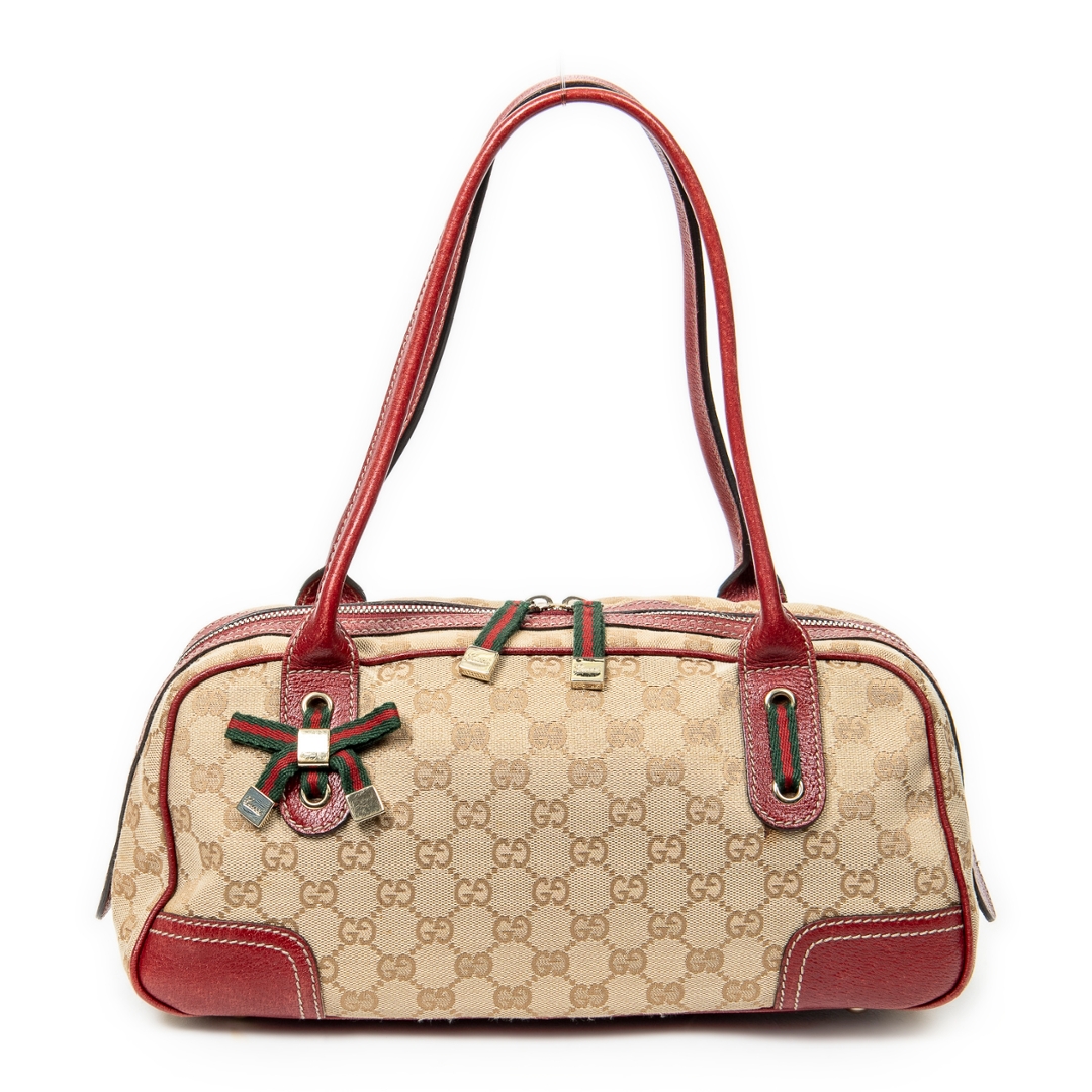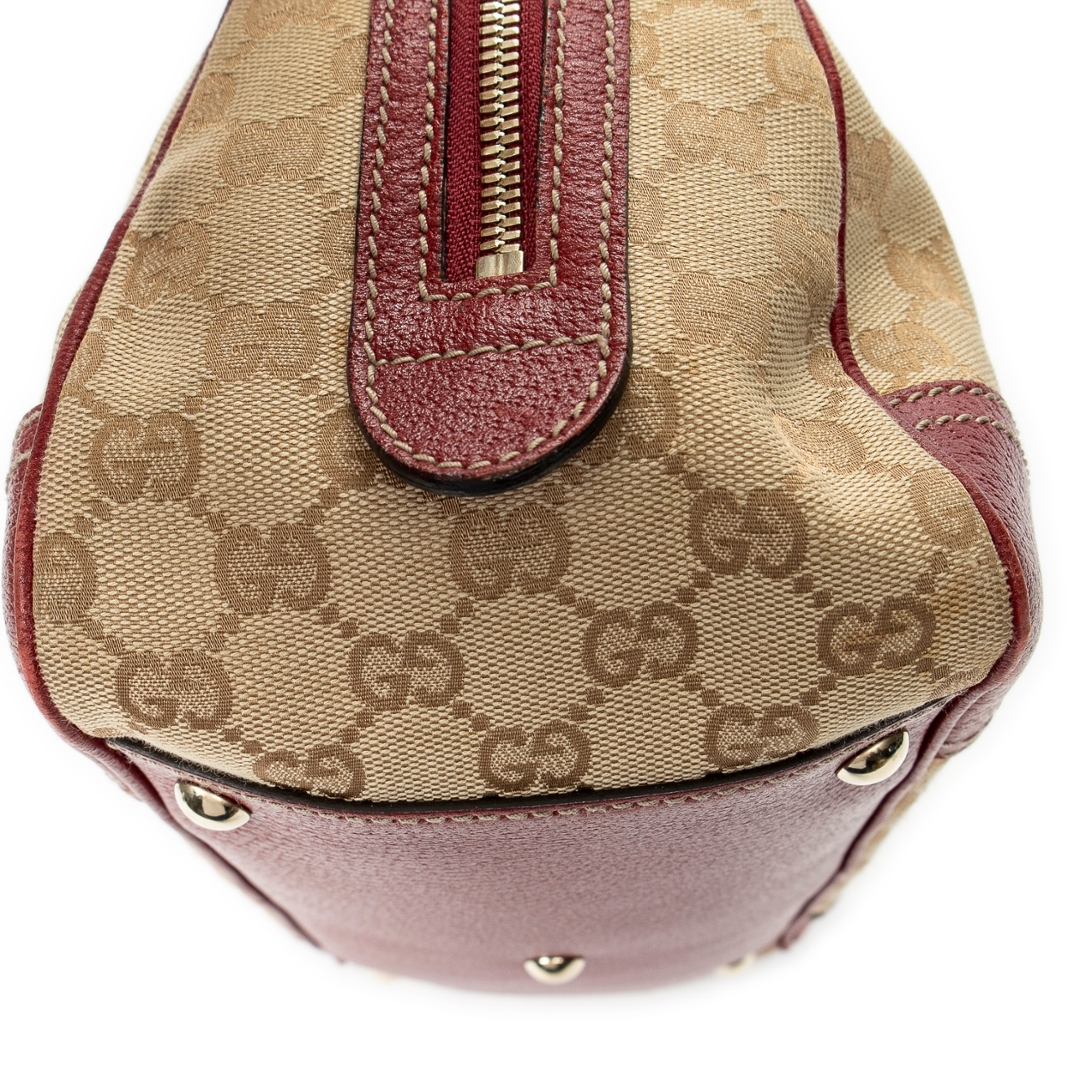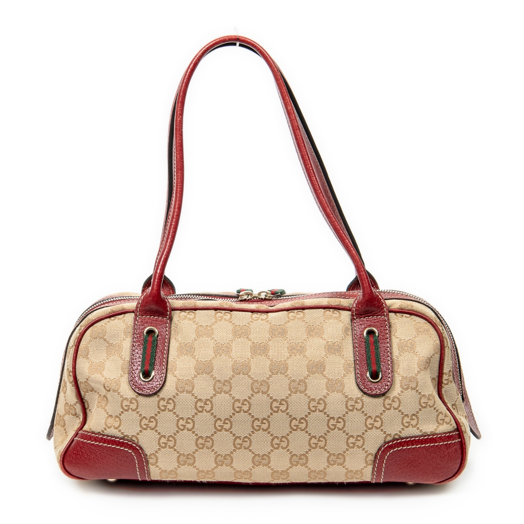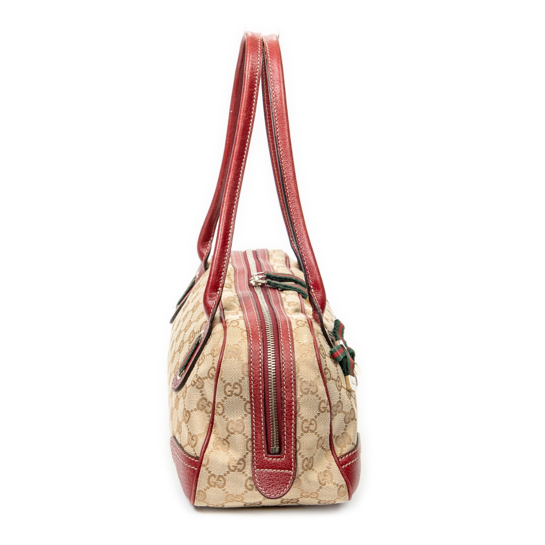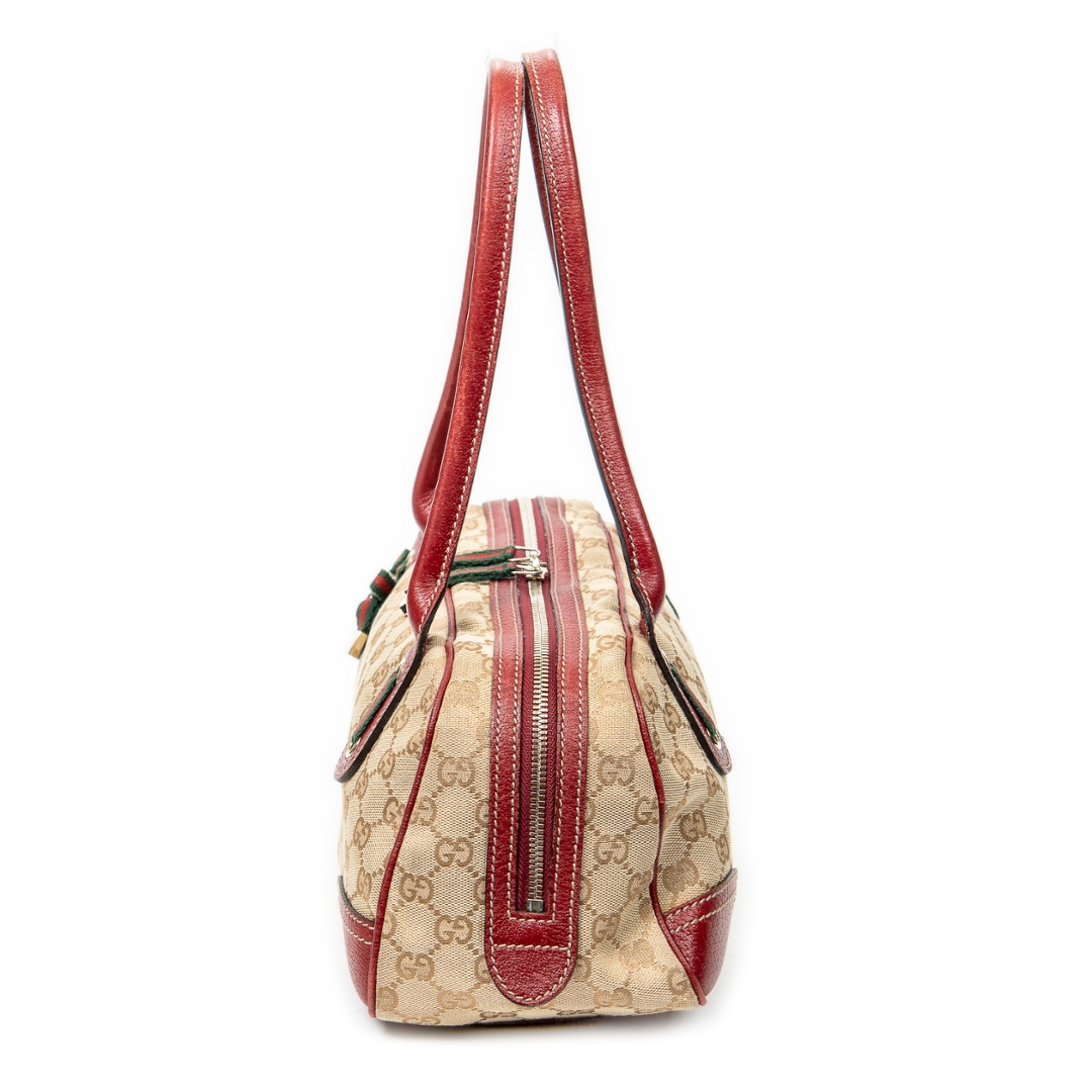 A vintage Gucci beige/red canvas Web Princy Boston bag with a certificate of authenticity, Approximately 16cm height, 33cm width.
