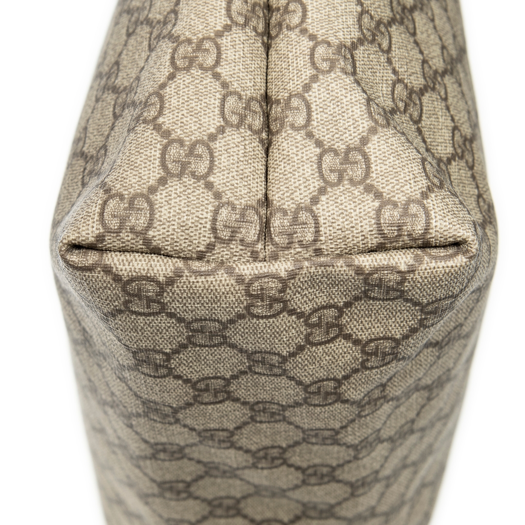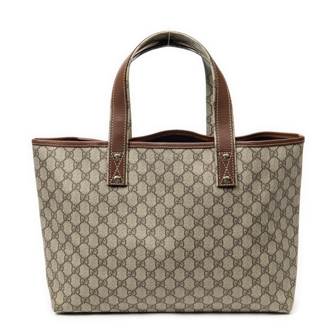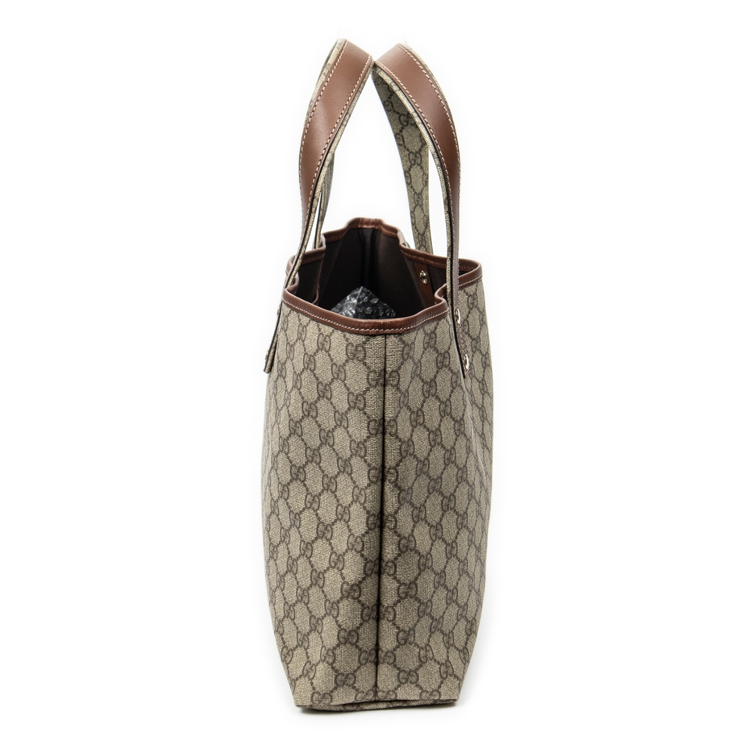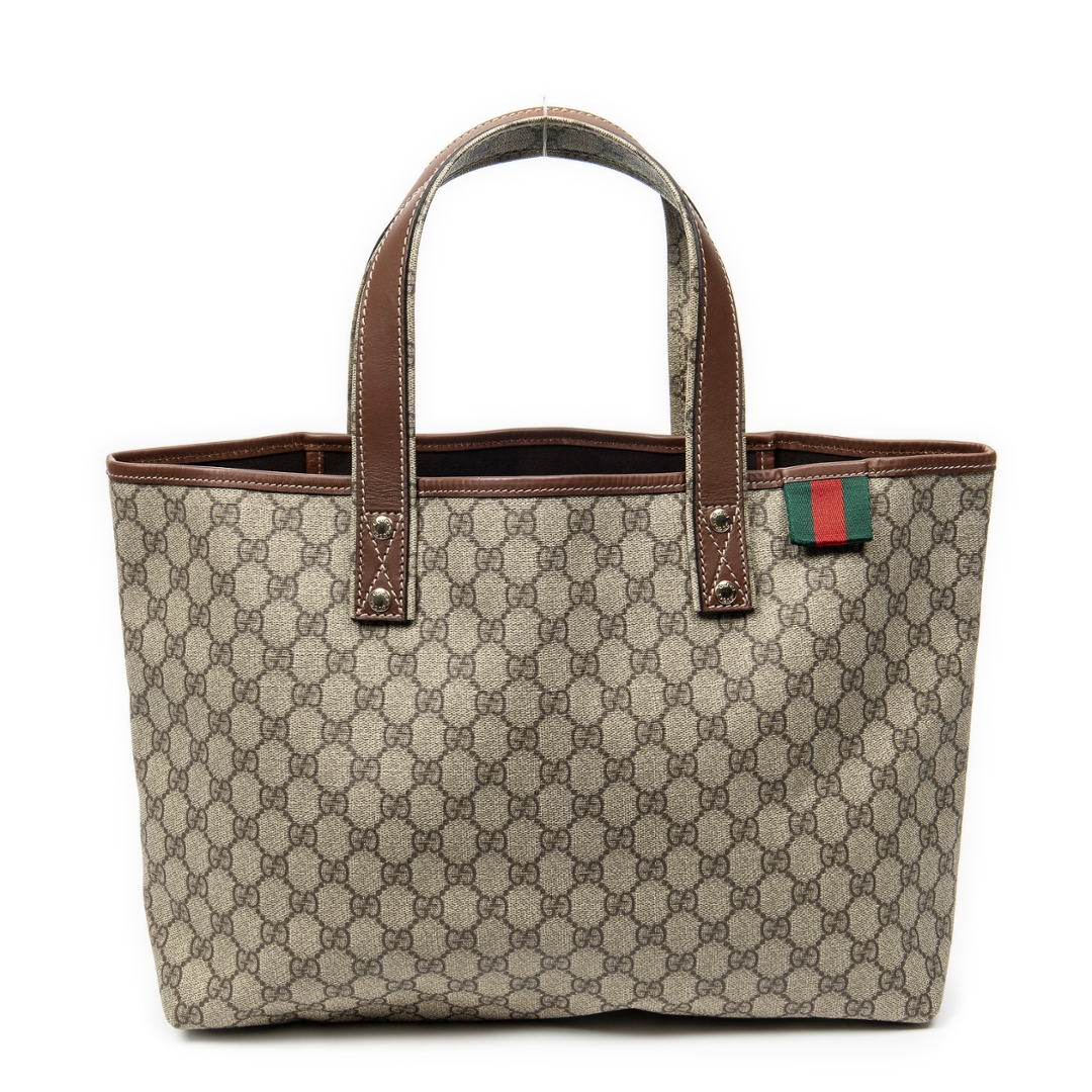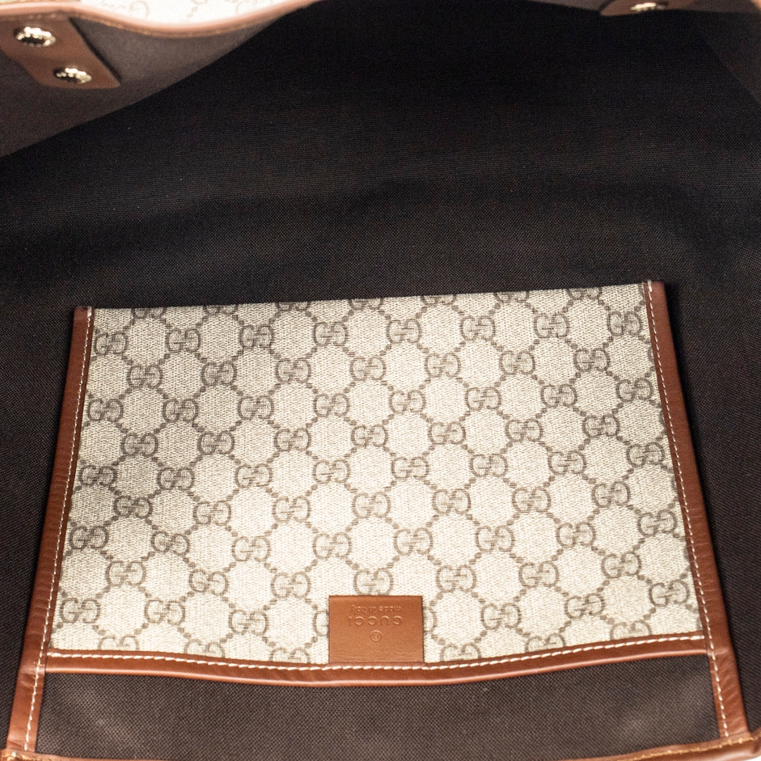 A vintage Gucci beige/brown coated canvas Web Shopping Tote bag with a certificate of authenticity, Approximately 28cm height, 27cm width.