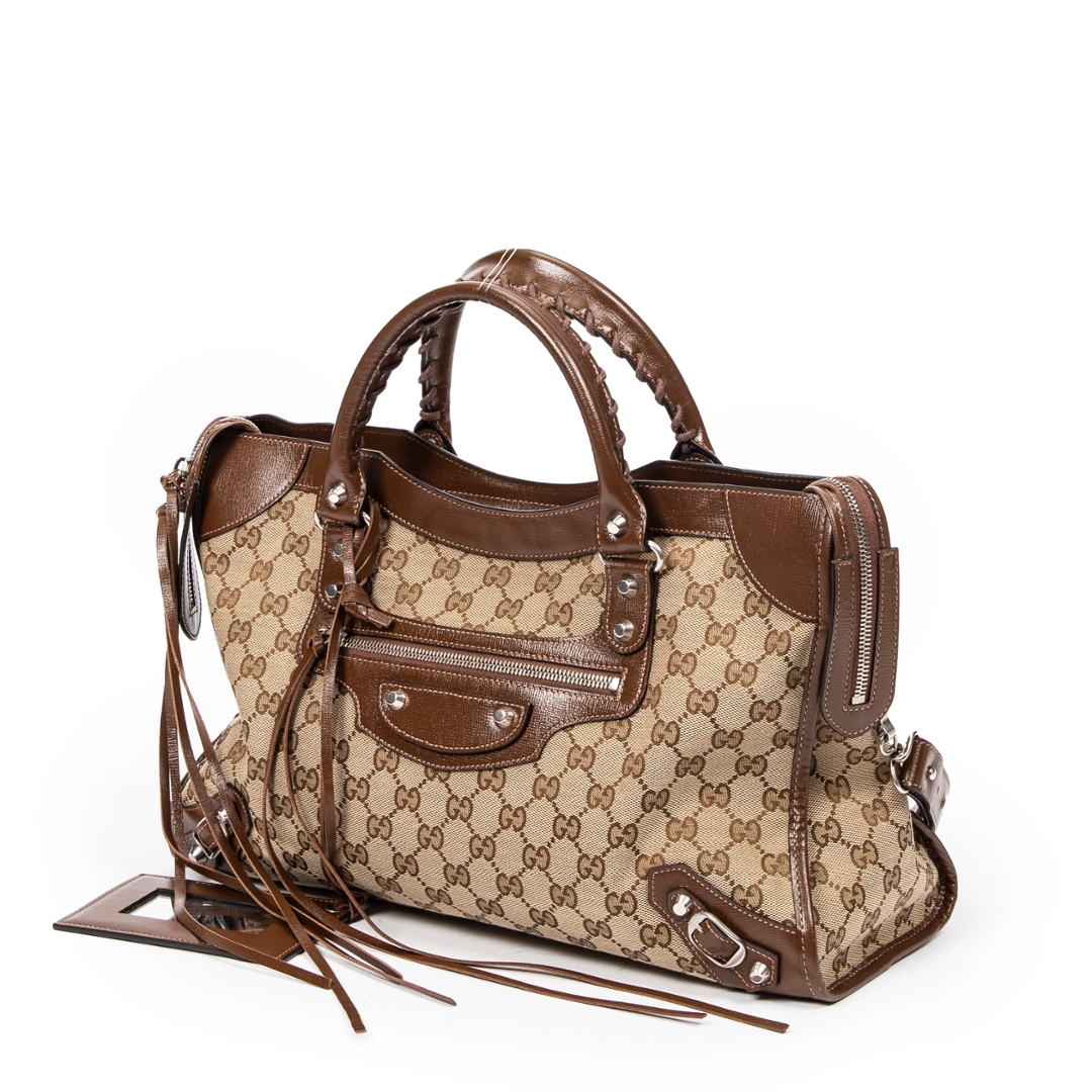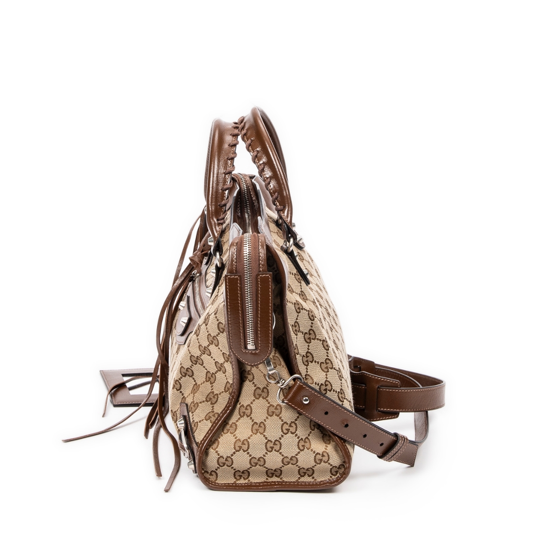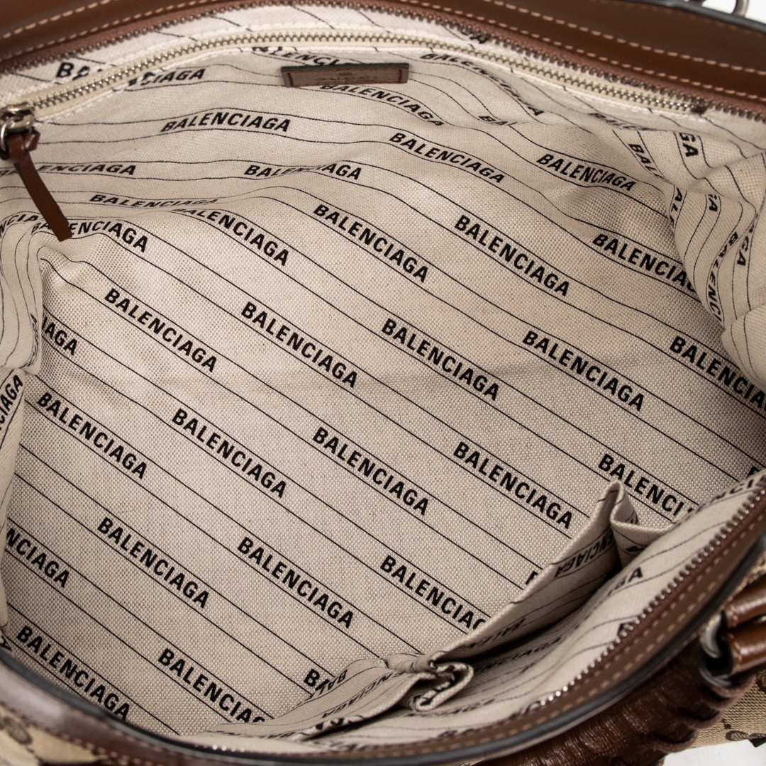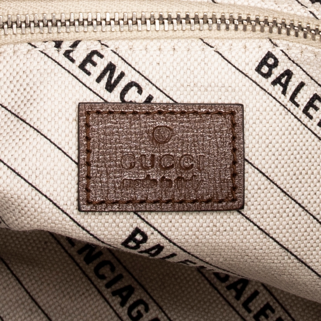 A vintage Gucci x Balenciaga The Hacker Project Medium Neo Classic Monogrammed Canvas bag with a certificate of authenticity, Approximately 25cm height, 36cm width.