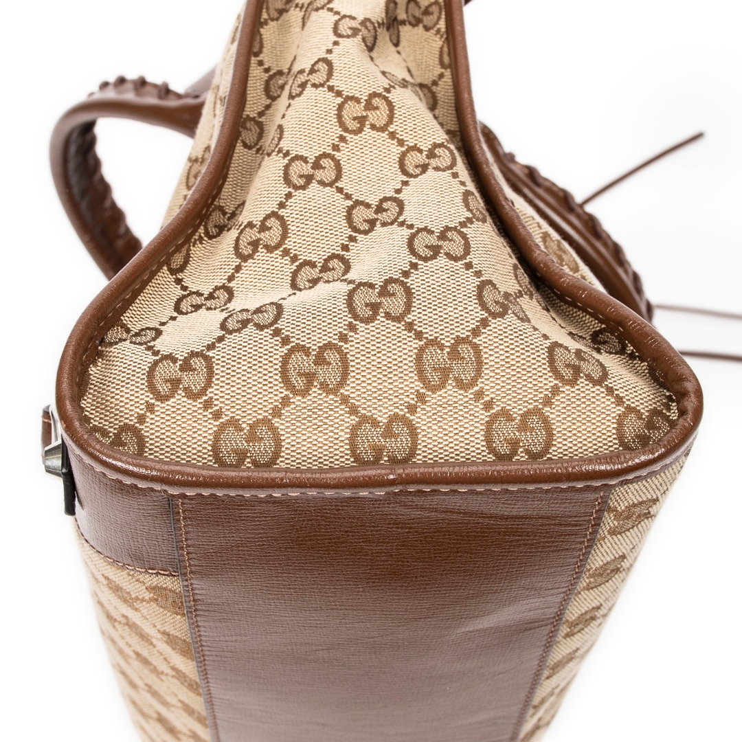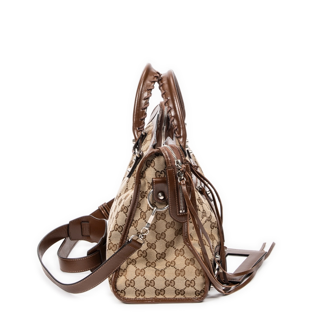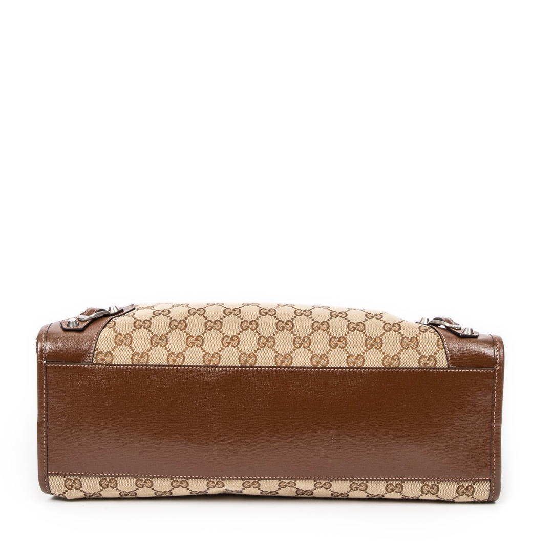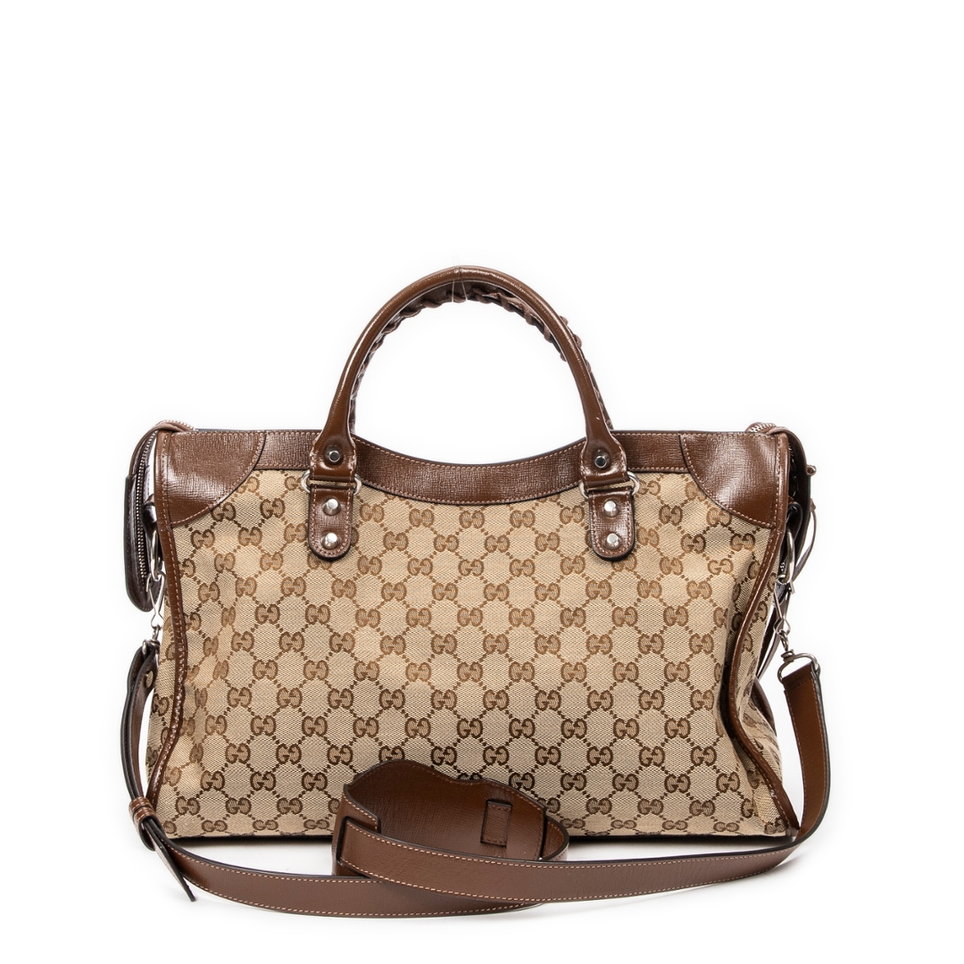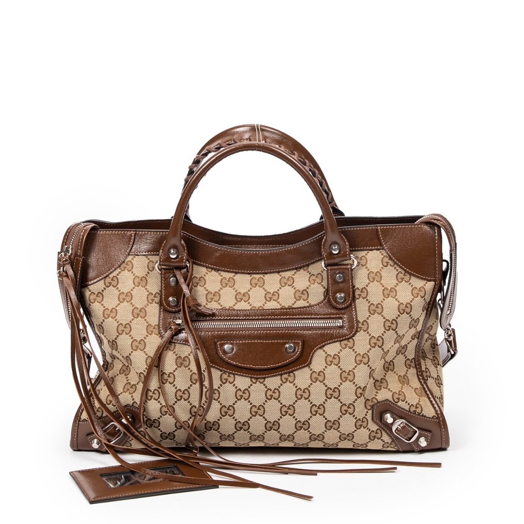 A vintage Gucci x Balenciaga The Hacker Project Medium Neo Classic Monogrammed Canvas bag with a certificate of authenticity, Approximately 25cm height, 36cm width.