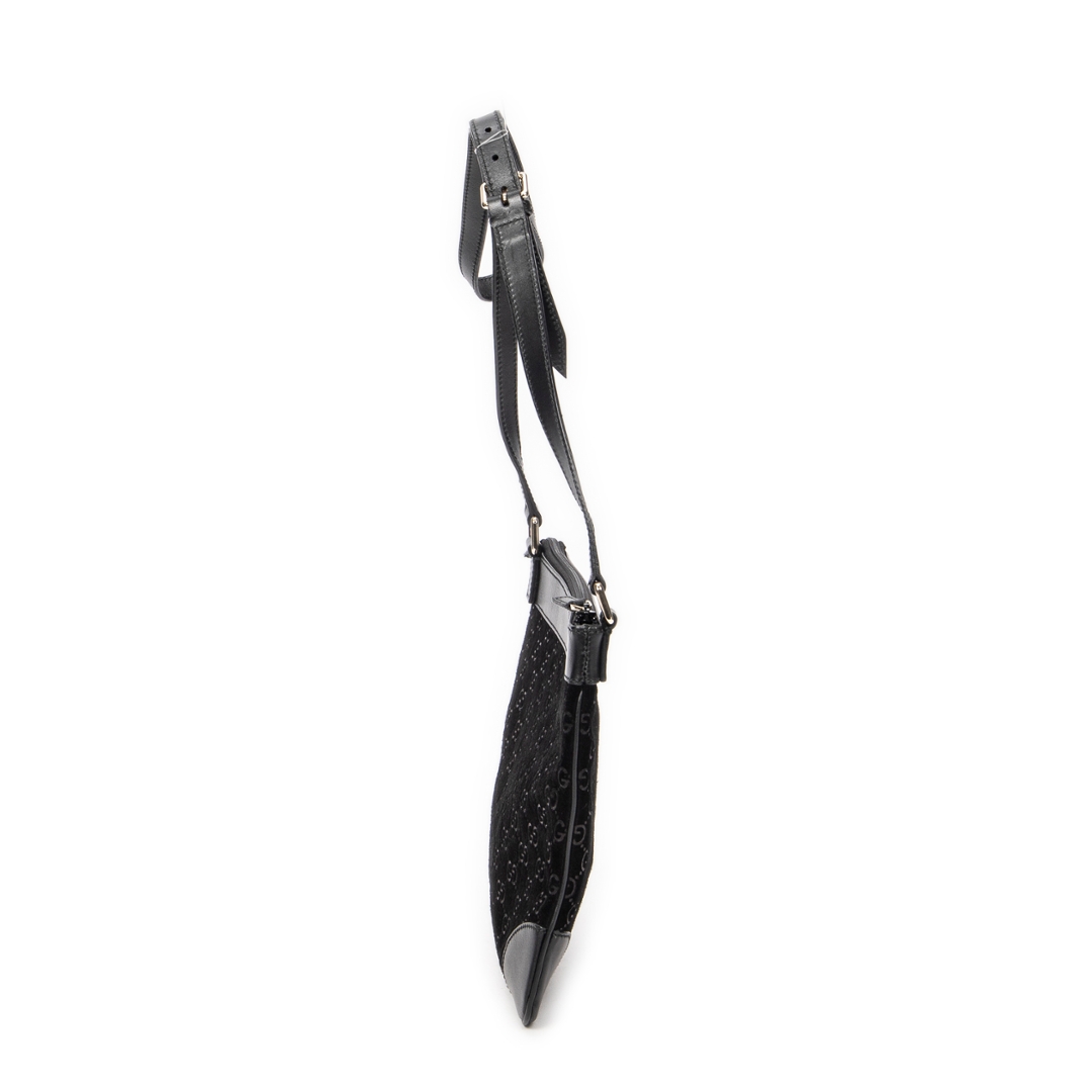 A vintage Gucci black canvas Zip Flat Crossbody bag with a certificate of authenticity, Approximately 24cm height, 26cm width.