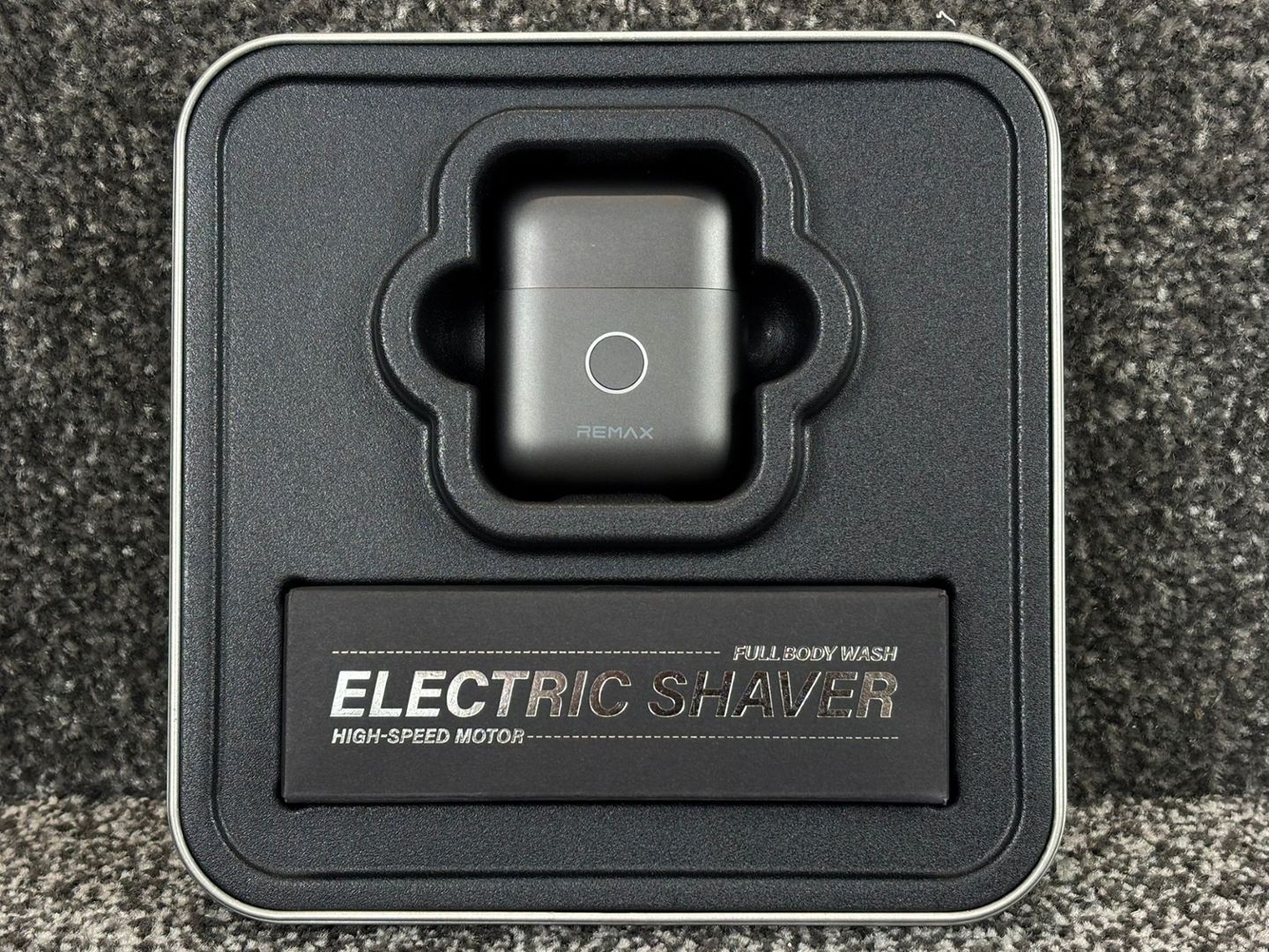 A brand new gunmetal grey all-metal mini electric shaver designed for convenience, performance, and modern portability. Finished in a sleek metallic gunmetal grey tone, this compact device offers a premium feel while remaining lightweight and easy to carry, making it ideal for travel, daily grooming, or on-the-go touch-ups. Its durable all-metal construction enhances both longevity and style.
