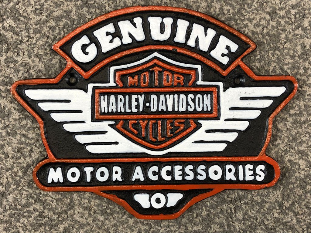 - > Harley Davidson Motor Accessories Cast Iron Wall Sign