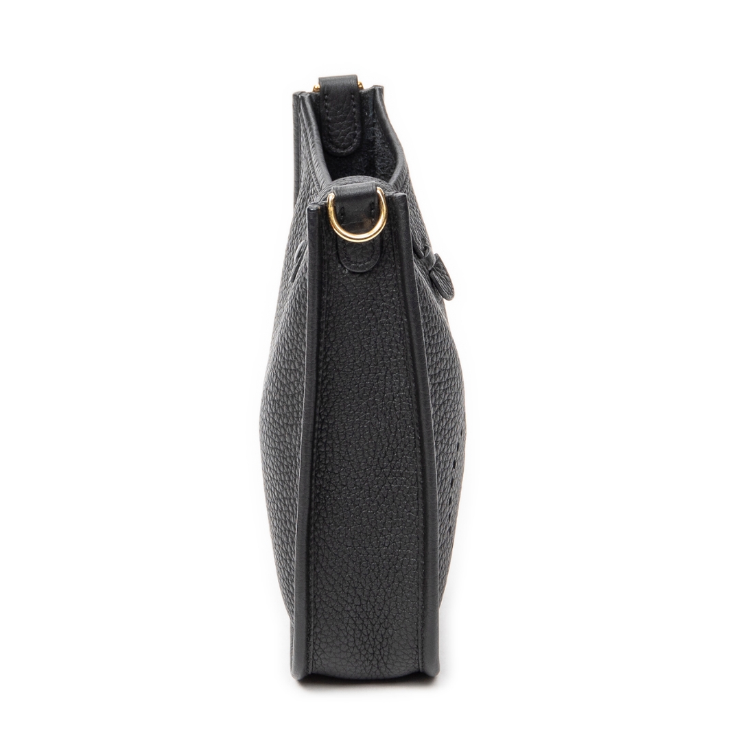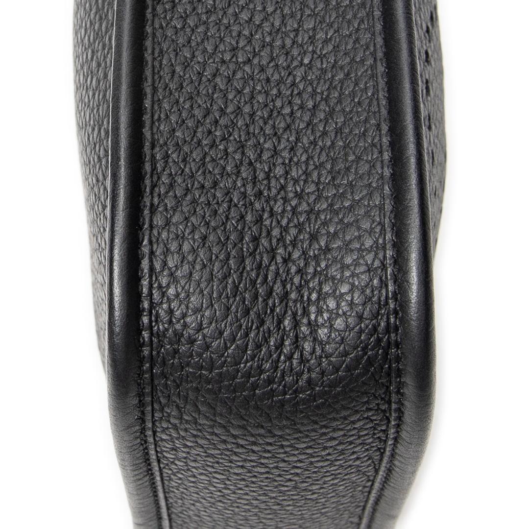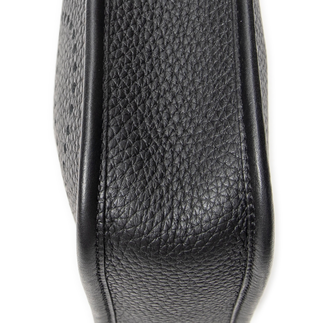 A vintage Hermès black calf leather Evelyne bag, a timeless and effortlessly refined design that reflects the house’s commitment to understated luxury. Crafted from finely grained calf leather, the softly structured silhouette is complemented by the signature perforated “H” logo to the front, delivering a subtle yet instantly recognisable Hermès detail.
