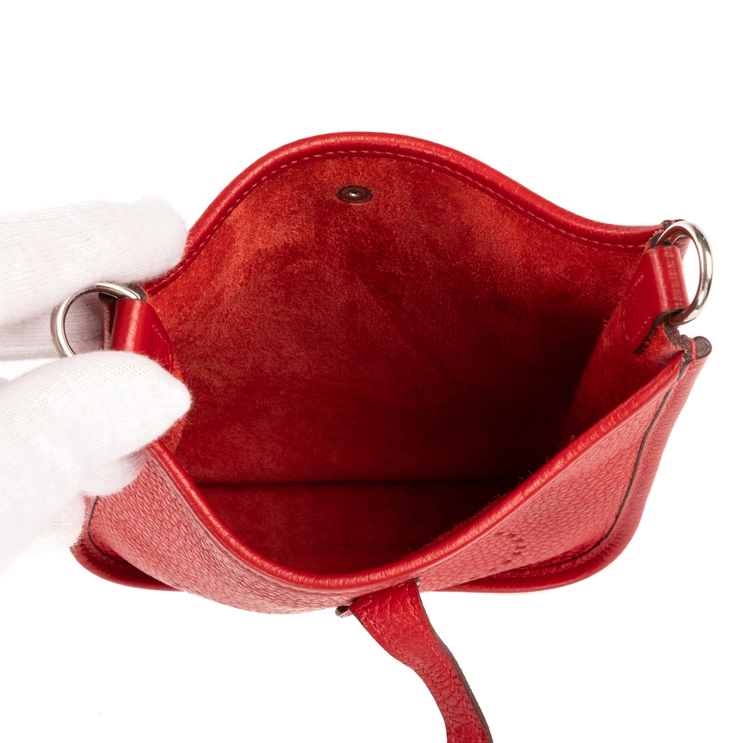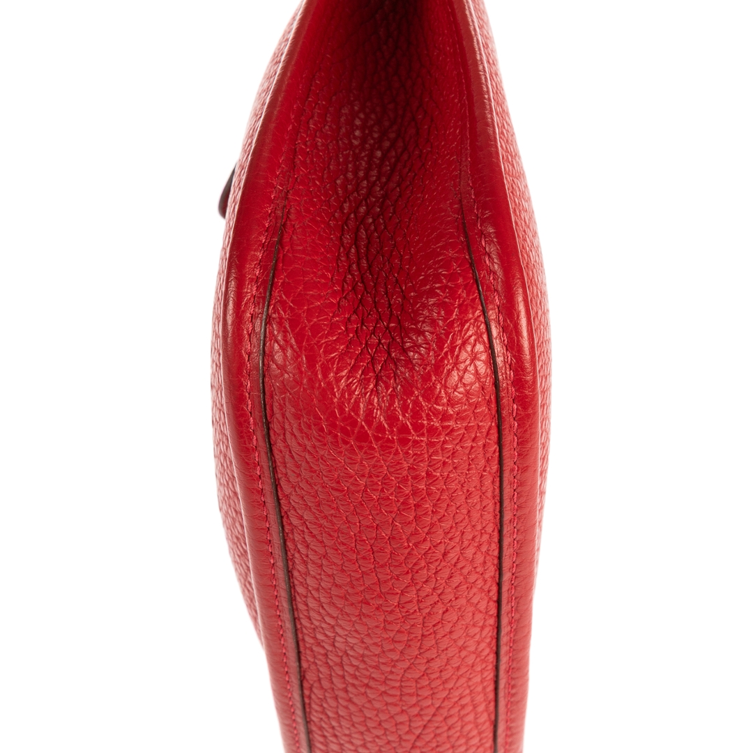 A vintage Hermes red calf leather Evelyne bag with a certificate of authenticity, Approx 18cm height, 17m width.