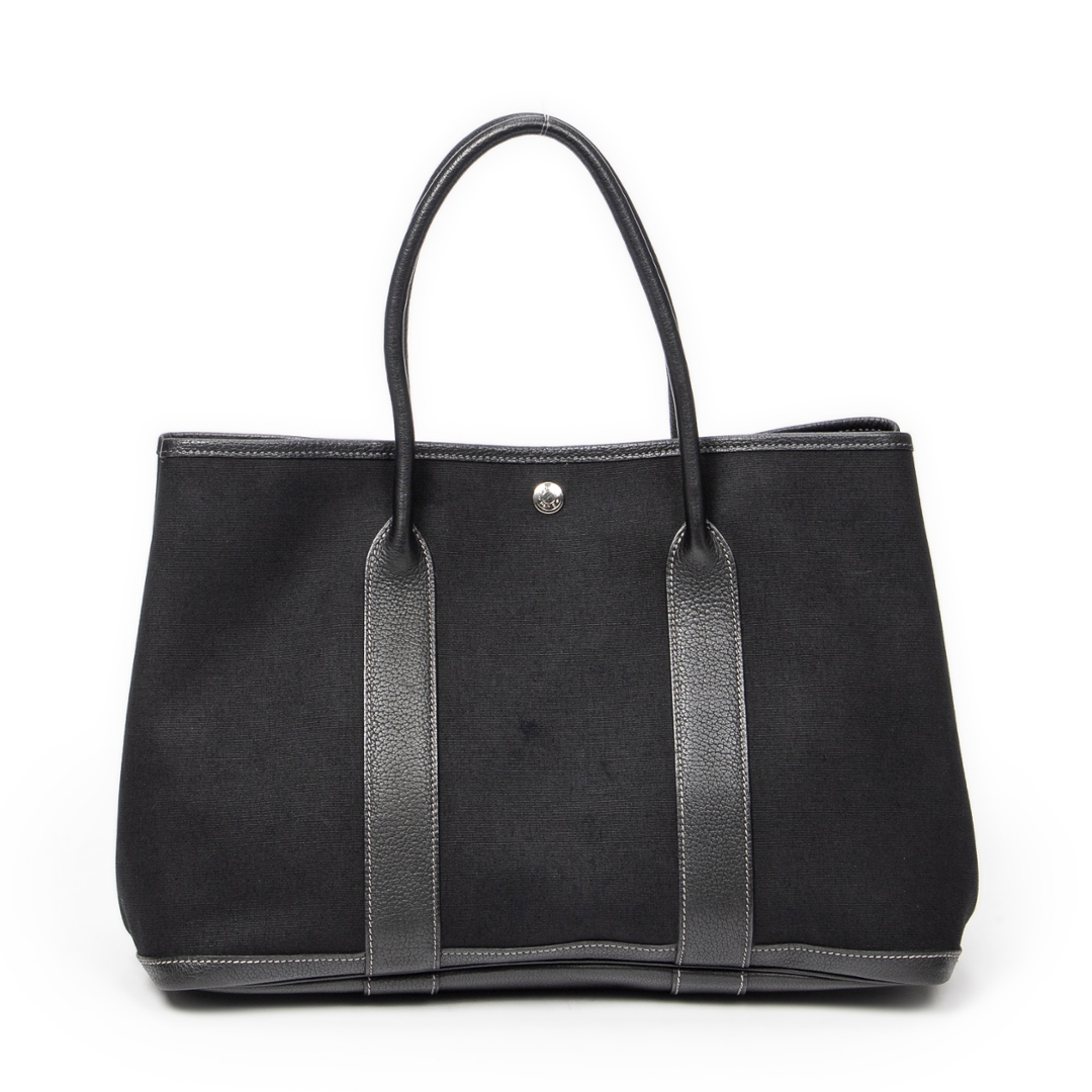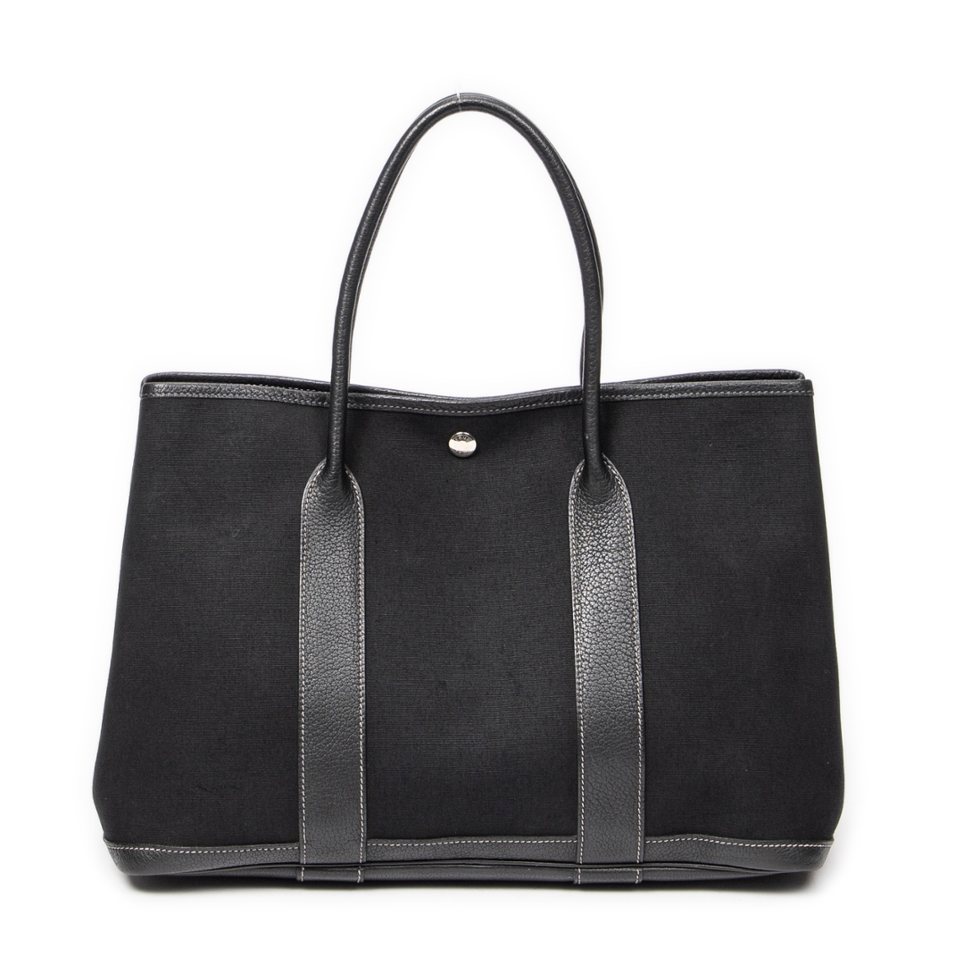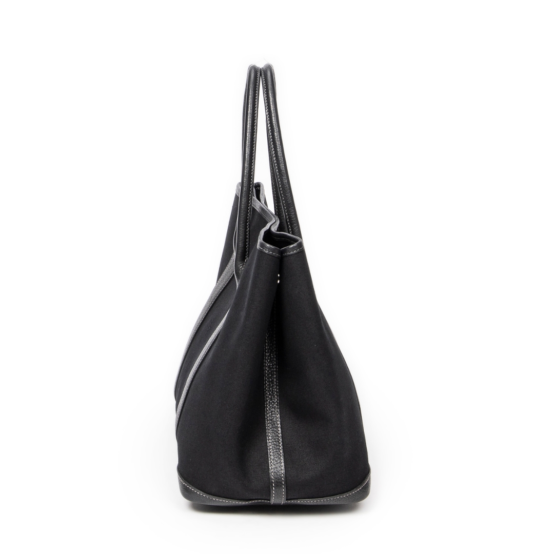 A vintage Hermes black canvas Garden Party bag with a certificate of authenticity, Approx 25cm height, 36cm width.