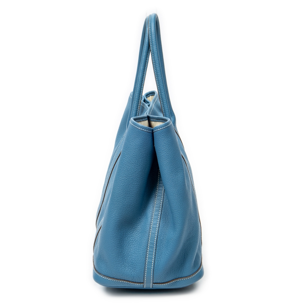 A vintage Hermes blue jean calf leather Garden Party bag with a certificate of authenticity, Approx 25cm height, 36cm width.