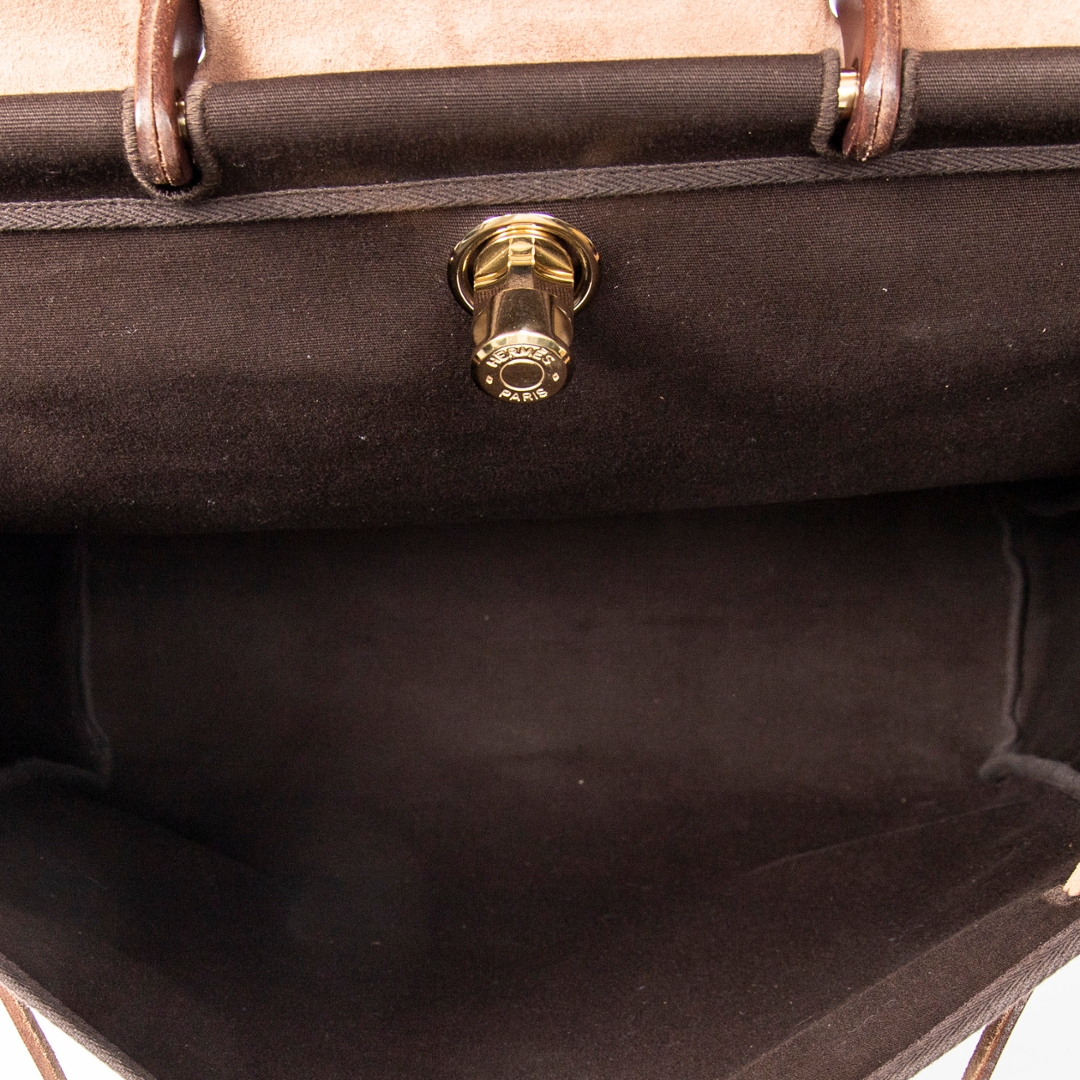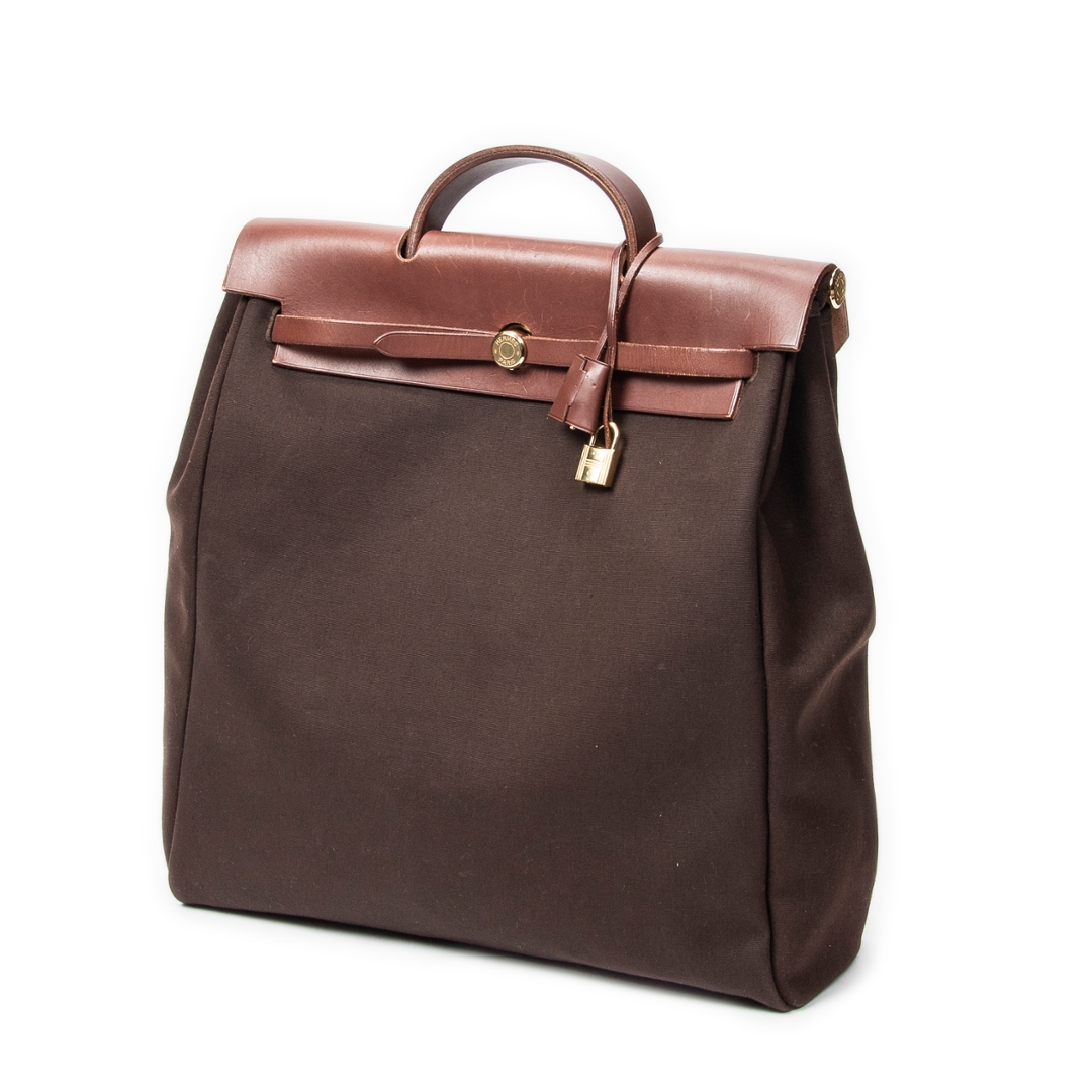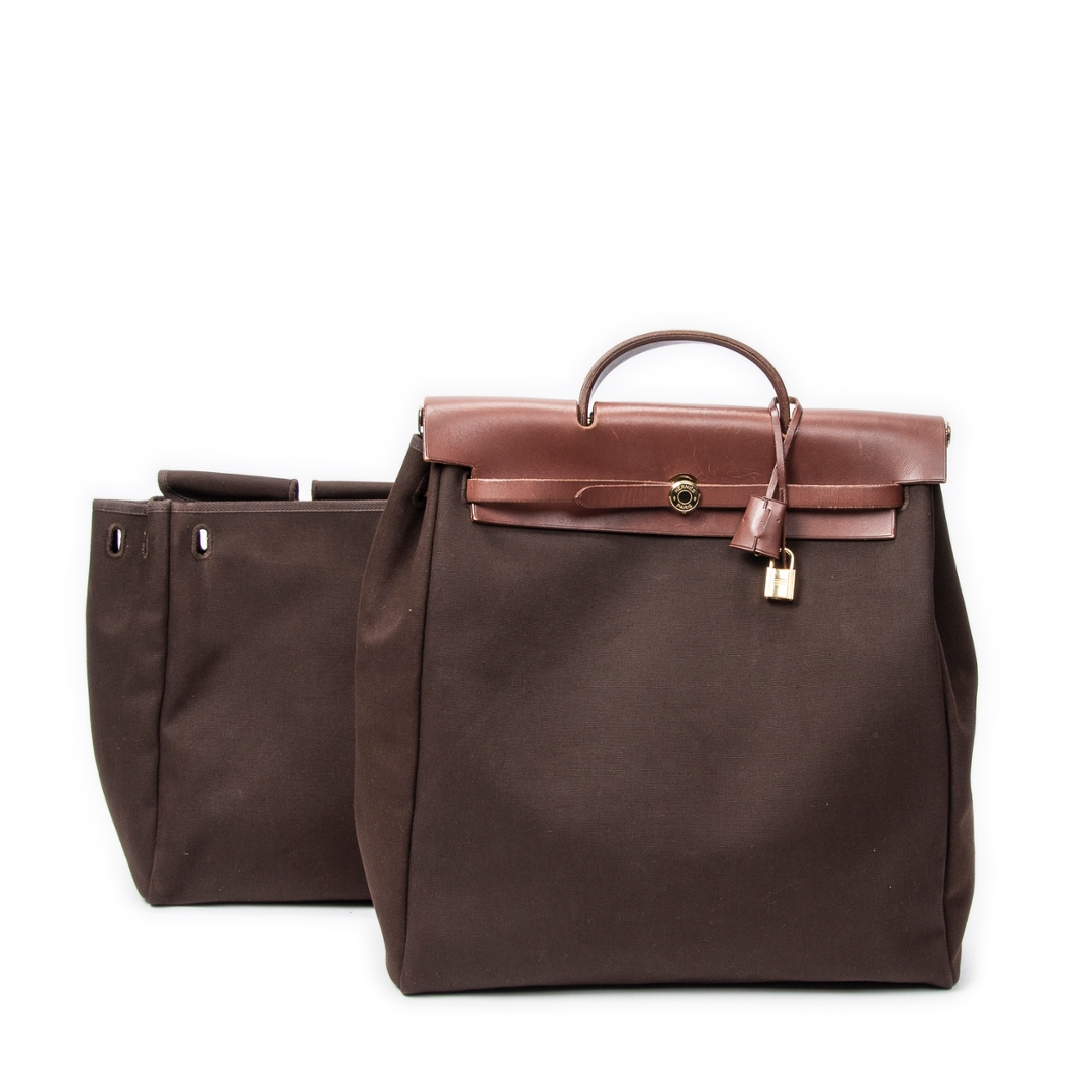 A vintage Hermes brown canvas Herbag 2in1 bag with a certificate of authenticity, Approx 33cm height, 38cm width.